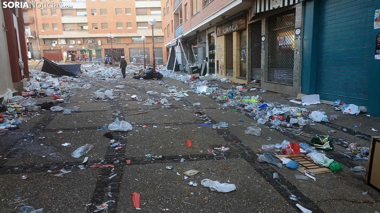 Zonas del centro y alrededores de la plaza de toros siguen siendo, durante la madrugada, cada año por esta fecha, un mar de plásticos y de desechos.