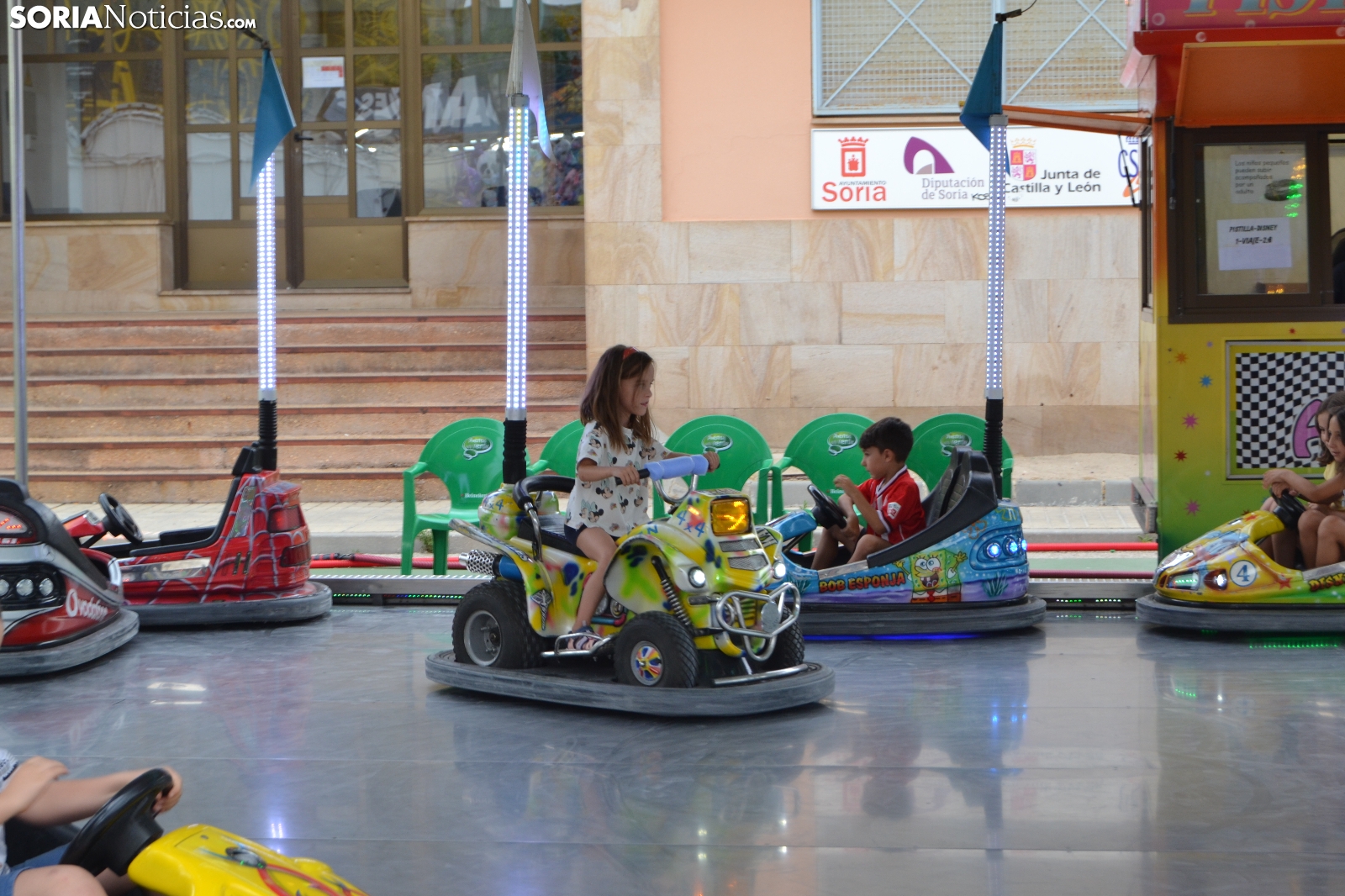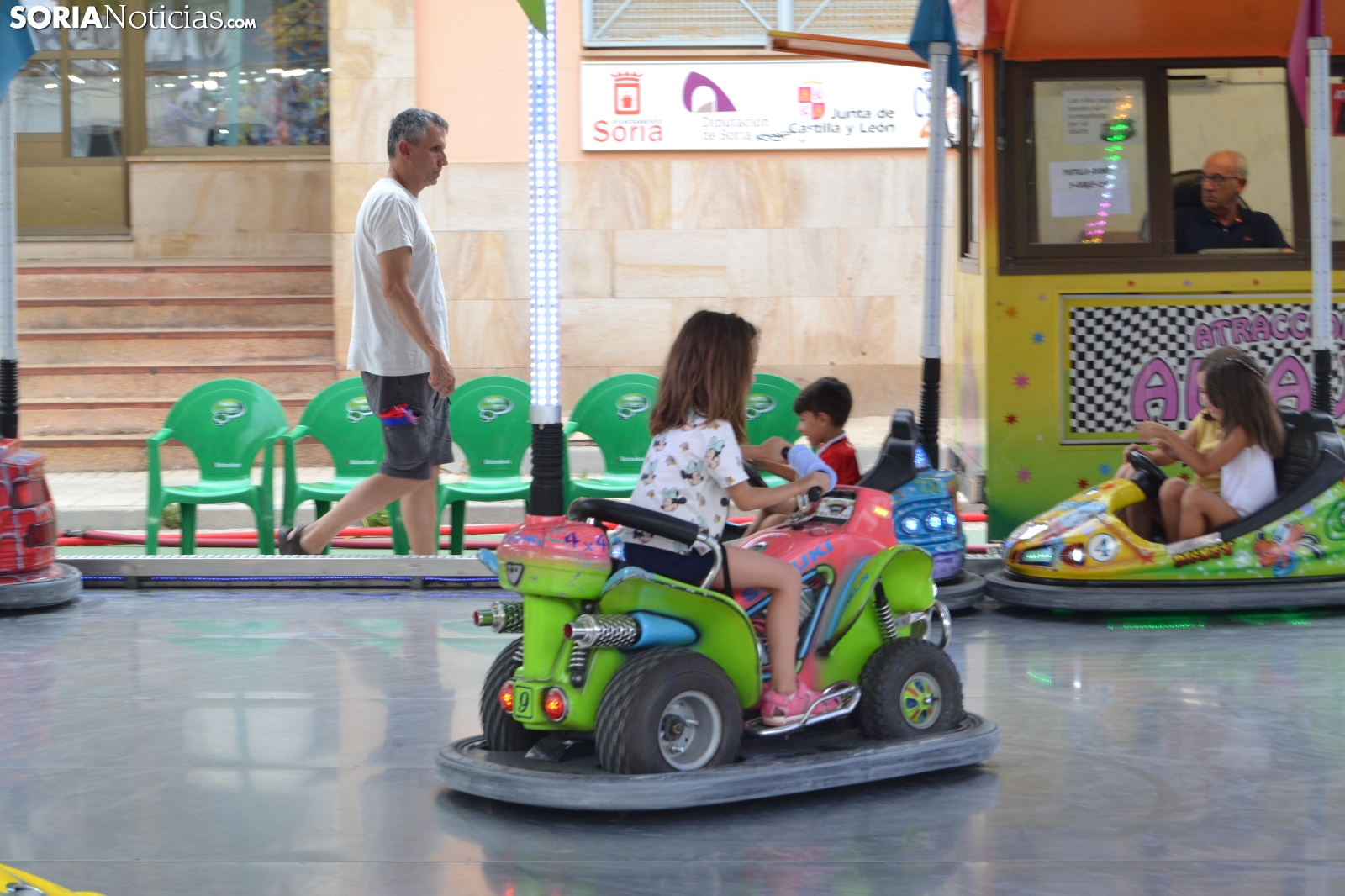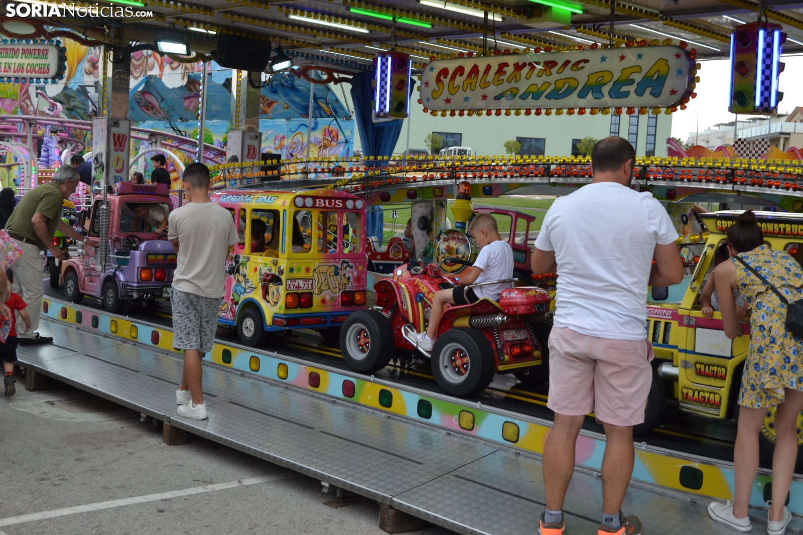 Aunque San Juan ha terminado, el ambiente festivo se mantiene en el recinto ferial, situado en Los Pajaritos. Centenares de niños han acudido esta tarde hasta las atracciones para disfrutar de su Día. Con un precio reducido, han podido montarse en los caballitos, las colchonetas, el barco pirata o los autos de choque, entre otras cosas. Además, han podido jugar en las tómbolas o degustar alguno de los puestos de cocina como el de algodón de azúcar.