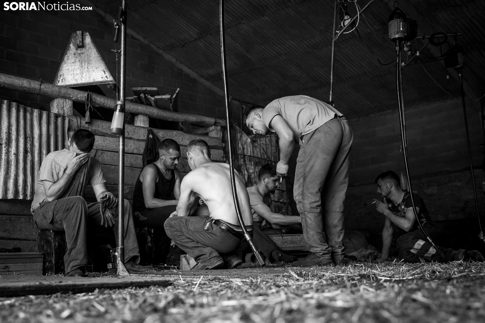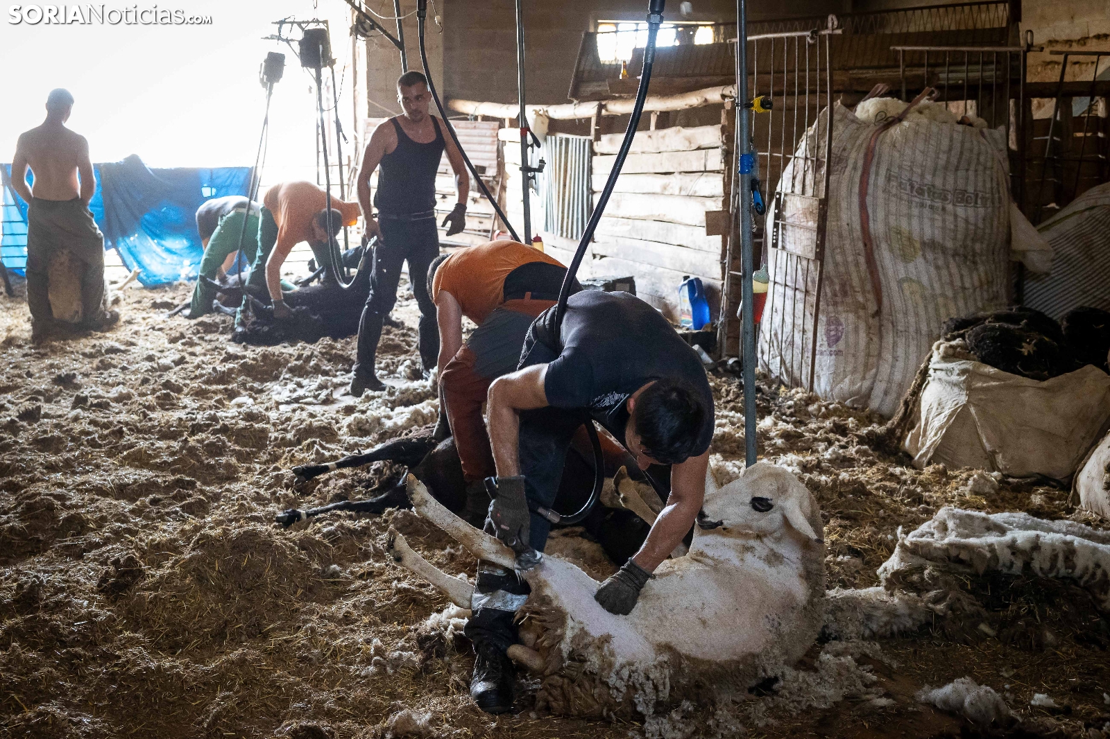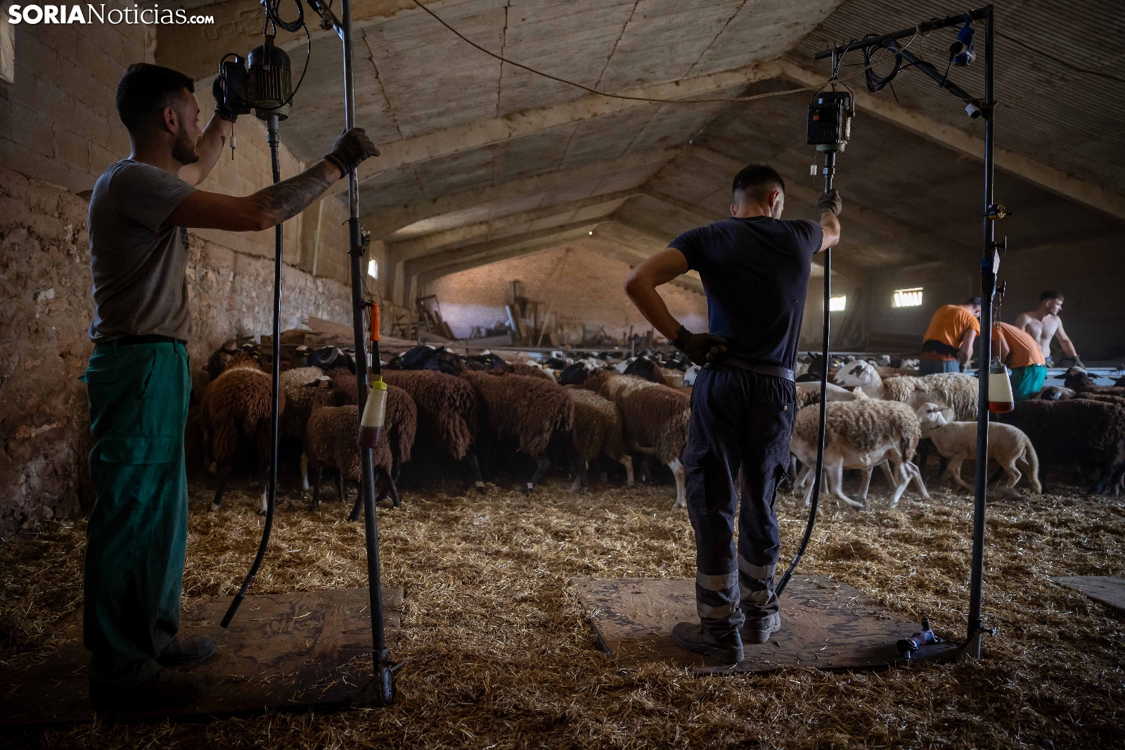 Con la llegada del calor, los campos de Soria tienen una de las citas más importantes y laboriosas del calendario ganadero: la campaña de esquileo. Un trabajo esencial que garantiza el bienestar de miles de ovejas antes de la llegada de las altas temperaturas y que resulta crucial para los ganaderos de la provincia. Para acometer esta tarea, cada año aterrizan en Soria cuadrillas de esquiladores profesionales, equipos de especialistas, muchos de ellos llegados desde otros países como Uruguay o Rumanía, que recorren la geografía soriana de rebaño en rebaño. Su pericia, a contrarreloj, convierte el zumbido de las máquinas en la banda sonora que anuncia el alivio para el ganado. Este relato lo podéis ver plasmado al detalle en las instantáneas tomadas por Viksar Fotografía.