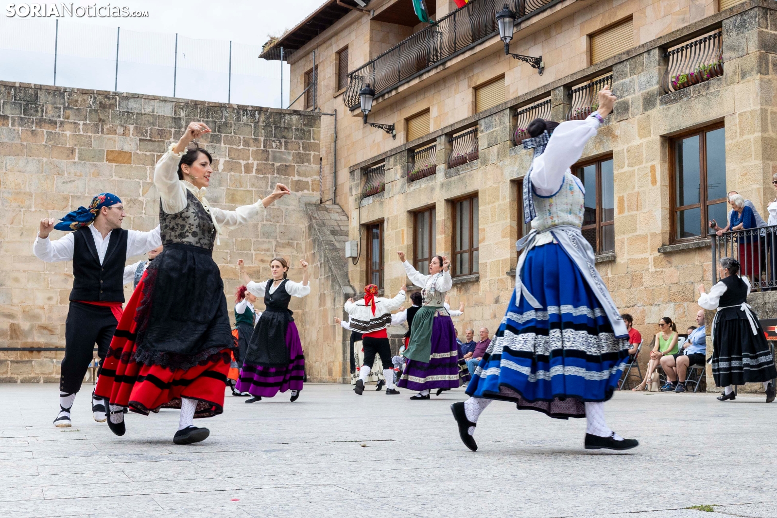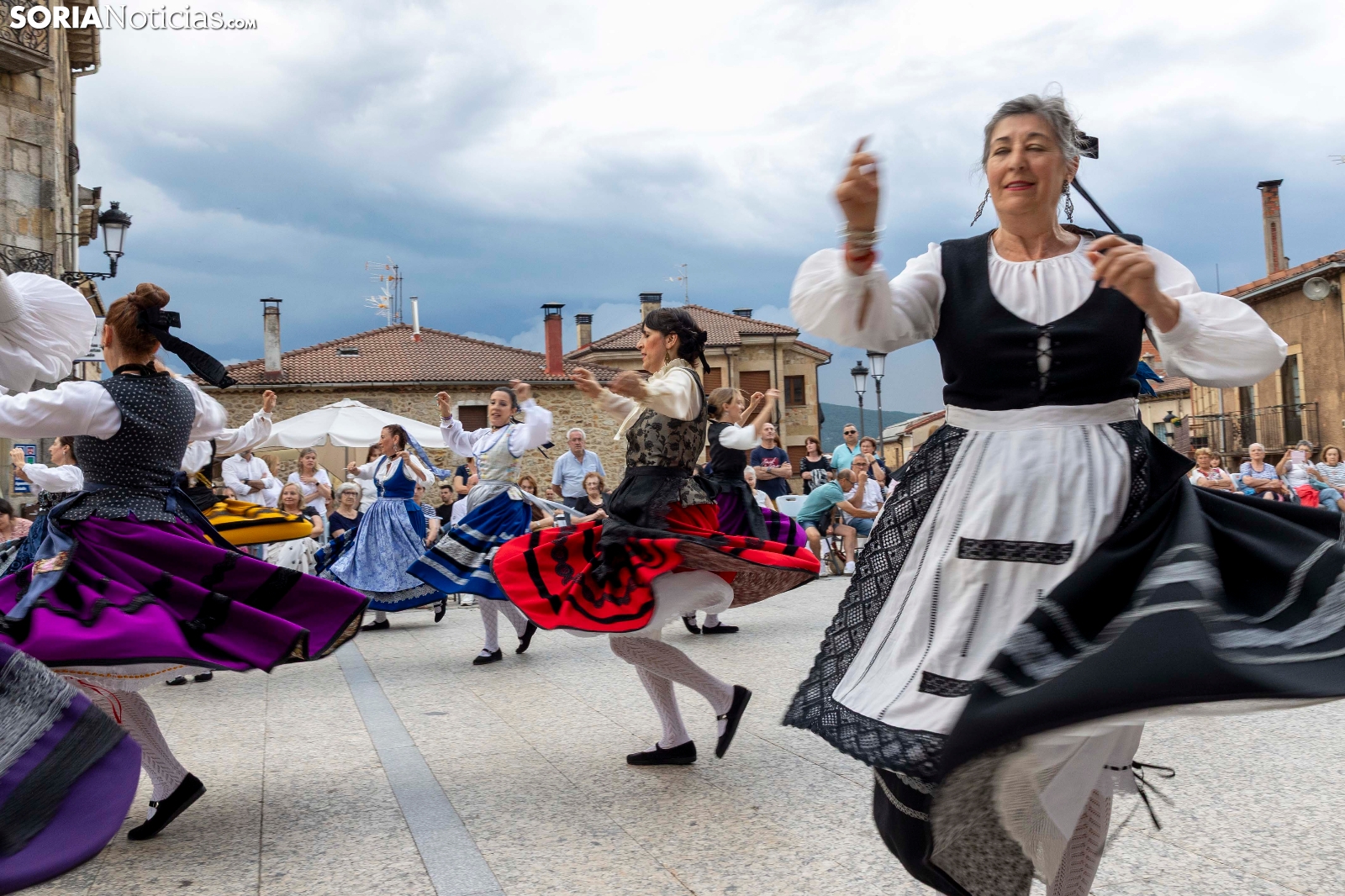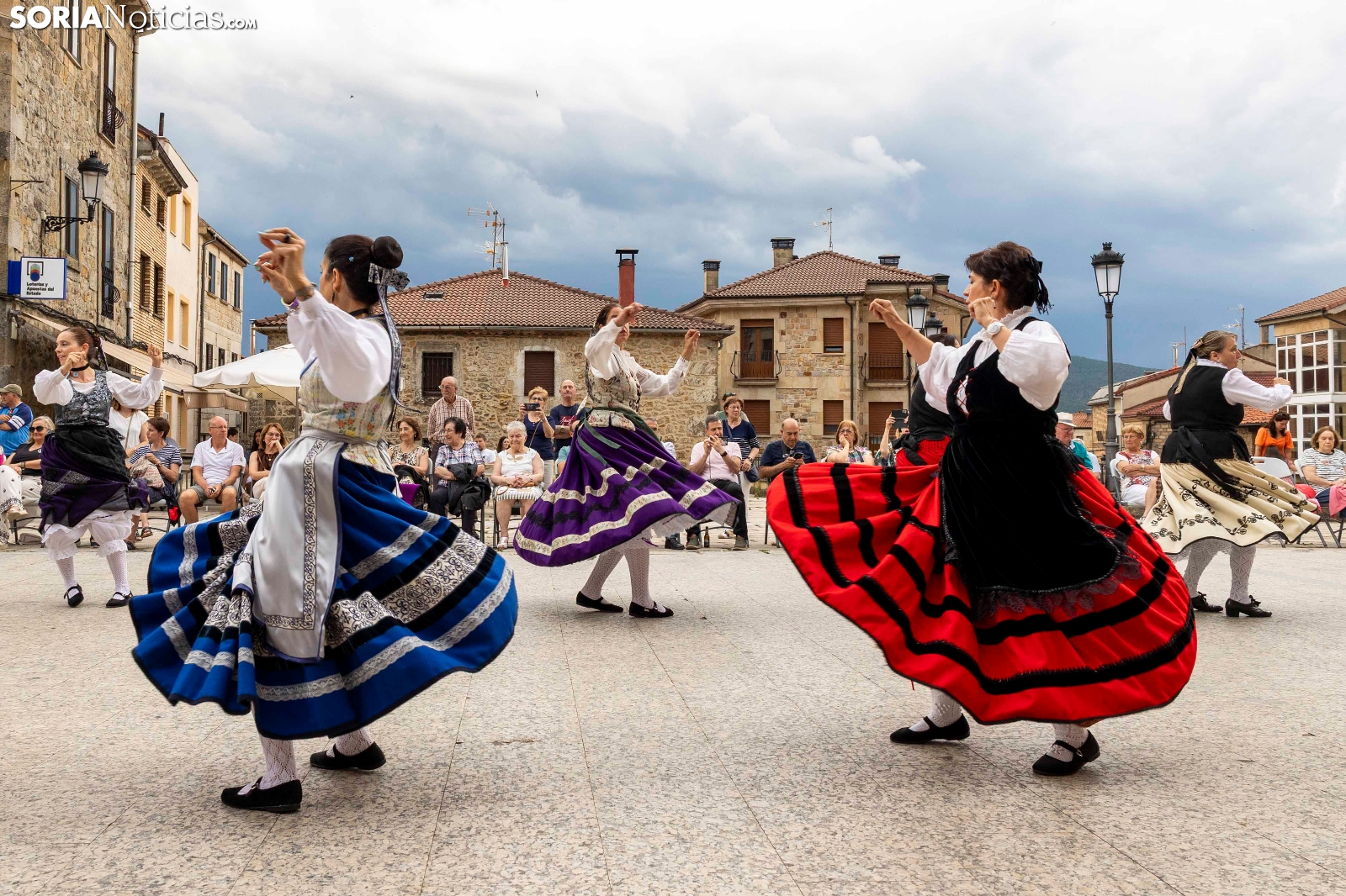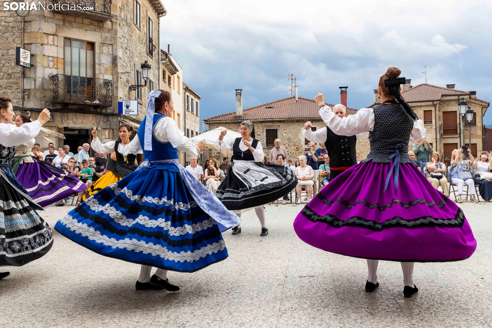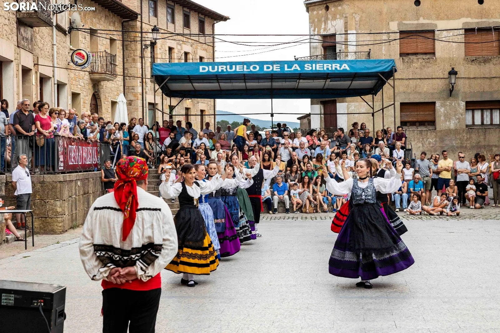 La plaza de Duruelo de la Sierra ha sido el escenario del IX Certamen de Folklore Tradicional, celebrado este sábado 6 de julio. Decenas de bailarines procedentes de distintos pueblos de Soria y Burgos han mostrado el trabajo realizado durante todo el año en las clases impartidas por el profesor Tinín, natural de Rabanera del Pinar. Ataviados con trajes típicos —muchos de ellos confeccionados a mano—, los participantes han llenado de color, música y tradición una jornada que ya es cita obligada en el municipio. Danzas colectivas como La burgalesa o La panaderilla, junto a jotas emblemáticas como Los novillos o Valonsadero, han hecho disfrutar al público en un certamen que apuesta por conservar el patrimonio cultural de la zona. Como novedad, Duruelo ha sorprendido con un traje local más vistoso, en lugar del tradicional piñorra, marcando el inicio de una celebración donde la rondalla ha abierto paso al ritmo del folklore.