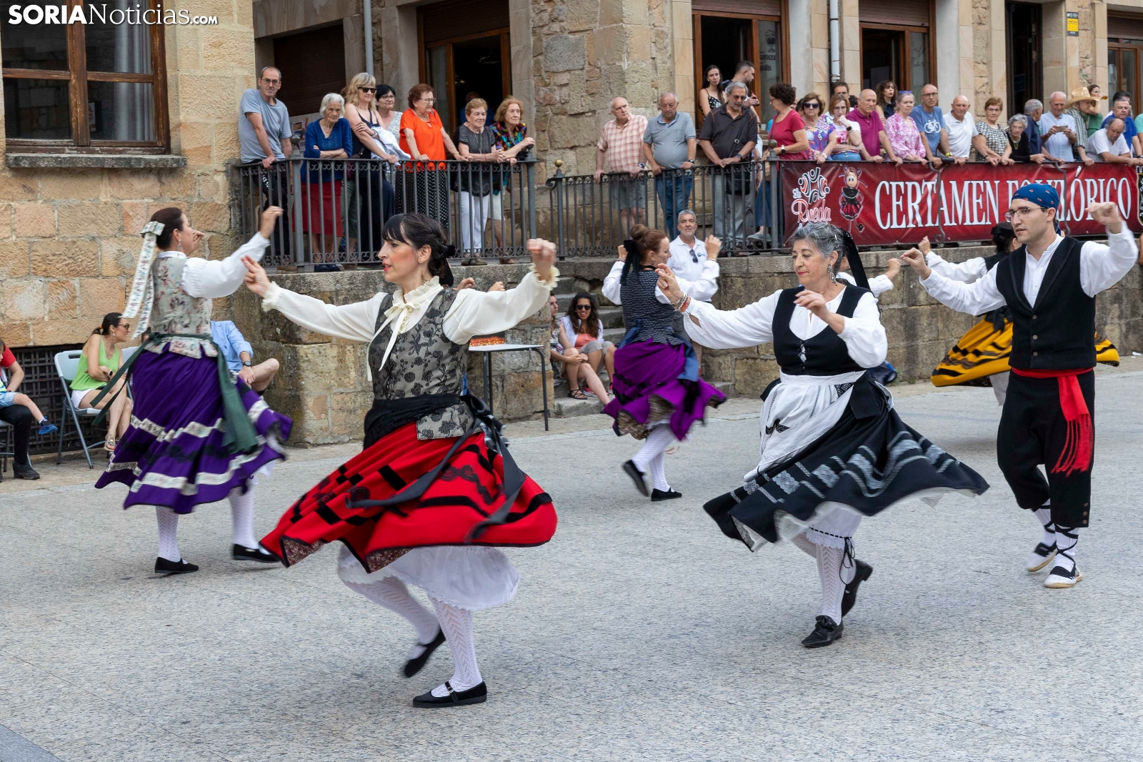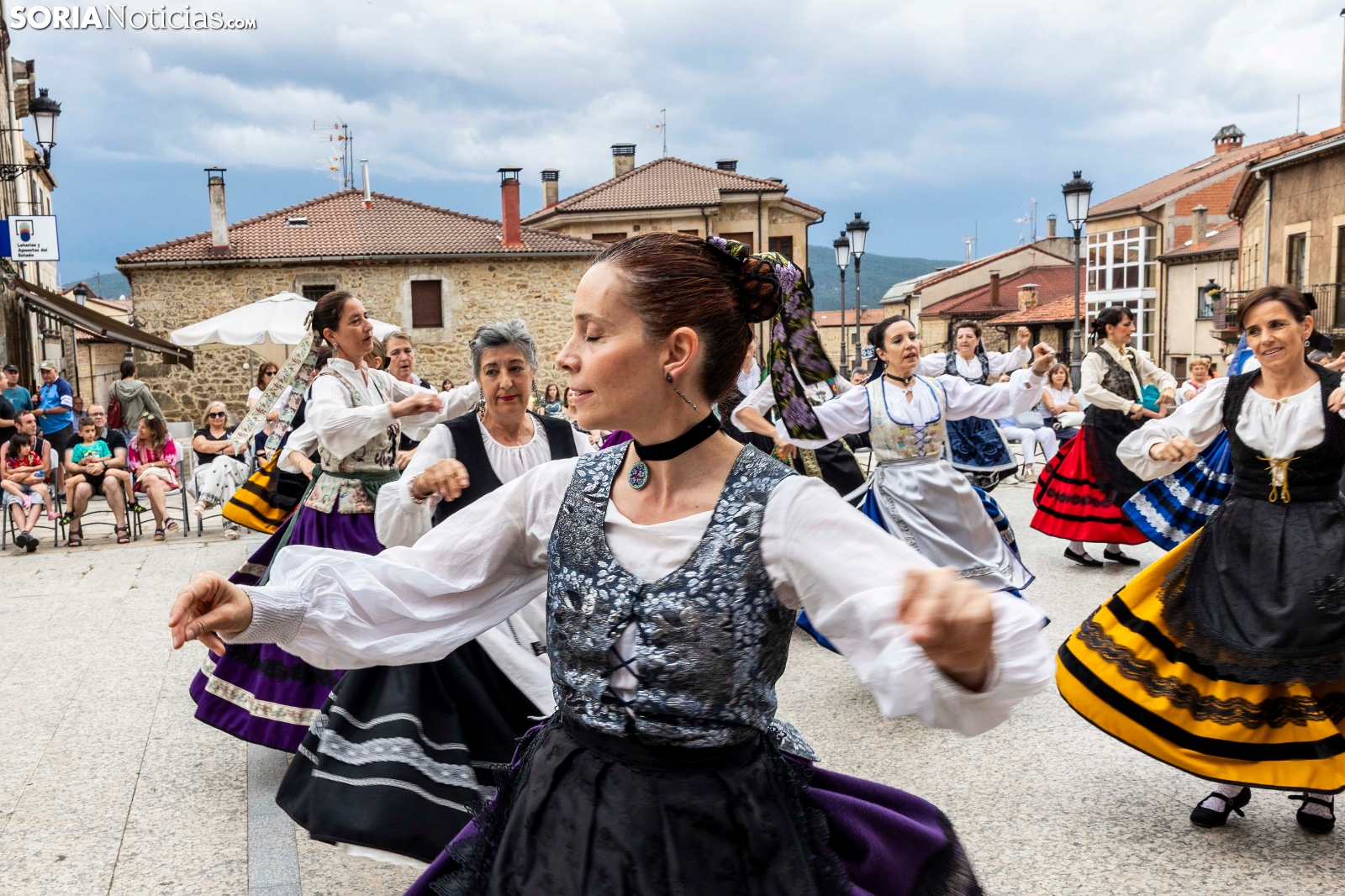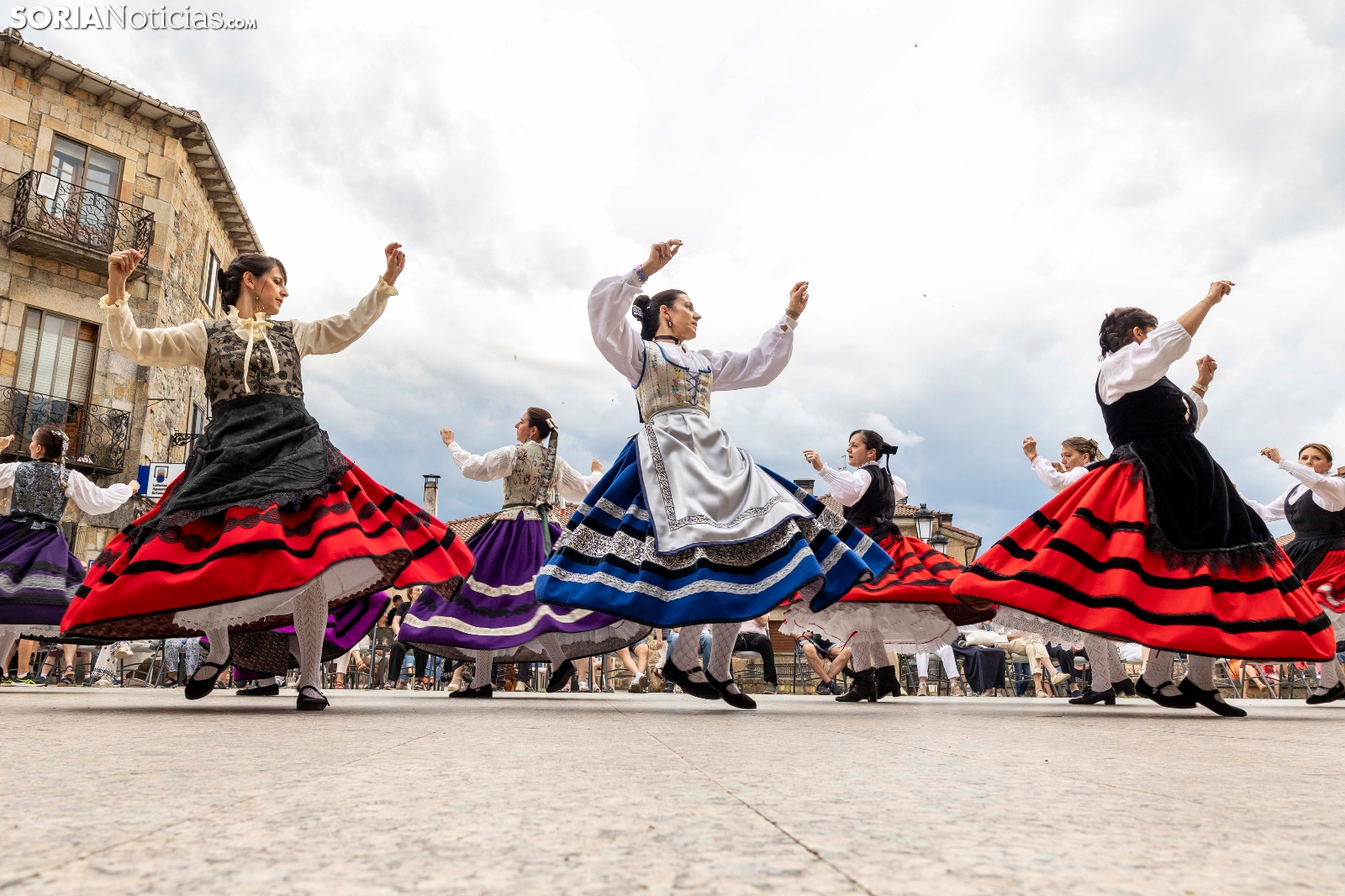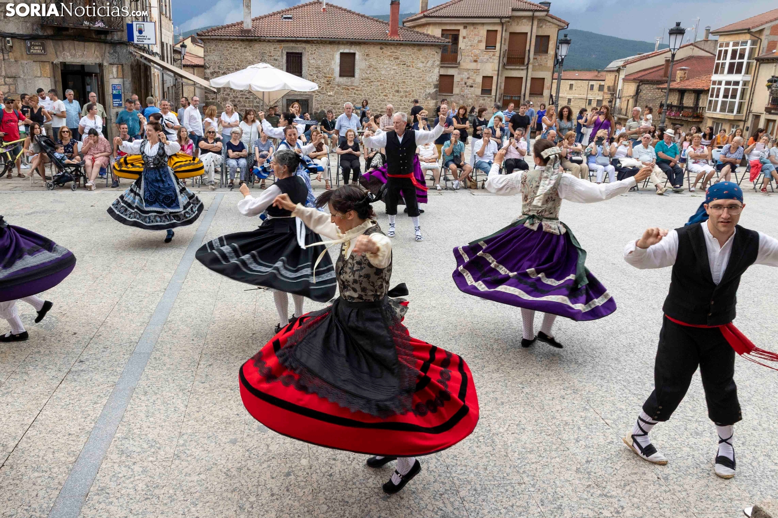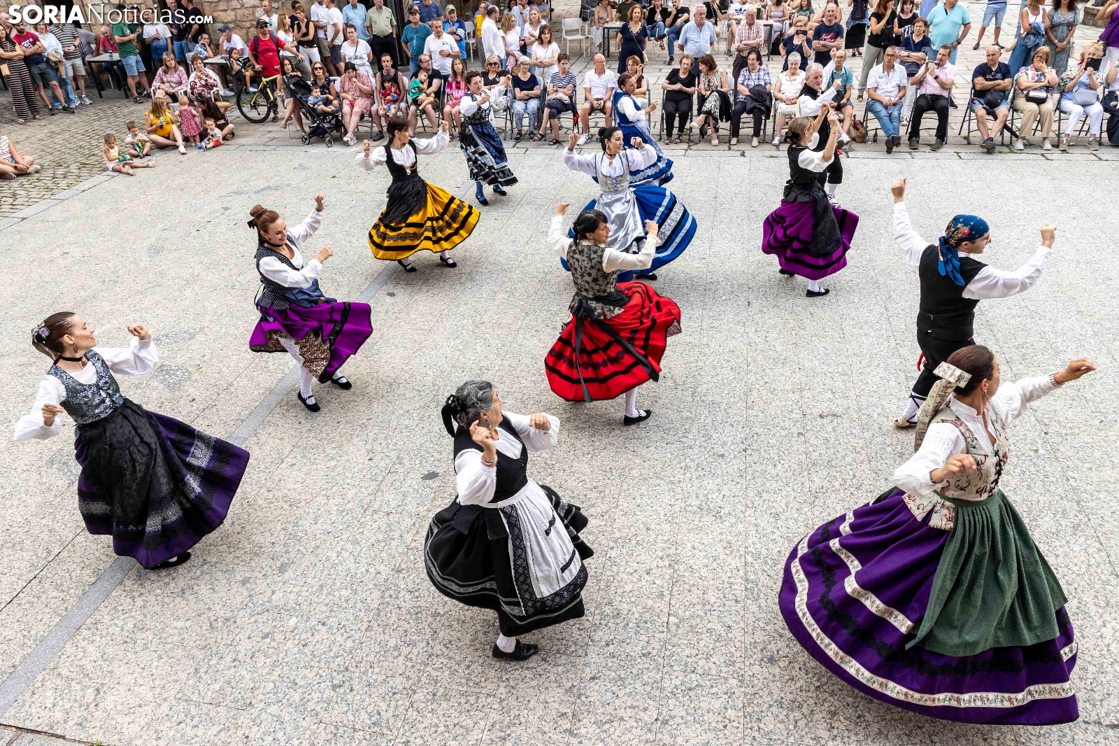 La plaza de Duruelo de la Sierra ha sido el escenario del IX Certamen de Folklore Tradicional, celebrado este sábado 6 de julio. Decenas de bailarines procedentes de distintos pueblos de Soria y Burgos han mostrado el trabajo realizado durante todo el año en las clases impartidas por el profesor Tinín, natural de Rabanera del Pinar. Ataviados con trajes típicos —muchos de ellos confeccionados a mano—, los participantes han llenado de color, música y tradición una jornada que ya es cita obligada en el municipio. Danzas colectivas como La burgalesa o La panaderilla, junto a jotas emblemáticas como Los novillos o Valonsadero, han hecho disfrutar al público en un certamen que apuesta por conservar el patrimonio cultural de la zona. Como novedad, Duruelo ha sorprendido con un traje local más vistoso, en lugar del tradicional piñorra, marcando el inicio de una celebración donde la rondalla ha abierto paso al ritmo del folklore.