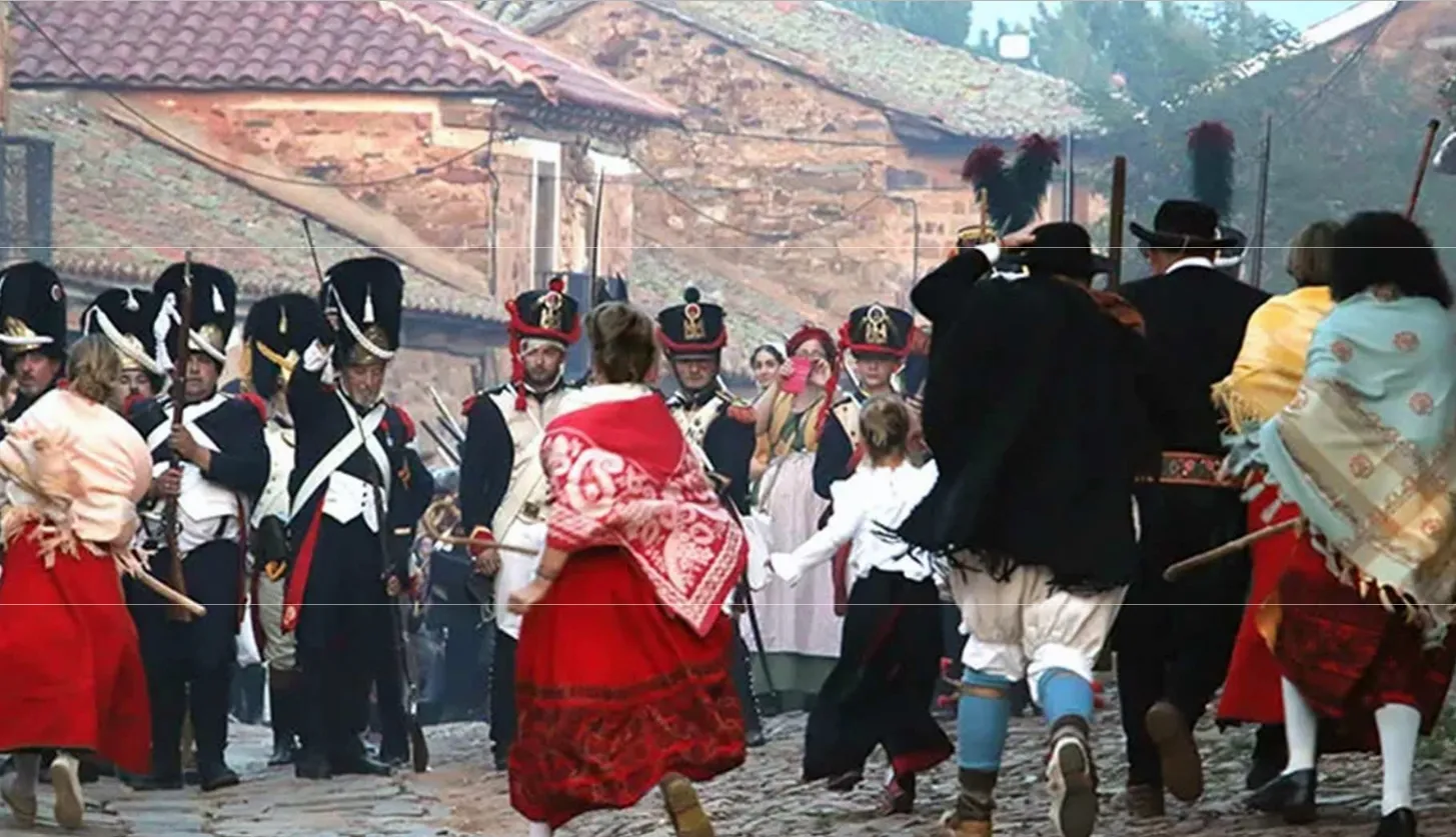 La recreación se fundamenta en uno de los sucesos más trágicos y heroicos de la historia de Almazán durante la Guerra de la Independencia. El 10 de julio de 1810, las tropas del Primer Imperio Francés, compuestas por 1.100 hombres al mando del coronel Pierre Baste, incendiaron la villa. Esta drástica acción fue la respuesta a la tenaz resistencia que ofrecieron 1.600 guerrilleros, liderados por el célebre Jerónimo Merino, más conocido como 'El Cura Merino', quienes se atrincheraron tras las murallas junto a los vecinos.