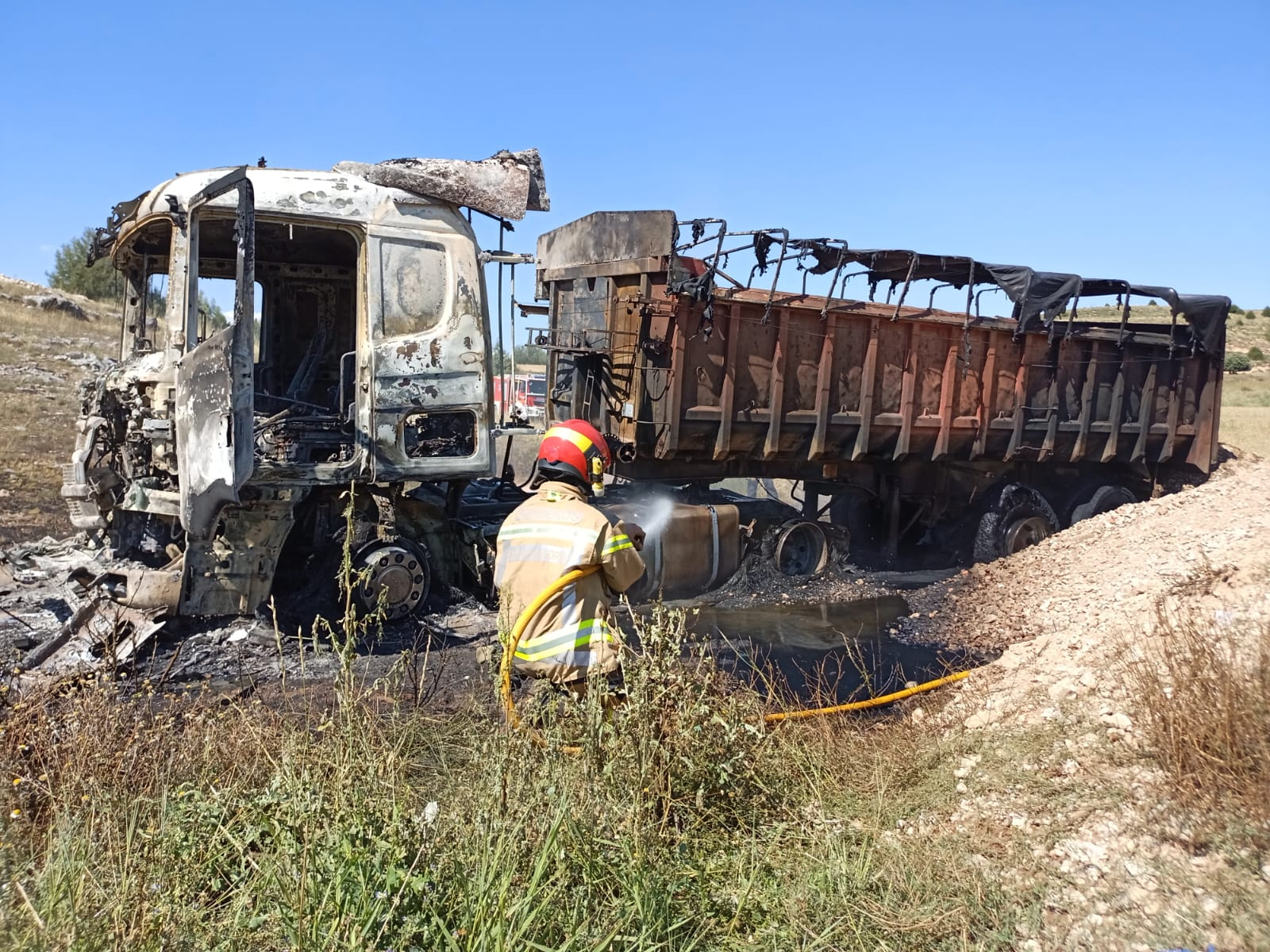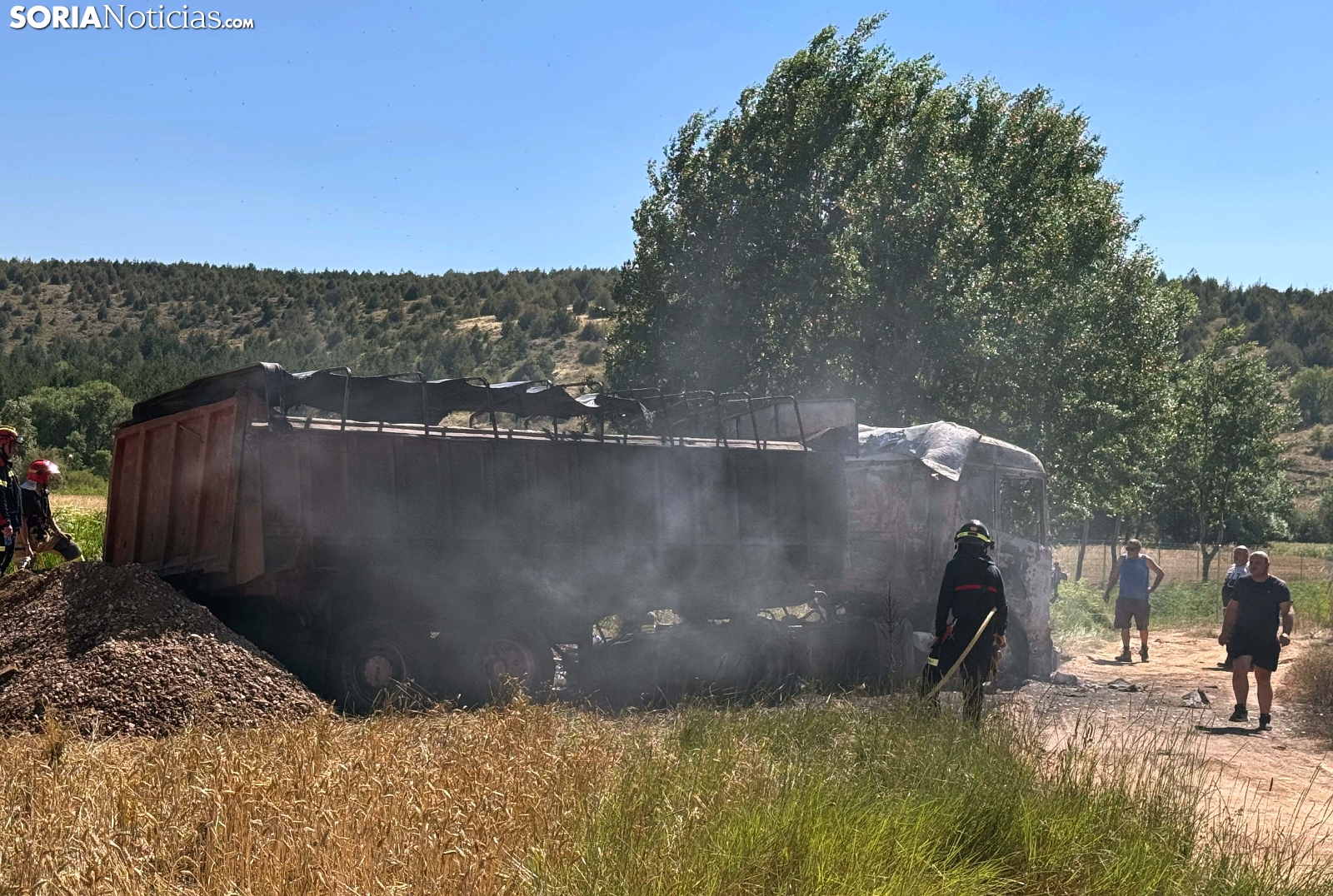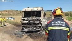 A las 15:40 horas de este jueves se daba del aviso sobre el incendio de un camión que se hallaba trabajando en unas obras dentro de un terreno particular y de carácter forestal en Bayubas de Abajo.