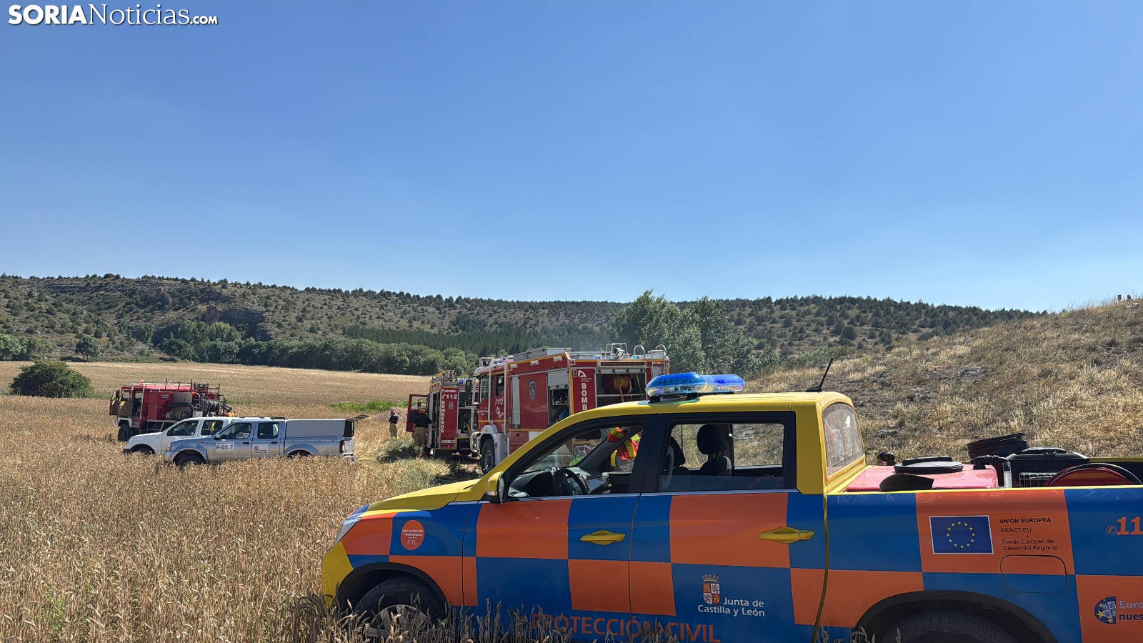 En las labores de extinción, que se daban por concluidas a las siete de la tarde, han tomado parte bomberos voluntarios del mencionado municipio así como de Berlanga de Duero, efectivos del parque antiincendios que la Diputación tiene en El Burgo de Osma y una cuadrilla terrestre. Además de estos efectivos el operativo ha contado con presencia de la Guardia Civil y un agente medio ambiental de la Junta.