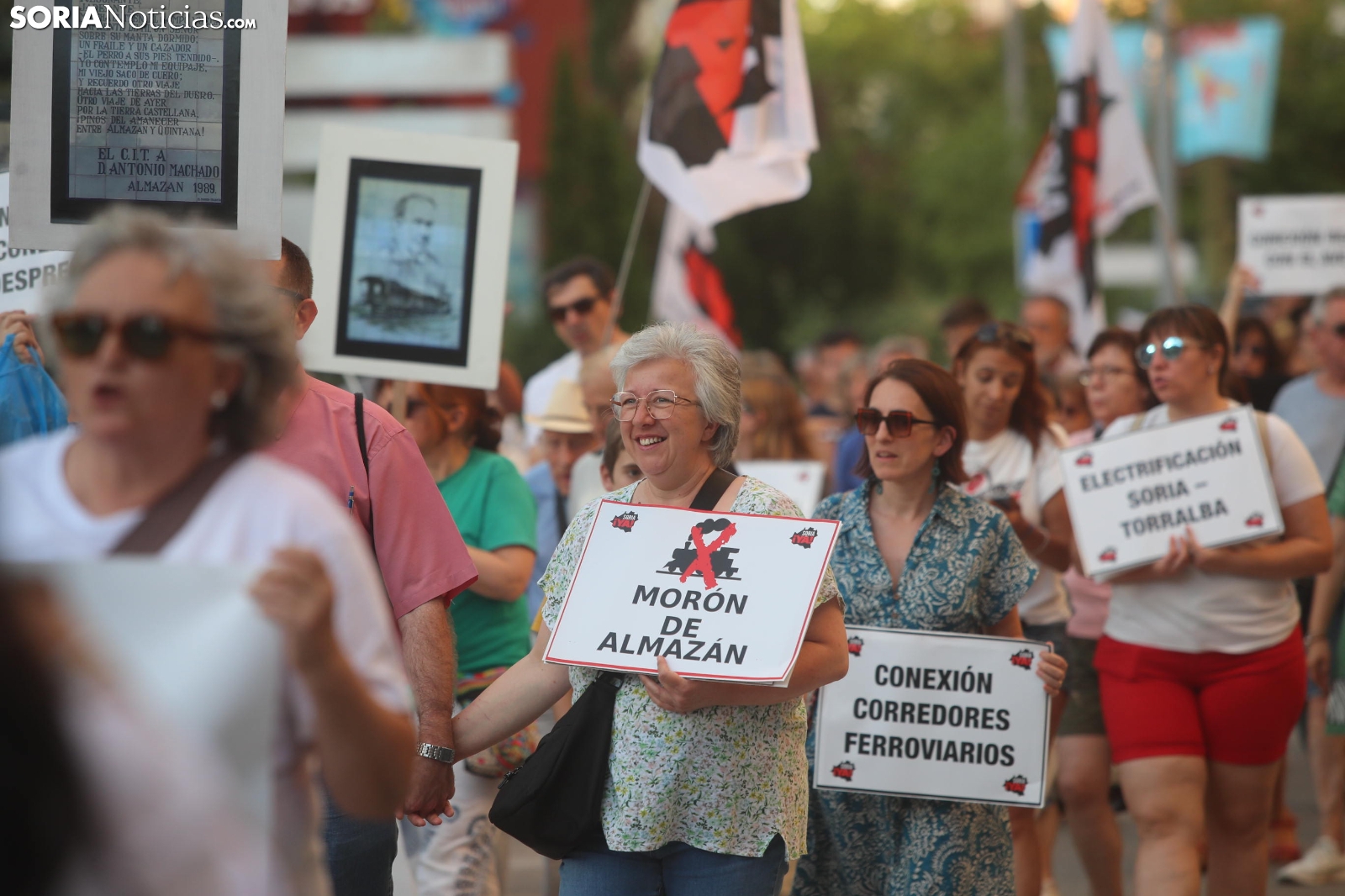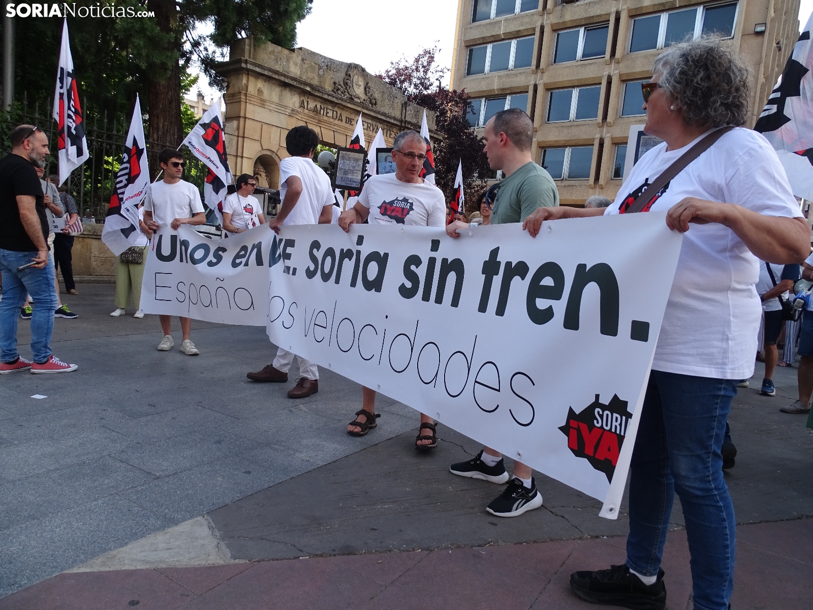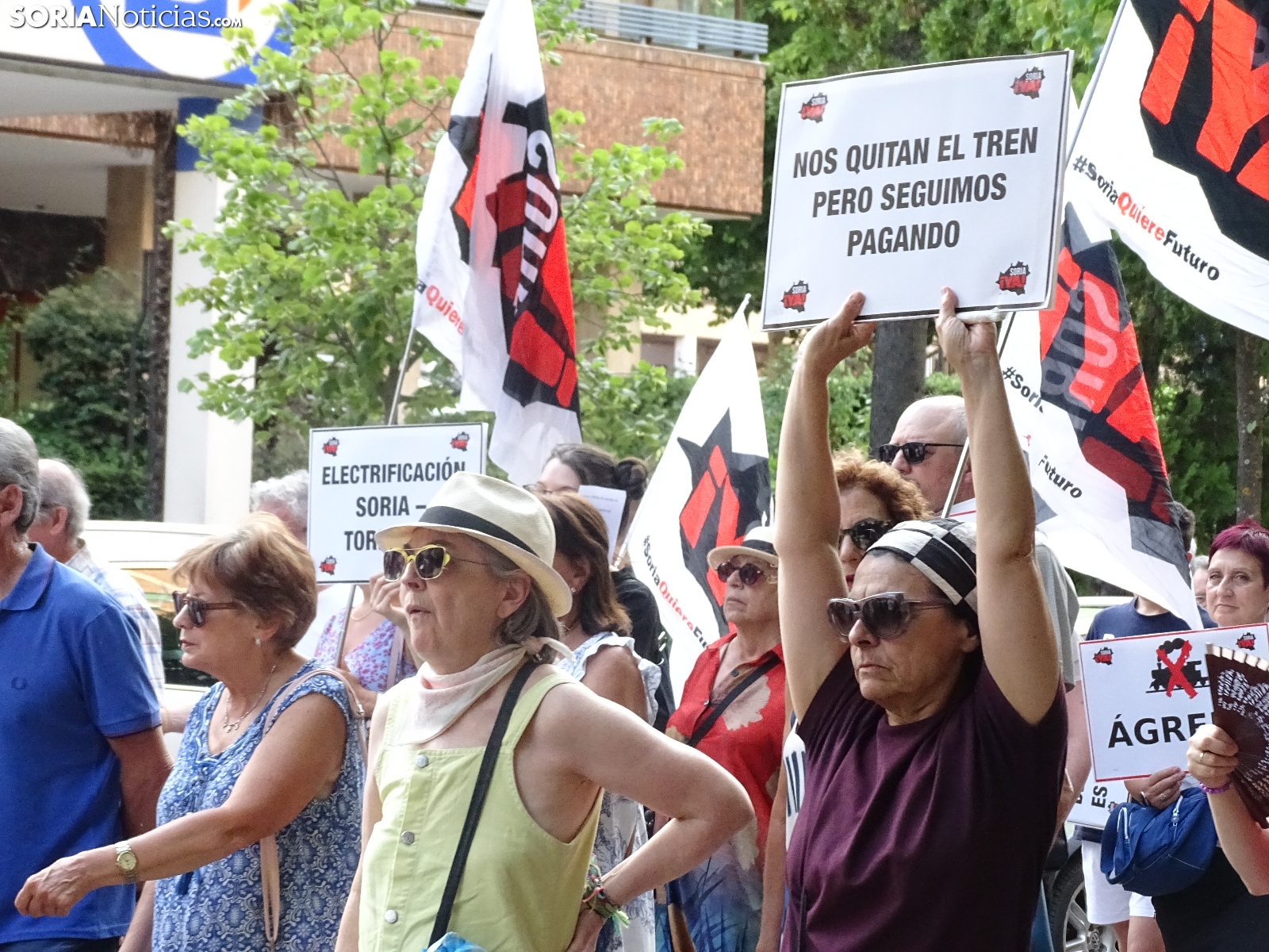 Del mismo modo se ha incidido en que las exigencias no son "privilegios", reclamando la reapertura inmediata de dicha línea y la electrificación de la Soria-Torralba; la conexión de Soria con la red de alta velocidad; la implicación entre la Junta y Renfe para procurar tres viajes diarios de ida y vuelta en la línea Madrid-Arcos de Jalón; e incluir a Soria entre los trazados ferroviarios del país. L inclusión de Soria en los corredores ferroviarios estatales. Igualmente, ha sido mencionada la alta velocidad, algo que, según se ha podido escuchar durante la convocatoria de la formación sorianista, "no es falta de dinero, es falta de voluntad, porque somos pocos".