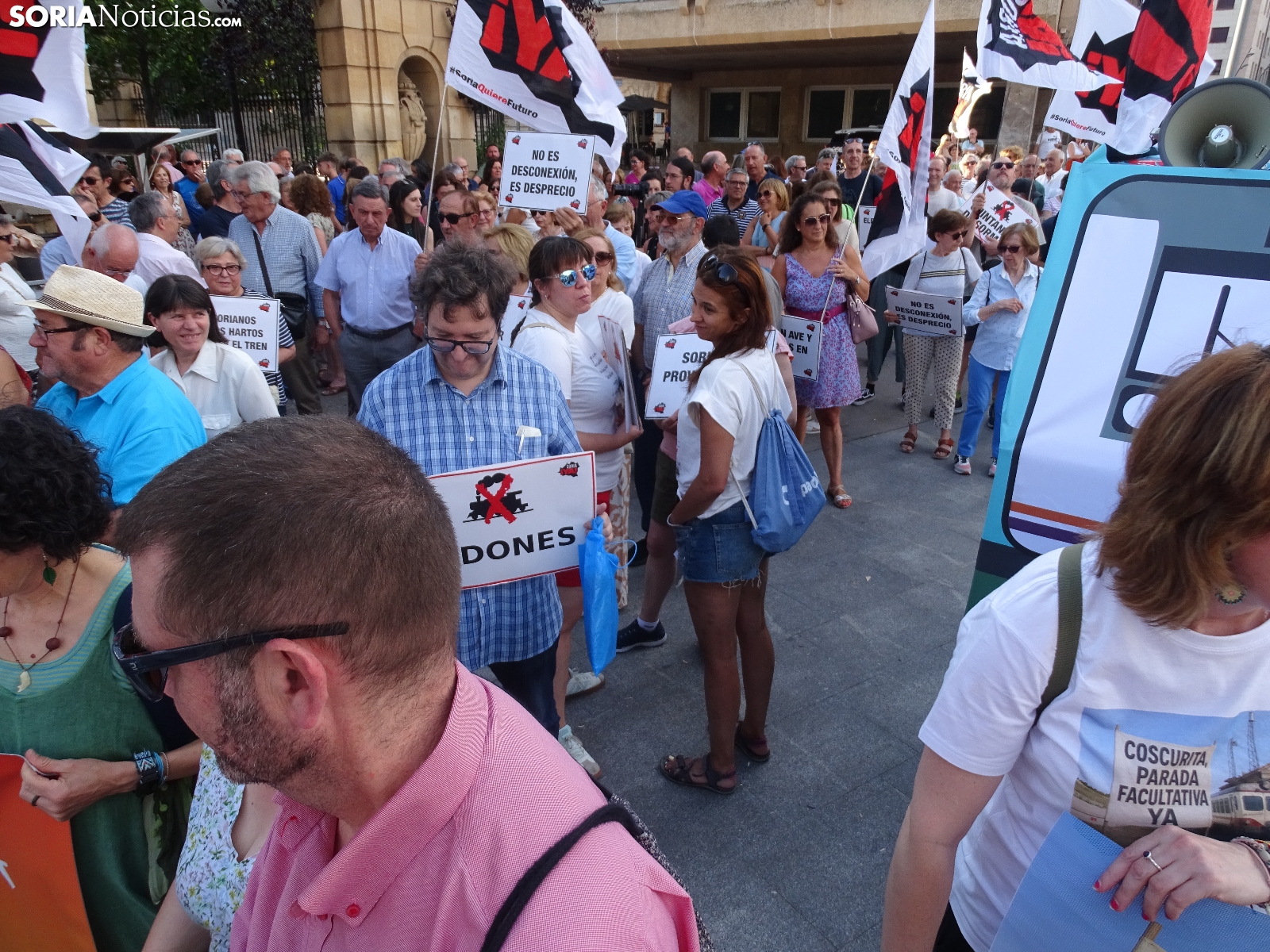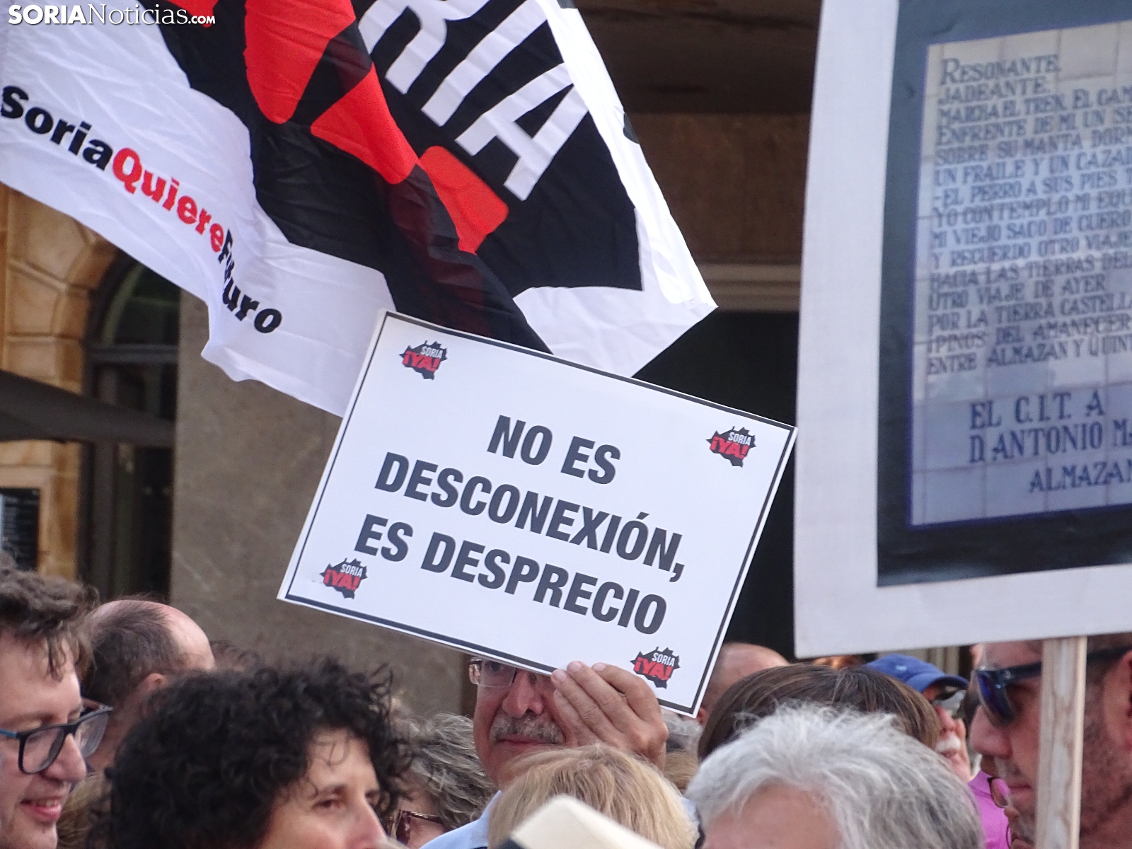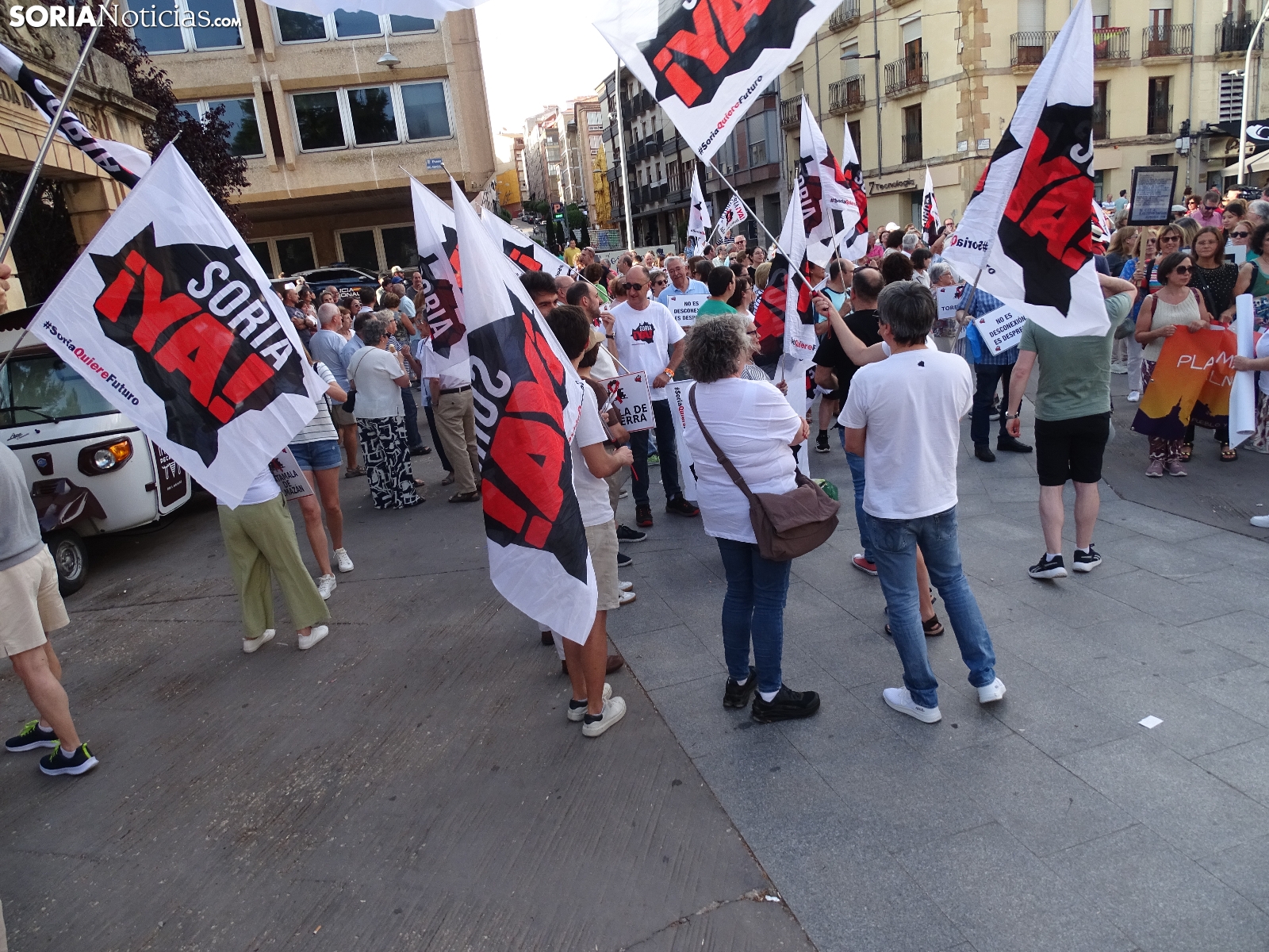 Del mismo modo se ha incidido en que las exigencias no son "privilegios", reclamando la reapertura inmediata de dicha línea y la electrificación de la Soria-Torralba; la conexión de Soria con la red de alta velocidad; la implicación entre la Junta y Renfe para procurar tres viajes diarios de ida y vuelta en la línea Madrid-Arcos de Jalón; e incluir a Soria entre los trazados ferroviarios del país. L inclusión de Soria en los corredores ferroviarios estatales. Igualmente, ha sido mencionada la alta velocidad, algo que, según se ha podido escuchar durante la convocatoria de la formación sorianista, "no es falta de dinero, es falta de voluntad, porque somos pocos".