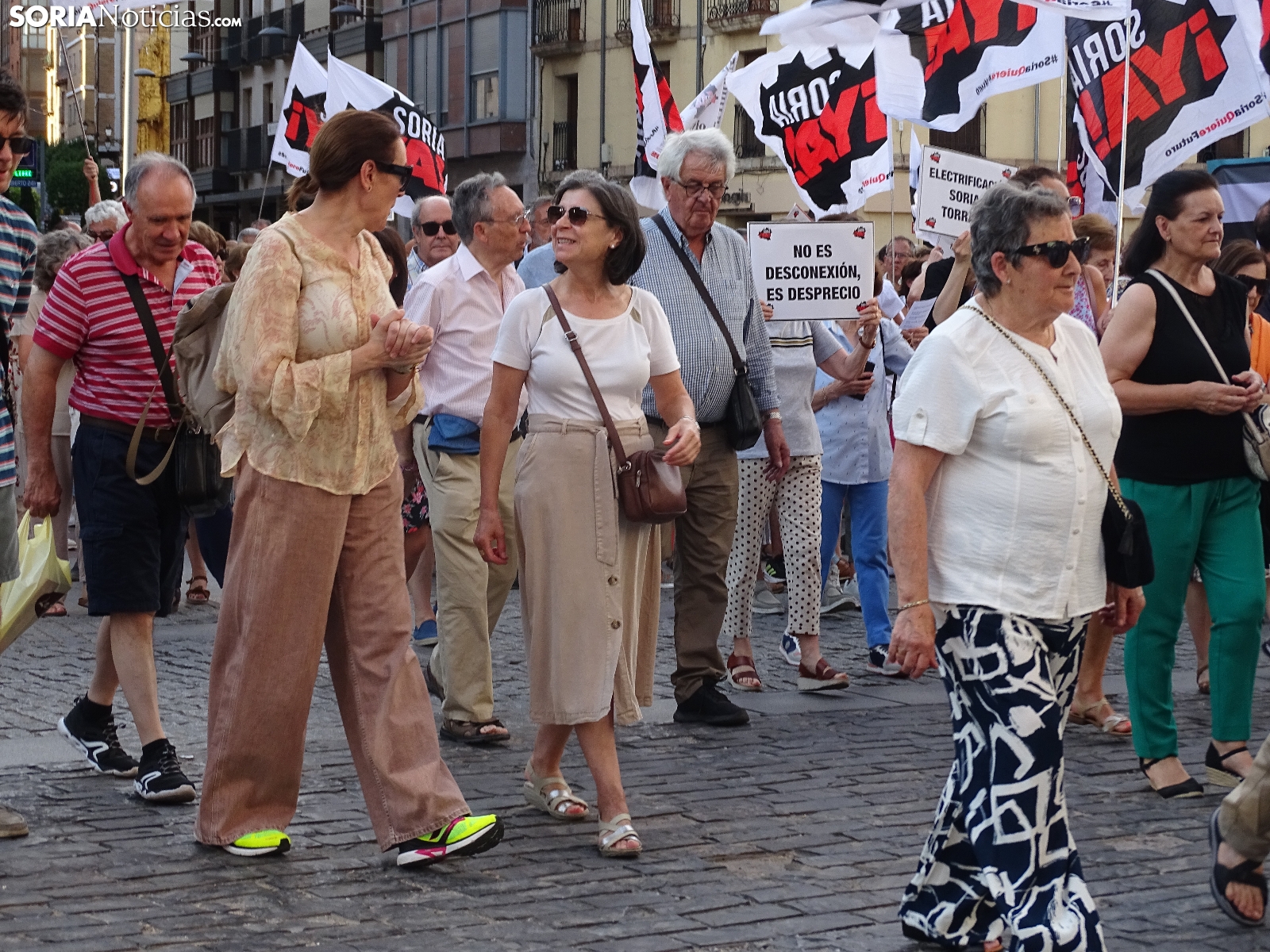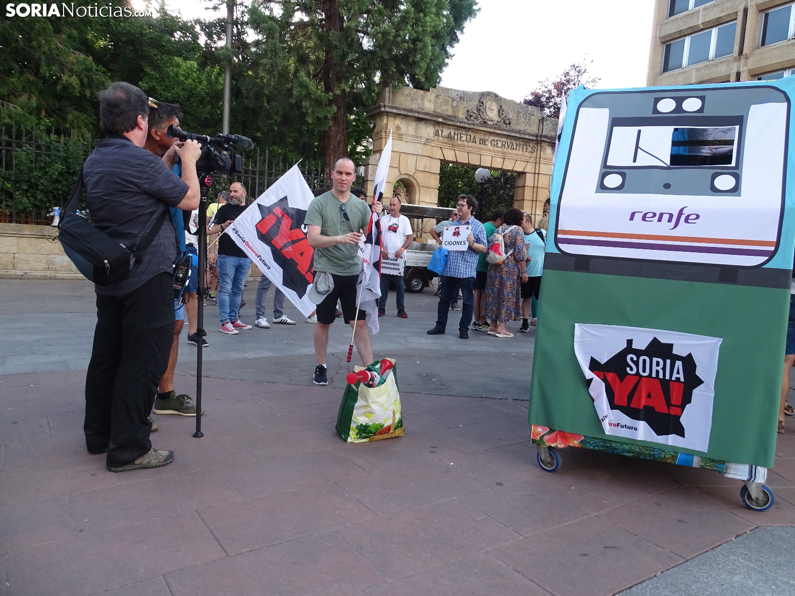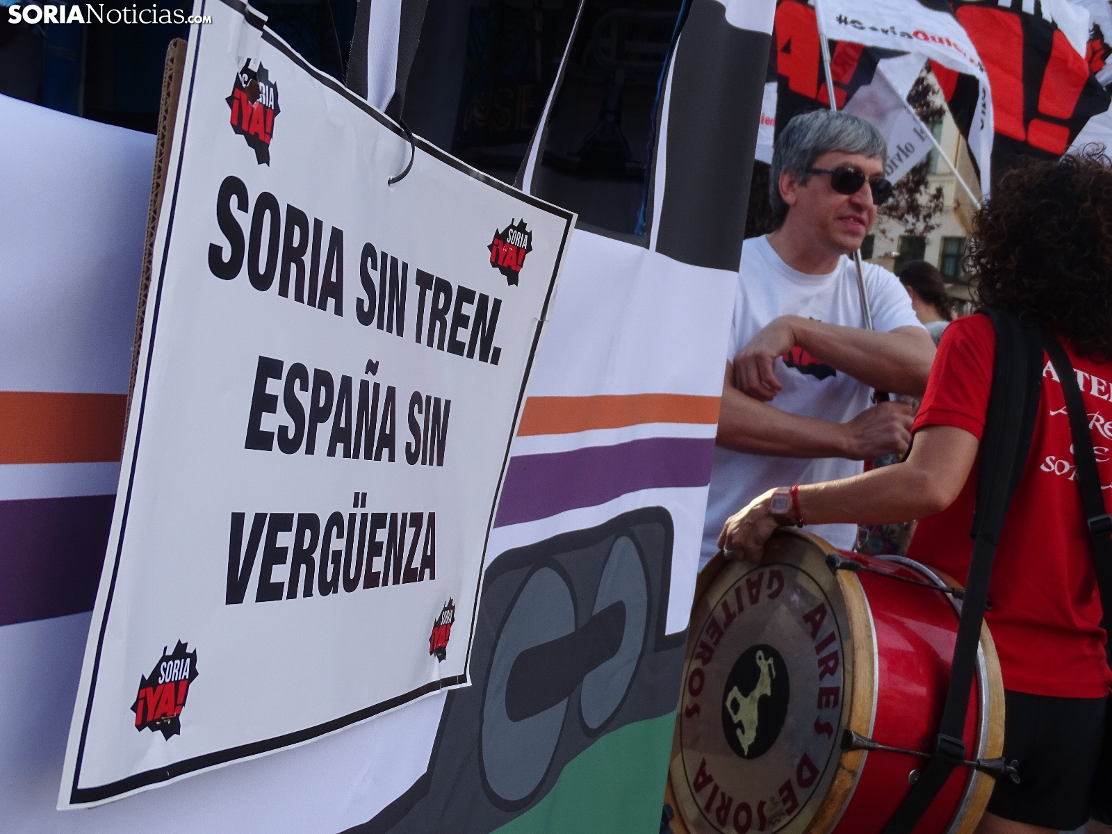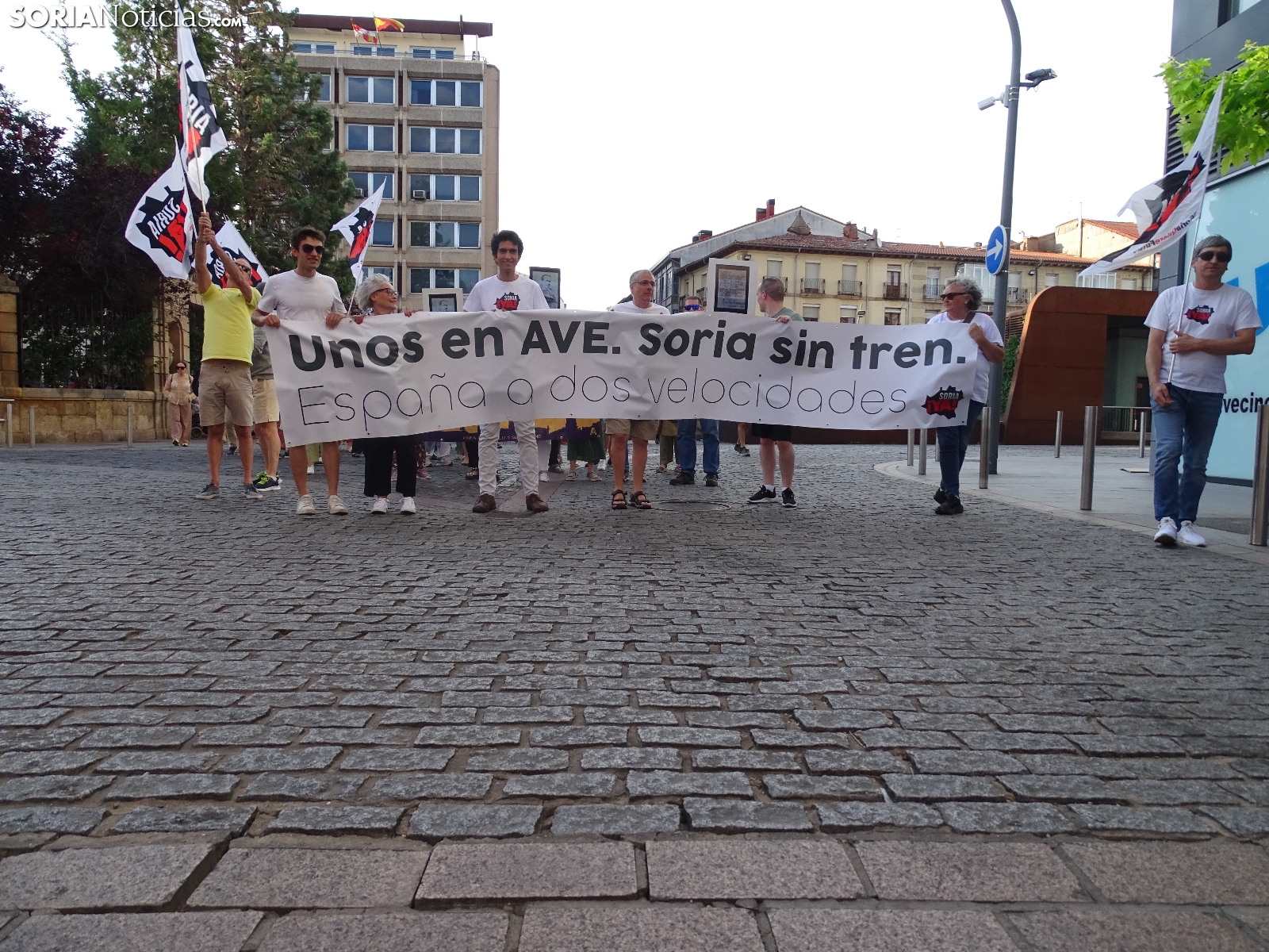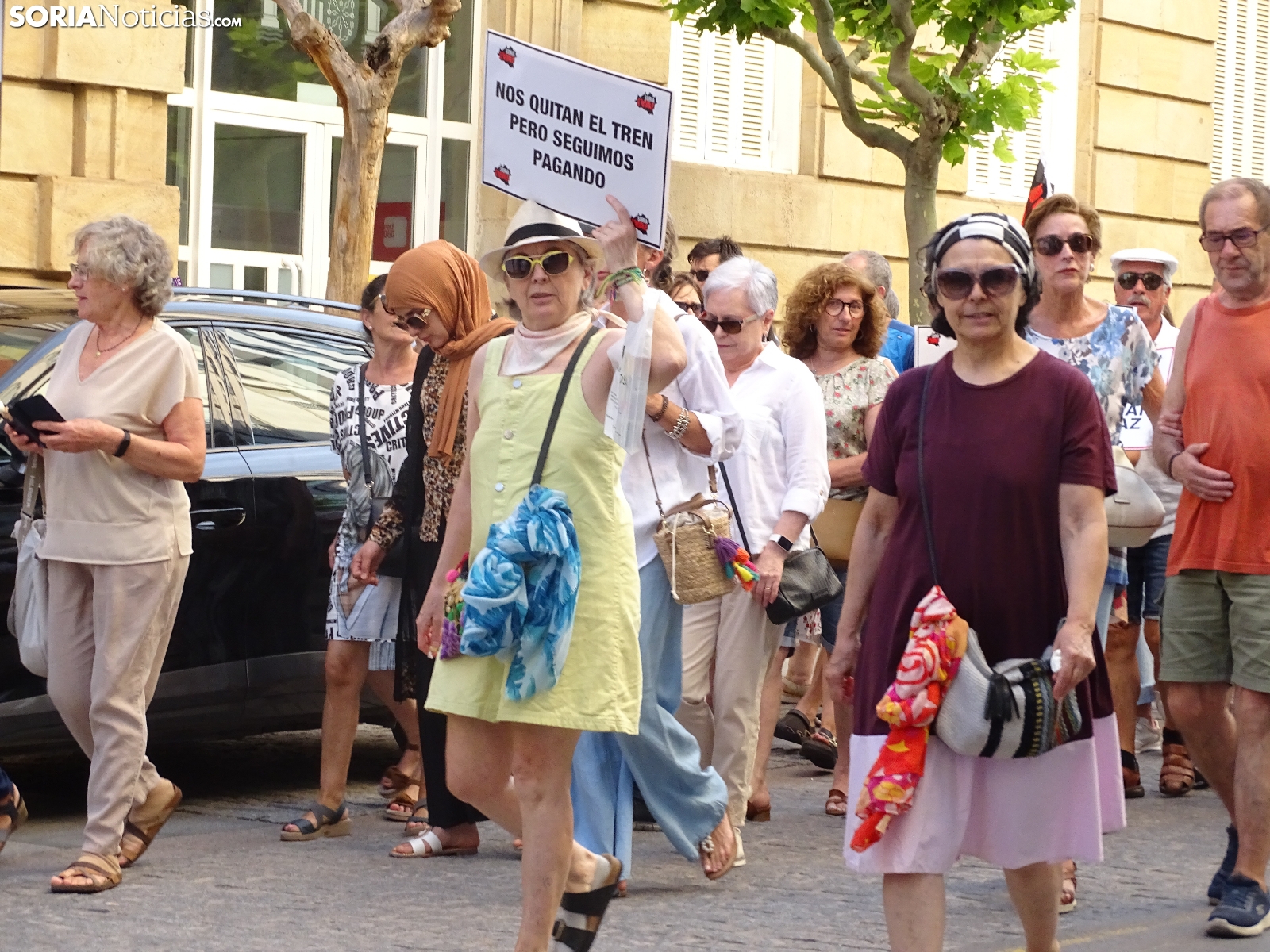 "En breves instantes saldrá el tren con destino El Cañuelo". De este modo, pasadas las ocho de la tarde de este viernes, era anunciado el inicio, en la plaza de Mariano Granados, de la manifestación convocada por Soria Ya que bajo el lema 'El único tren que pasa por Soria es el de las excusas' ha reivindicado reivindicado un ferrocarril digno para la provincia después de que en 40 años la red de esta infraestructura pública se ha ido viendo desmantelada.