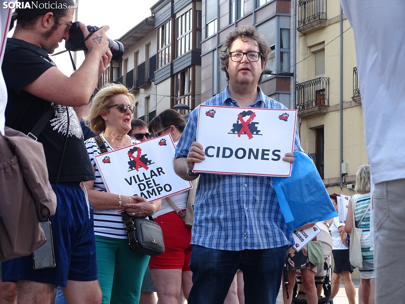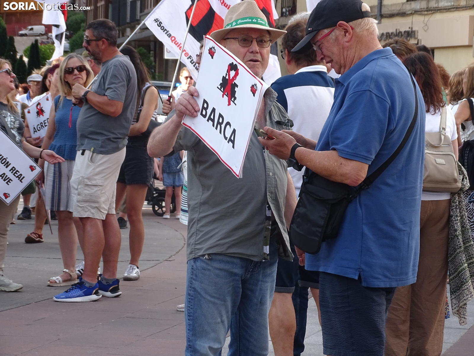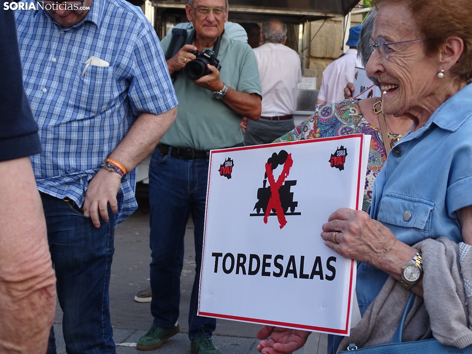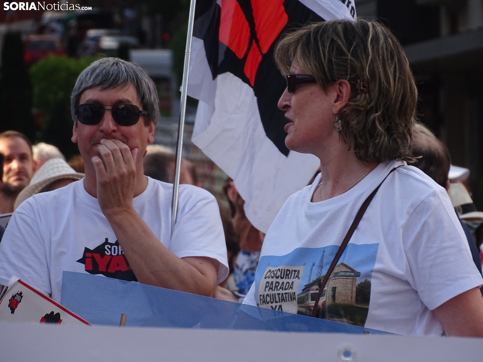 "En breves instantes saldrá el tren con destino El Cañuelo". De este modo, pasadas las ocho de la tarde de este viernes, era anunciado el inicio, en la plaza de Mariano Granados, de la manifestación convocada por Soria Ya que bajo el lema 'El único tren que pasa por Soria es el de las excusas' ha reivindicado reivindicado un ferrocarril digno para la provincia después de que en 40 años la red de esta infraestructura pública se ha ido viendo desmantelada.