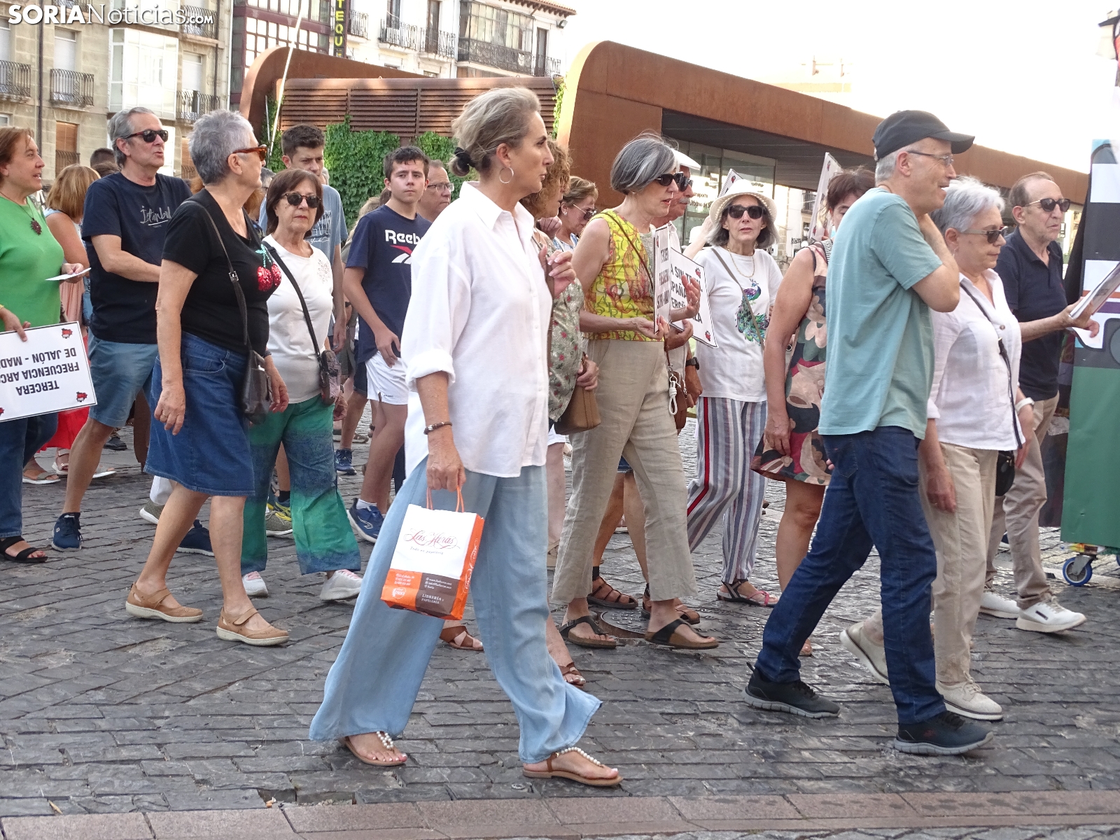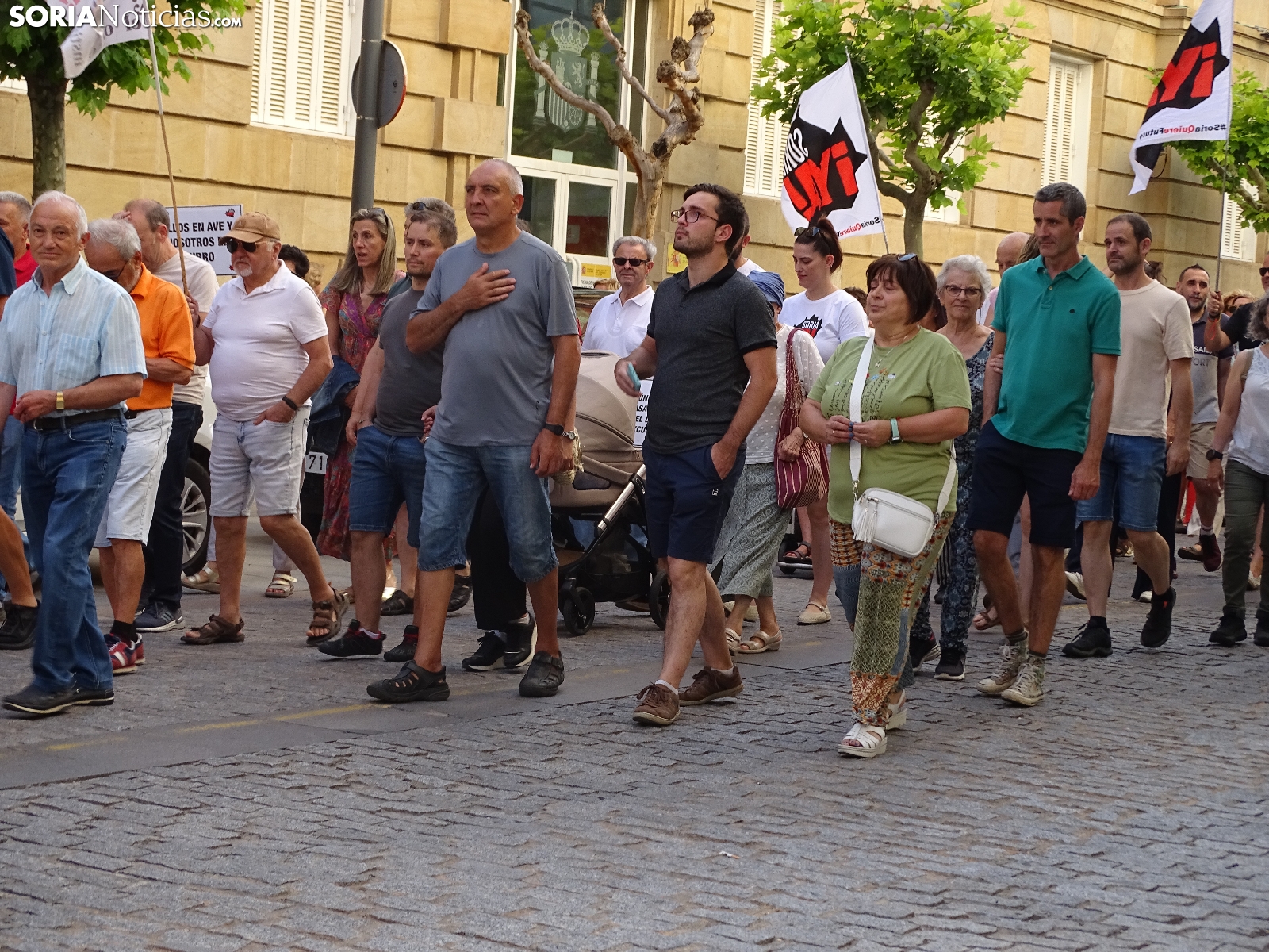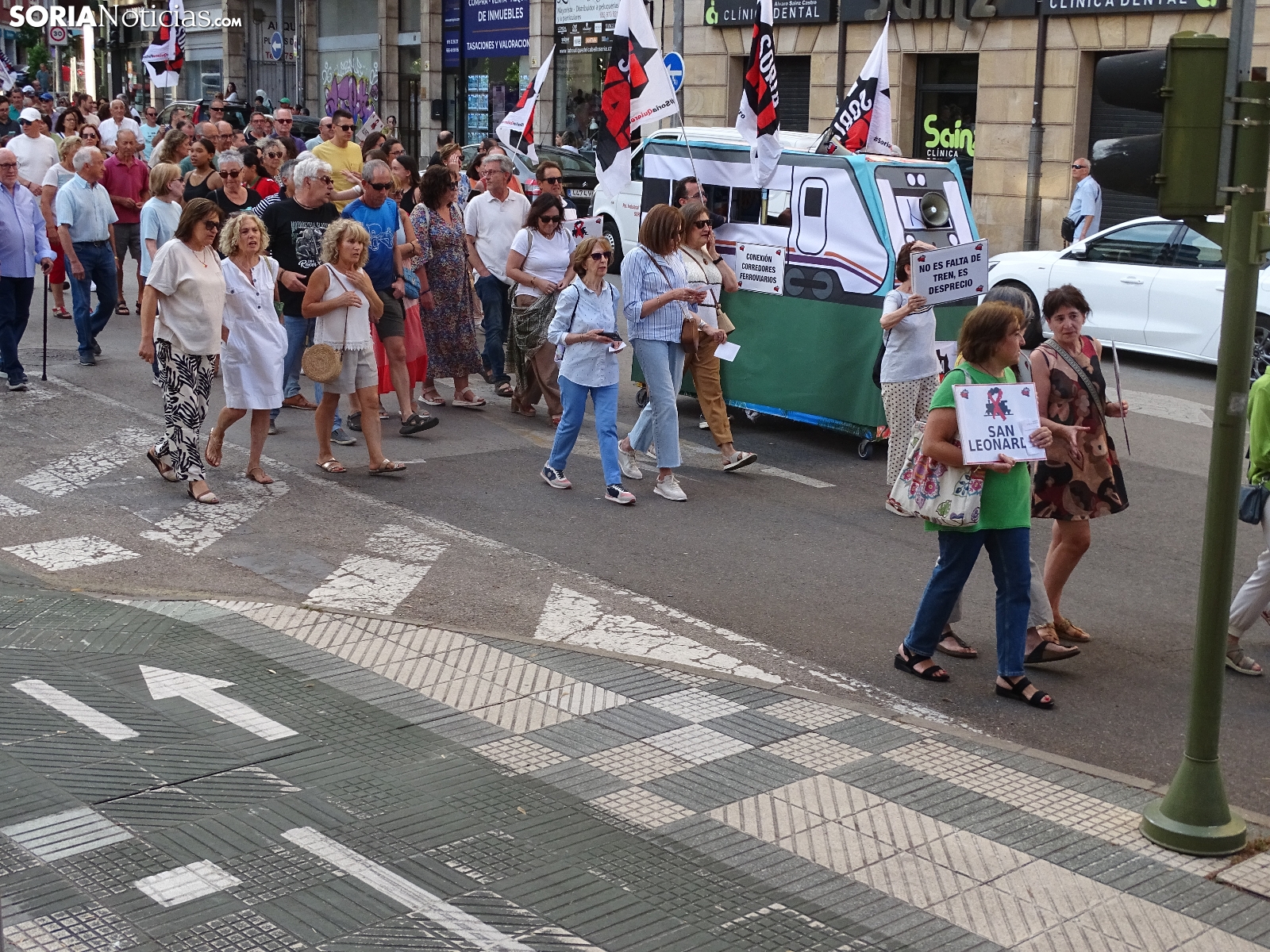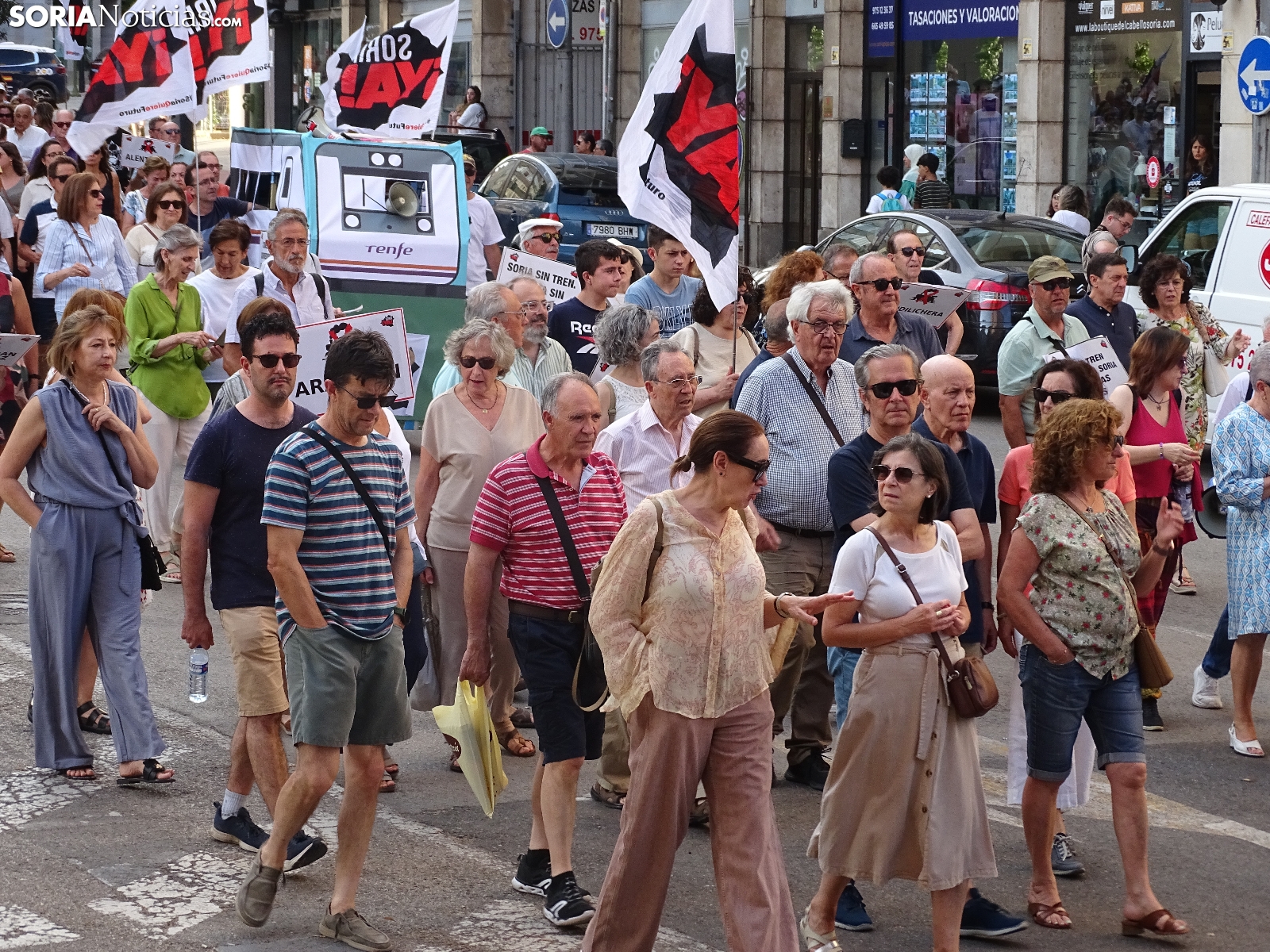 El recorrido, que era iniciado en la céntrica plaza de la ciudad, llegaba tras atravesar las calles Alfonso VIII, Mariano Vicén, calle Almazán y carretera de Madrid hasta la estación de Renfe, donde ha sido leído un manifiesto en el que se ha puesto el foco en asuntos como el estudio de viabilidad de la Soria-Castejón que todavía no ha visto la luz, pese a haberse cumplido los plazos y sus prórrogas.