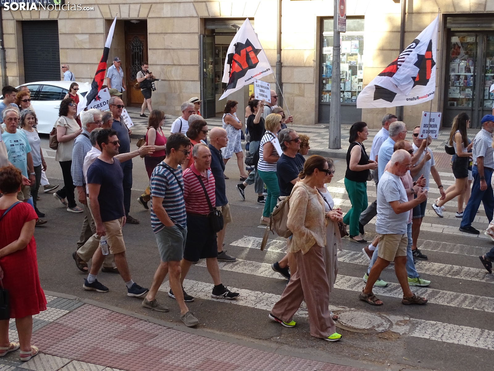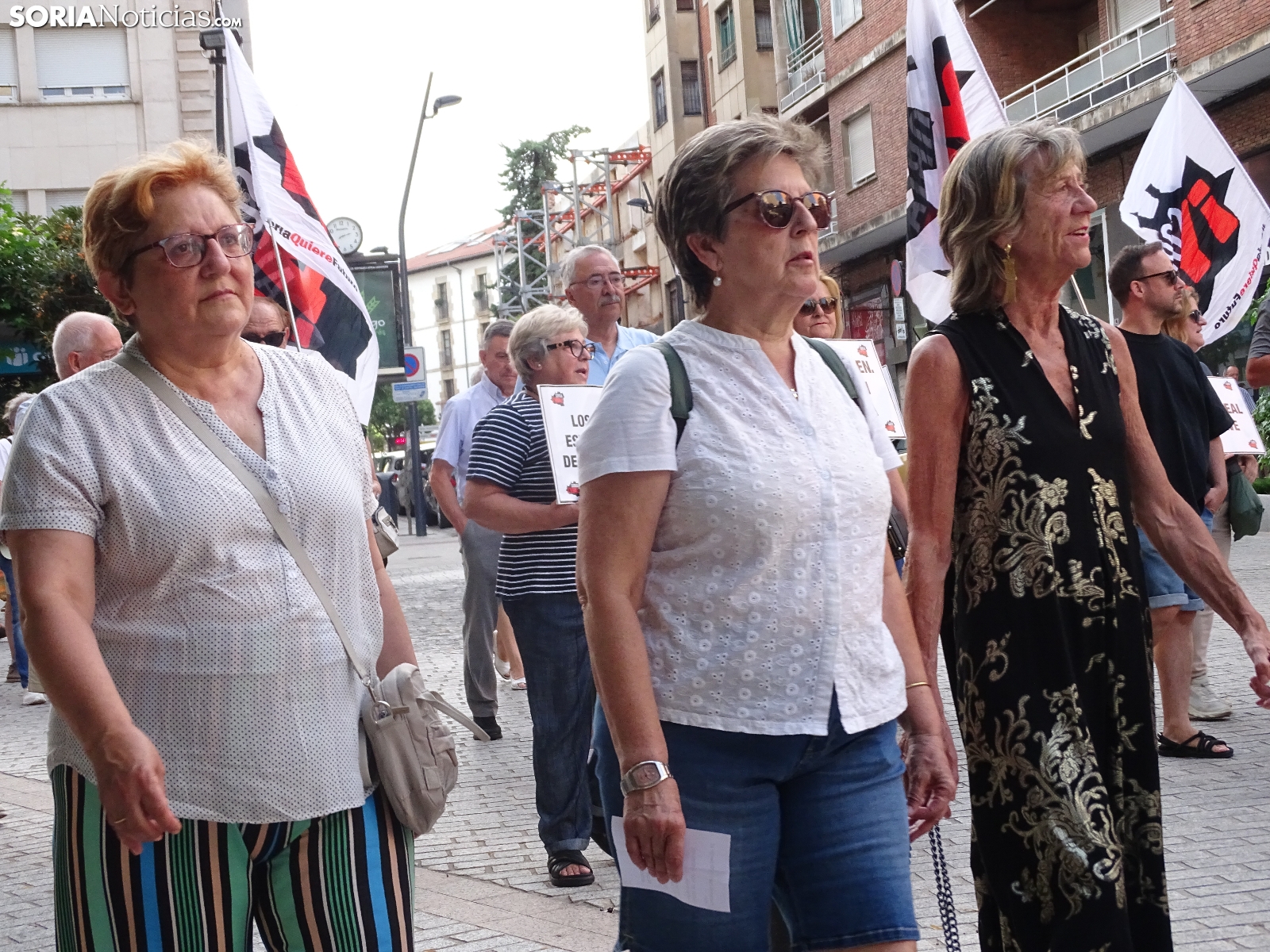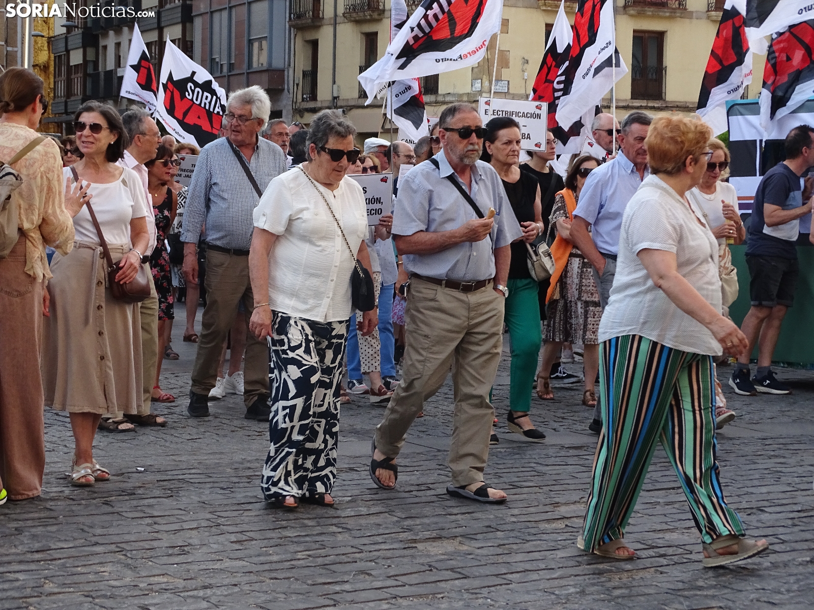 El recorrido, que era iniciado en la céntrica plaza de la ciudad, llegaba tras atravesar las calles Alfonso VIII, Mariano Vicén, calle Almazán y carretera de Madrid hasta la estación de Renfe, donde ha sido leído un manifiesto en el que se ha puesto el foco en asuntos como el estudio de viabilidad de la Soria-Castejón que todavía no ha visto la luz, pese a haberse cumplido los plazos y sus prórrogas.