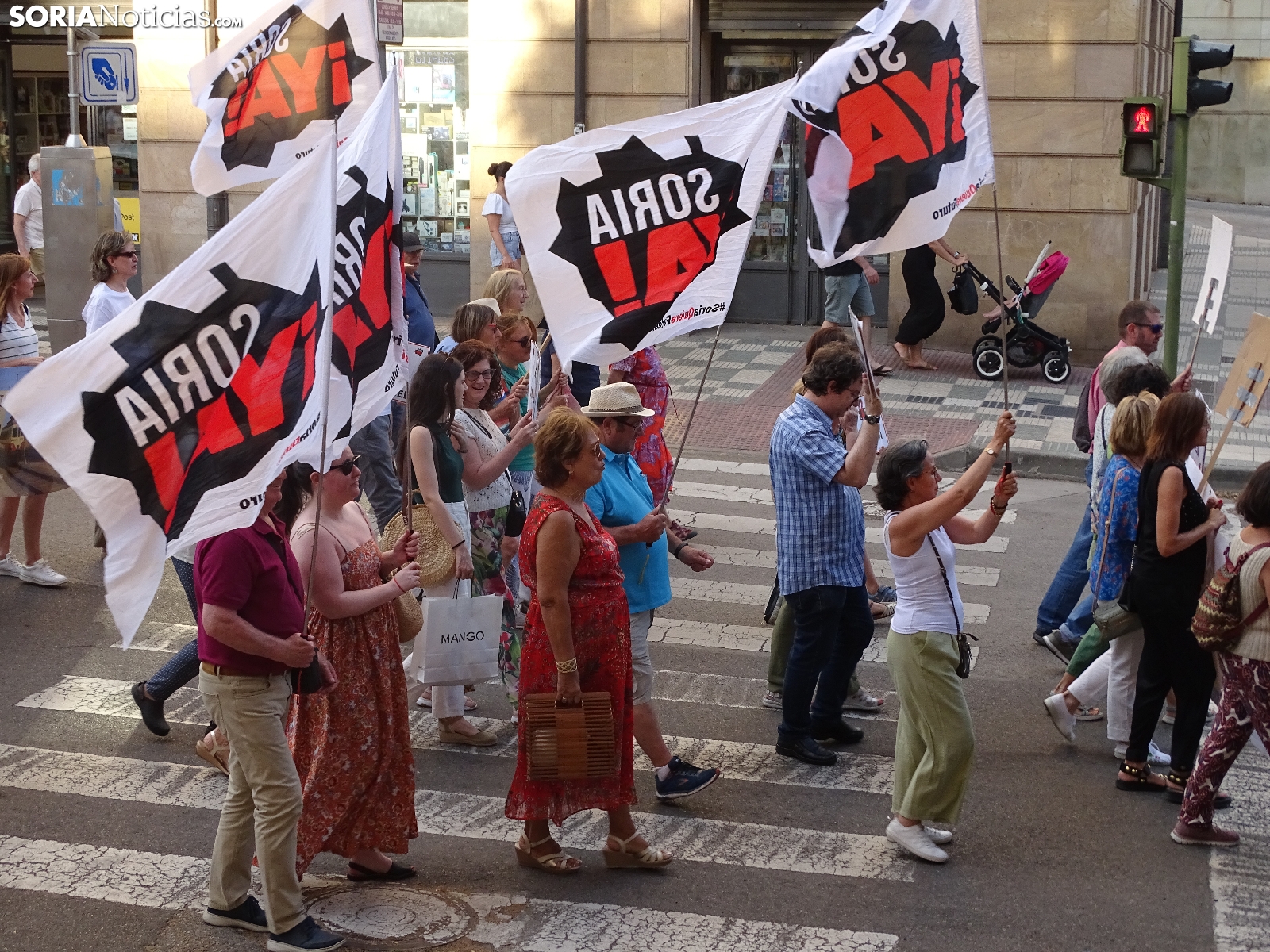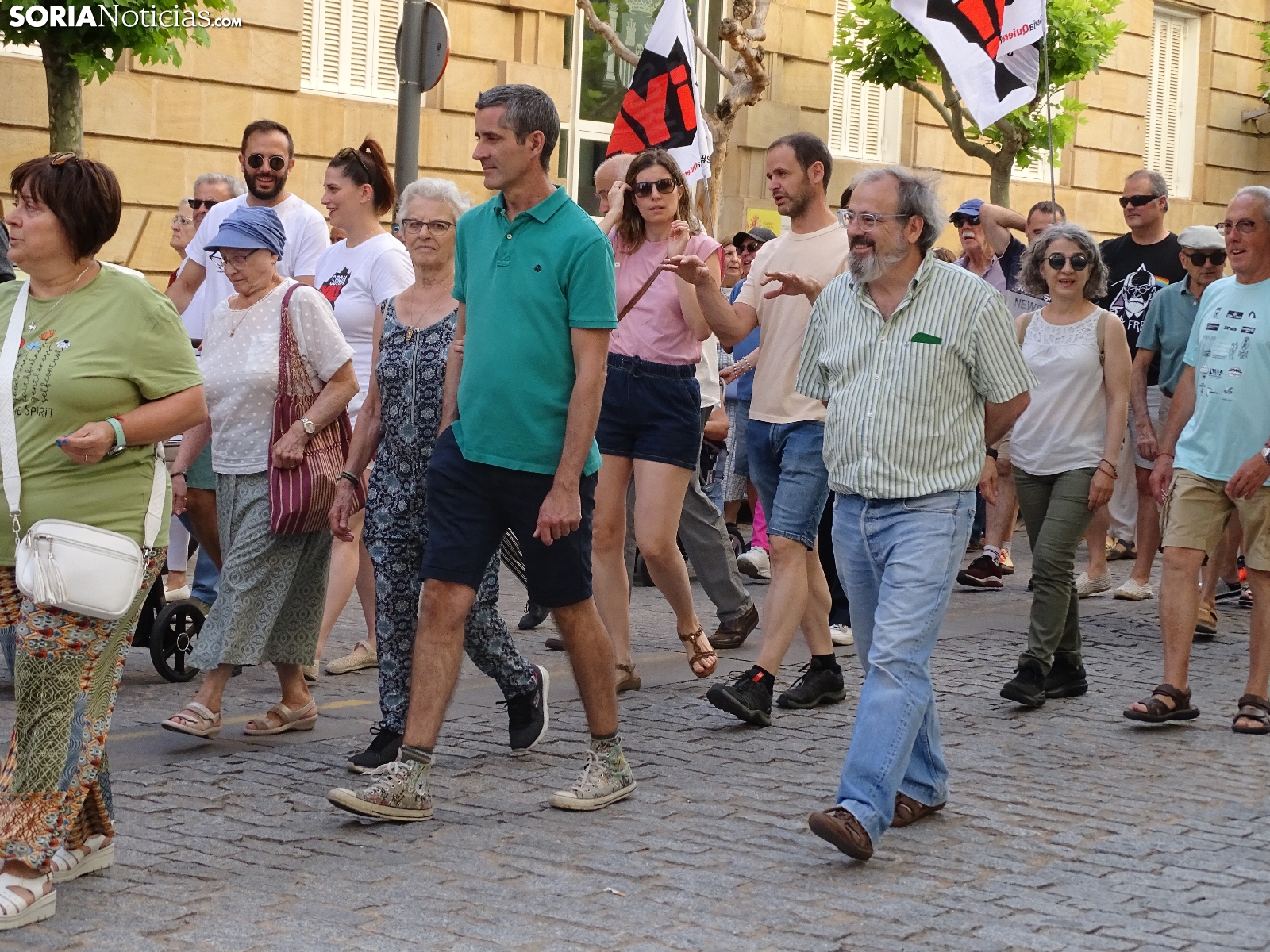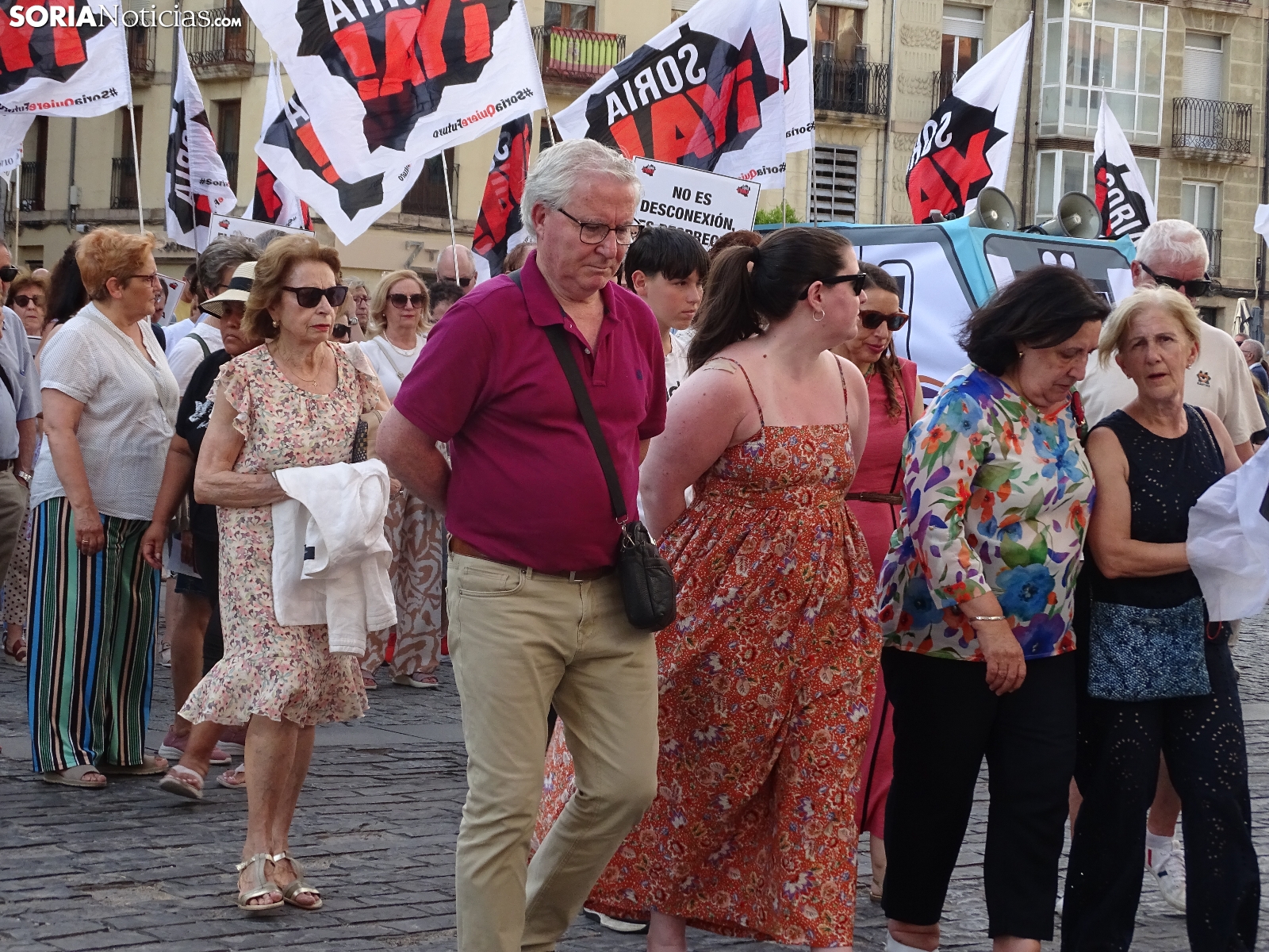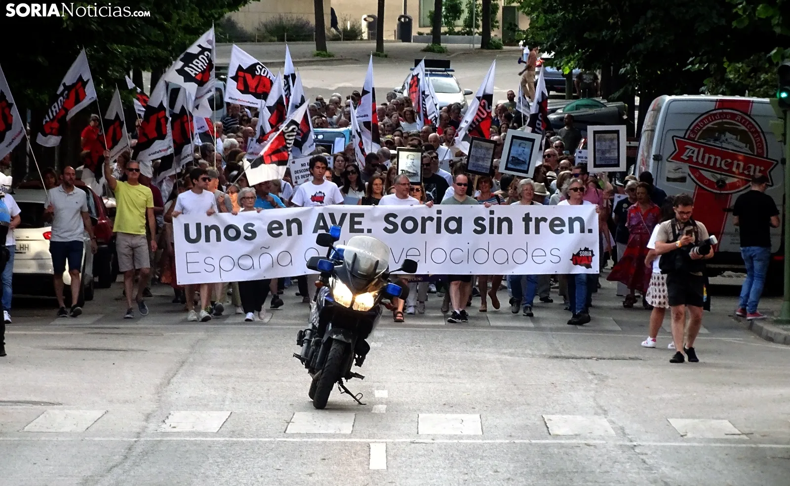 El recorrido, que era iniciado en la céntrica plaza de la ciudad, llegaba tras atravesar las calles Alfonso VIII, Mariano Vicén, calle Almazán y carretera de Madrid hasta la estación de Renfe, donde ha sido leído un manifiesto en el que se ha puesto el foco en asuntos como el estudio de viabilidad de la Soria-Castejón que todavía no ha visto la luz, pese a haberse cumplido los plazos y sus prórrogas.