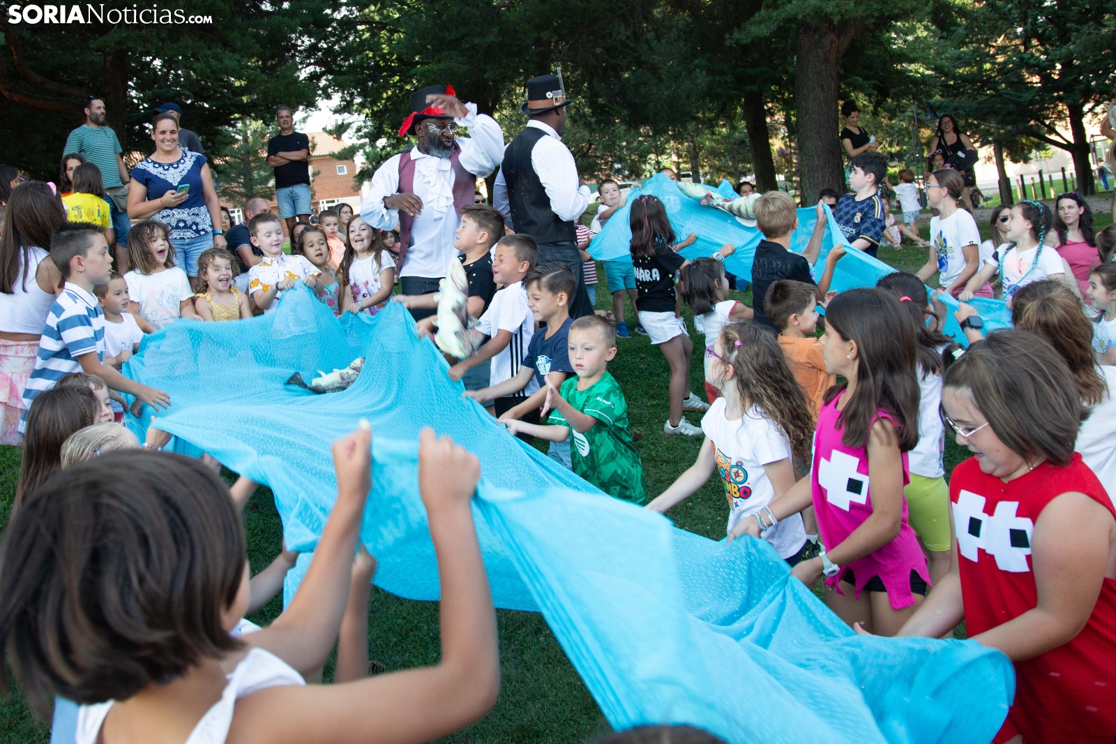 La urbanización de Golmayo vive y celebra los días más alegres del año y este viernes ha resultado una jornada redonda. Grupos de familias y amigos han aprovechado el inicio del fin de semana para disfrutar de las propuestas del Ayuntamiento. El pasacalles ha atrapado a los más pequeños y, tras hacer parada en las ferias y los bares de la localidad, todos han cargado energías con lo mejor de una parrillada popular que siempre es uno de los actos más multitudinarios. Panceta, chorizo o salchichas con el mejor sabor a ascuas. La verbena, después, para cierre a altas horas de la madrugada.
