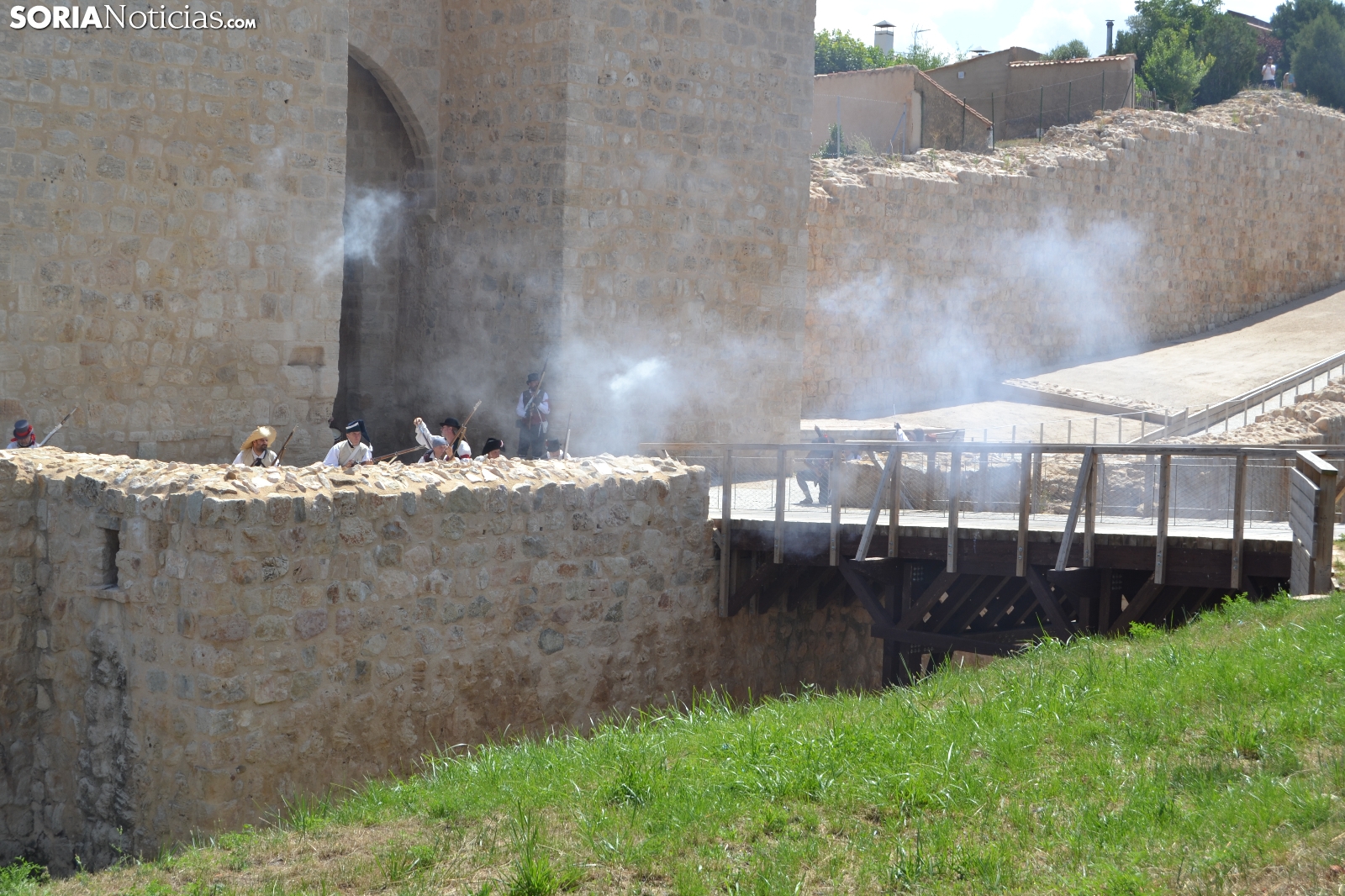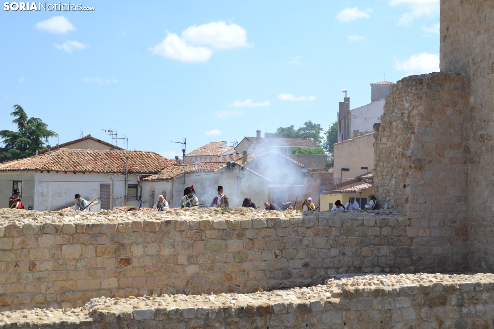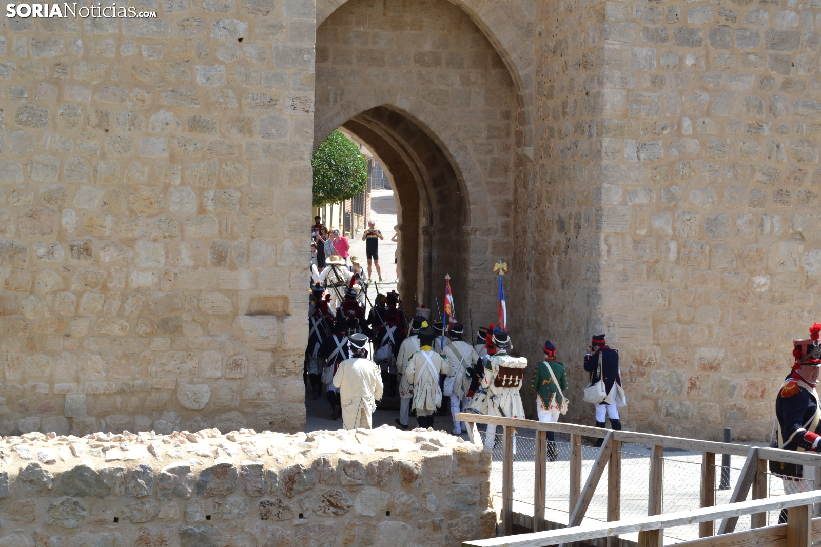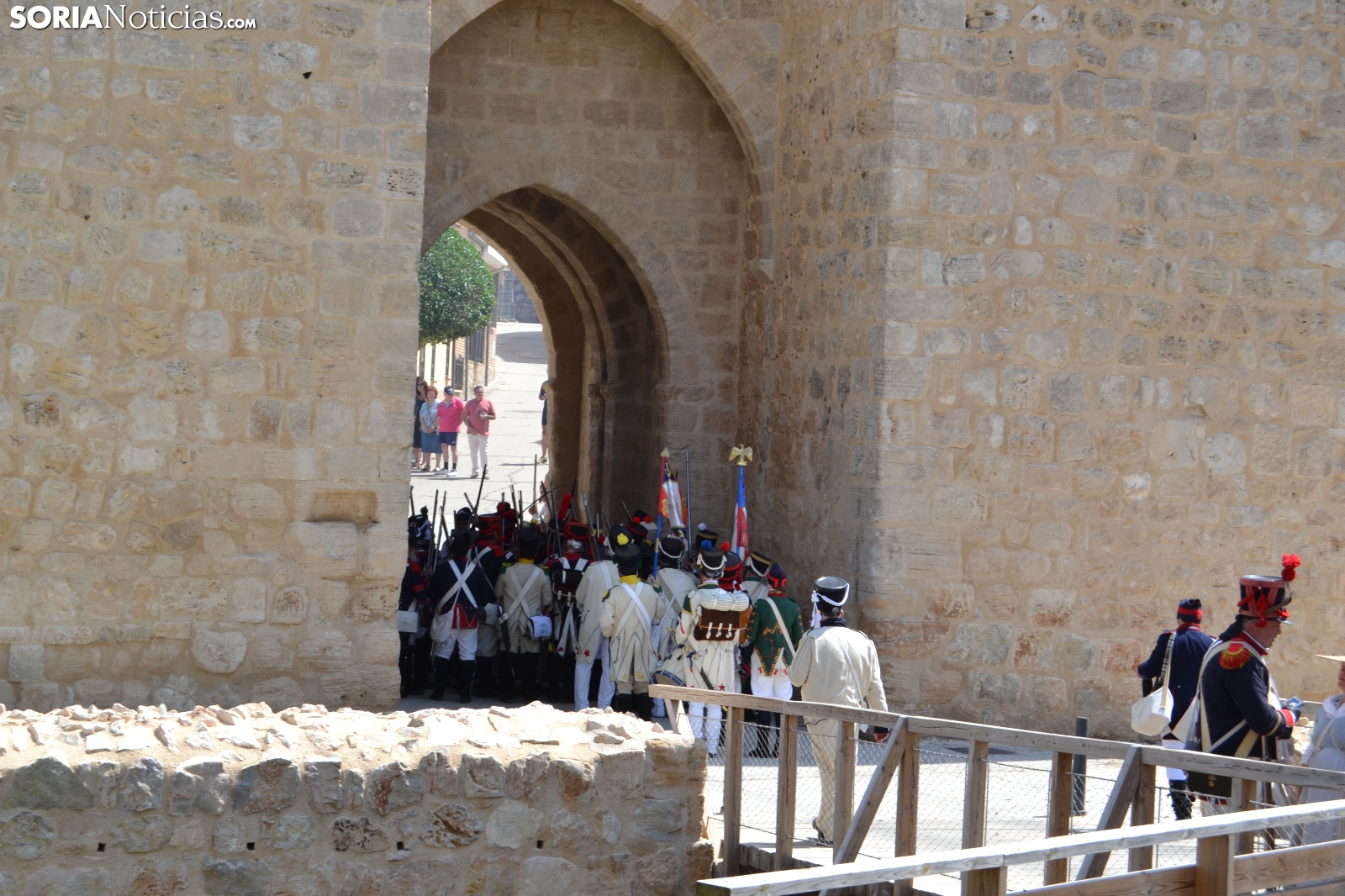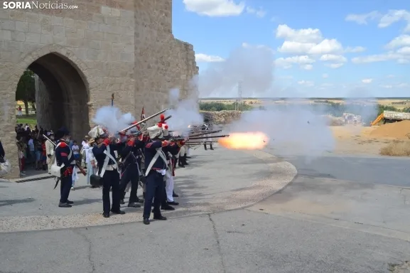 Más de 130 actores se han dado cita esta mañana en Almazán. La Villa adnamantina ha regresado a 1810, momento en el que se enfrentó al ejército francés. Durante la Guerra de la Independencia, el Primer Imperio Galo atacó a esta localidad soriana. Sin embargo, el pueblo soriano no se rindió sin luchar, llevando a cabo una resistencia heroica. Para recordar aquello con todo detalle, han celebrado varias batallas, con armas y cañones, en la antigua puerta del mercado y en la Plaza Mayor ante la atenta mirada de centenares de curiosos.