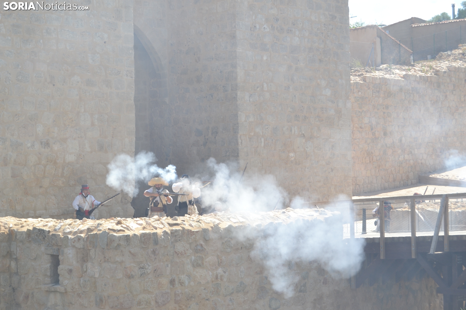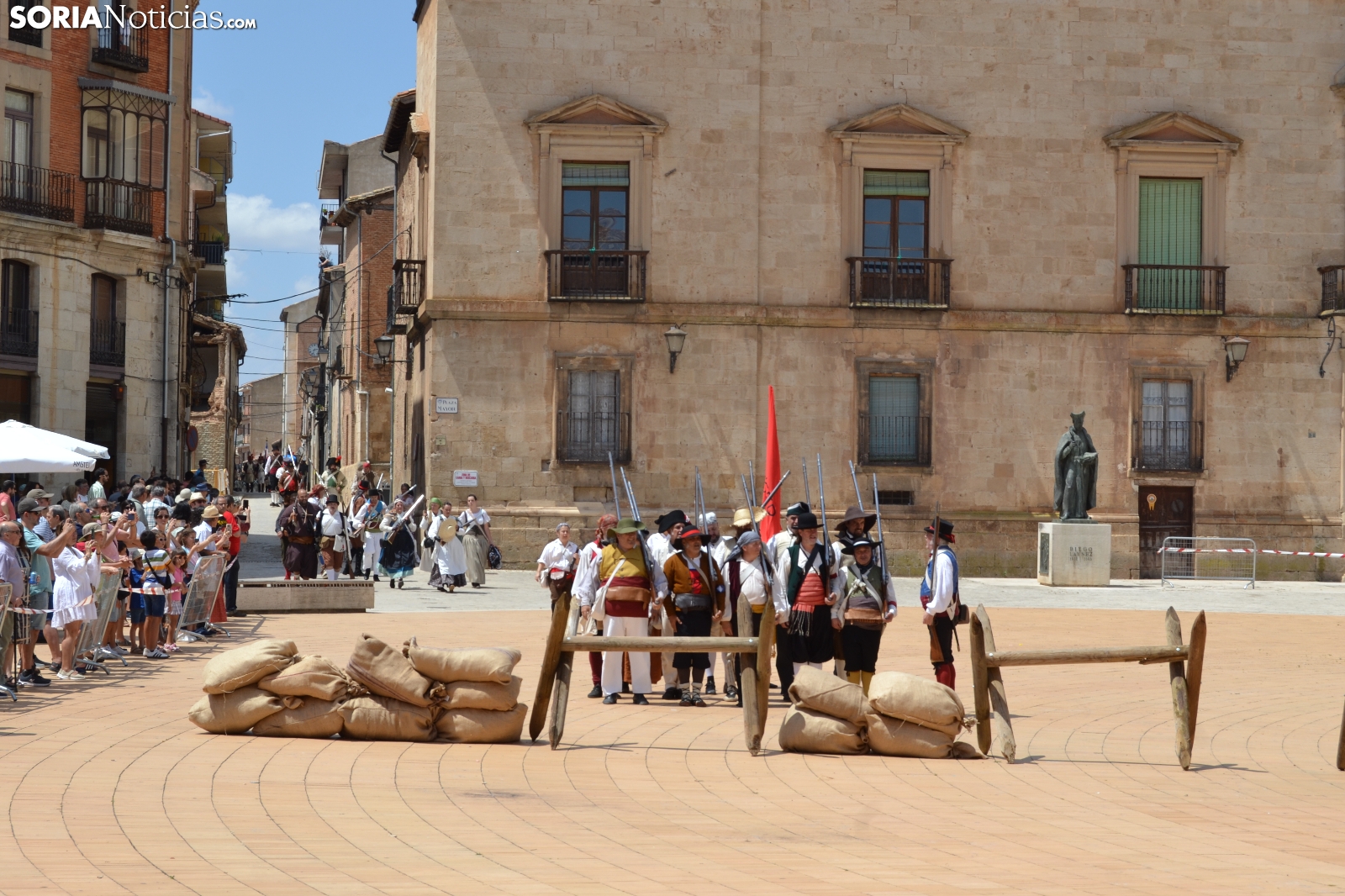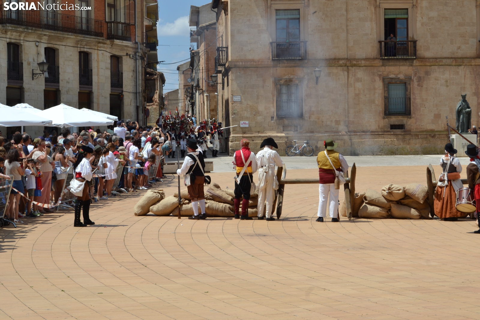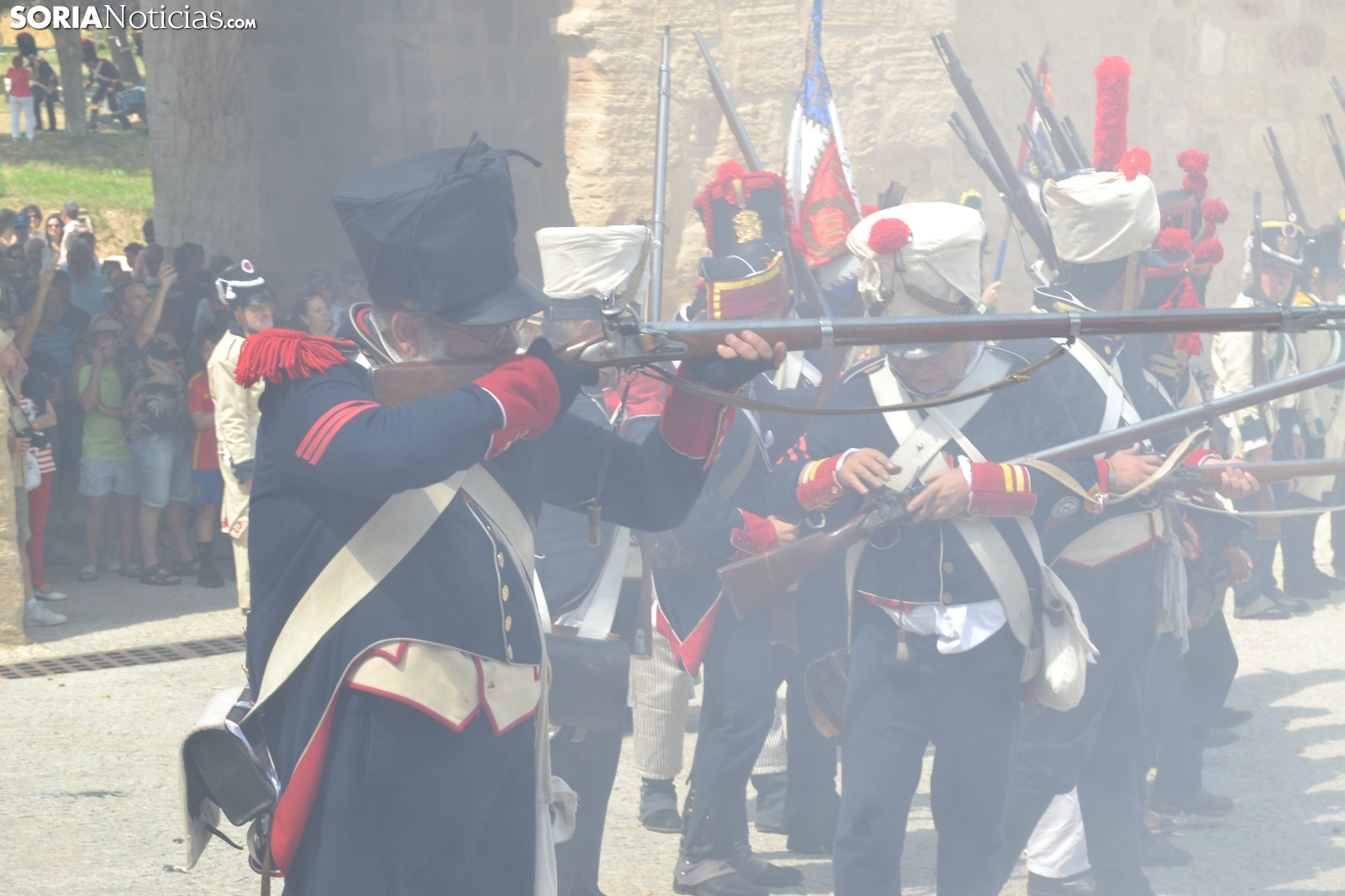 Más de 130 actores se han dado cita esta mañana en Almazán. La Villa adnamantina ha regresado a 1810, momento en el que se enfrentó al ejército francés. Durante la Guerra de la Independencia, el Primer Imperio Galo atacó a esta localidad soriana. Sin embargo, el pueblo soriano no se rindió sin luchar, llevando a cabo una resistencia heroica. Para recordar aquello con todo detalle, han celebrado varias batallas, con armas y cañones, en la antigua puerta del mercado y en la Plaza Mayor ante la atenta mirada de centenares de curiosos.