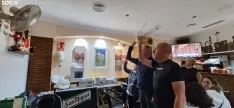 Este grupo de amigos se reúne desde hace 20 años para ver los encierros en un local que cuenta con un altar a San Fermín.