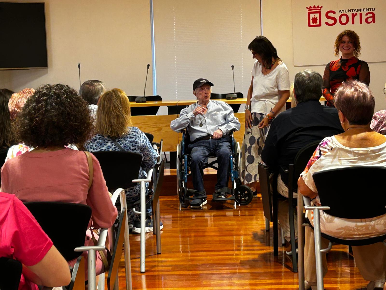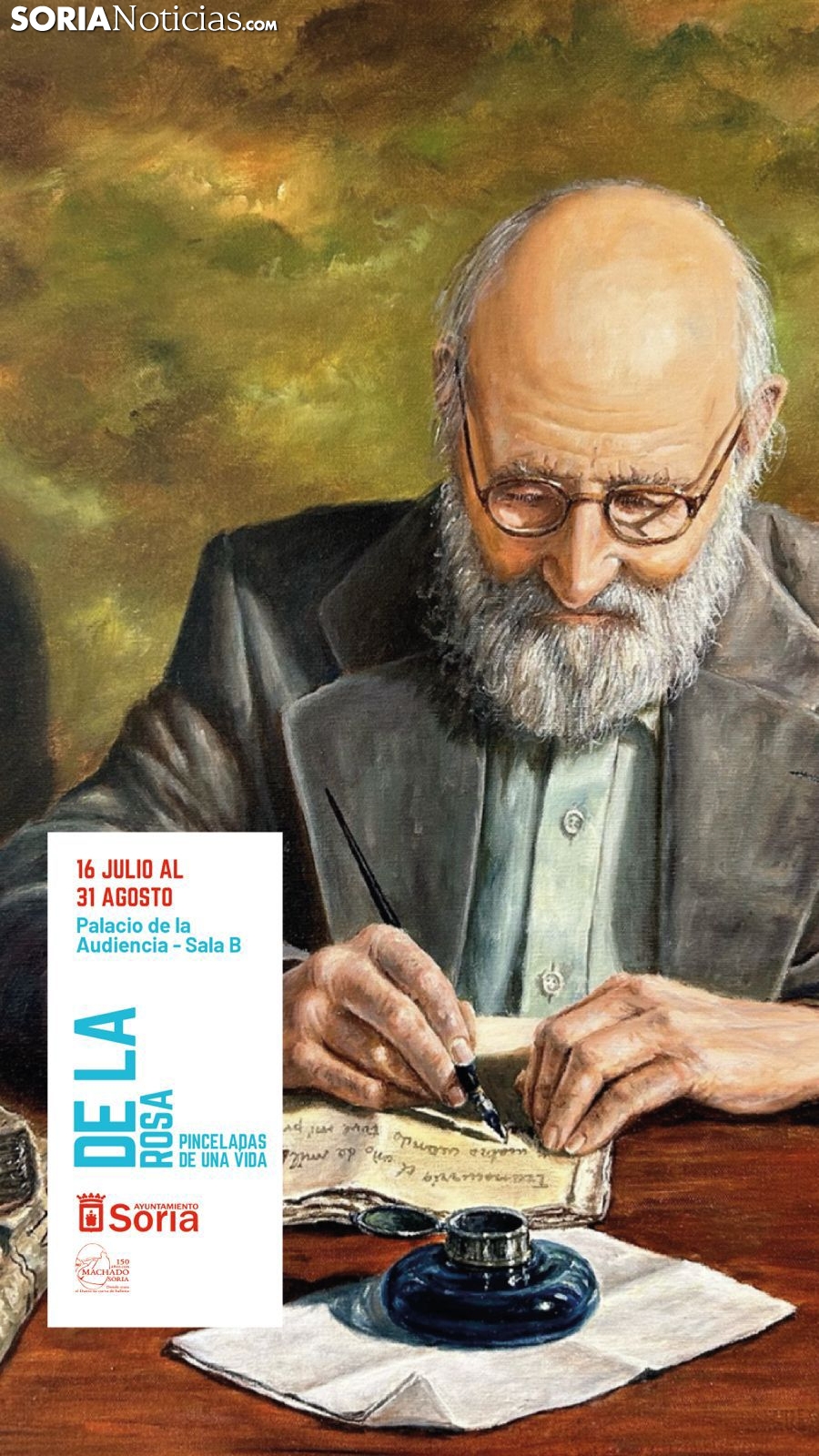 Se trata de Rafael García De La Rosa a quien su hija y el Ayuntamiento de Soria han preparado una detallada exposición en el Palacio de la Audiencia. La muestra, bajo el título «De La Rosa, pinceladas de una vida», ha sido inaugurada esta mañana en presencia del autor y puede verse hasta el próximo 31 de agosto en la sala B de martes a domingos de 12.00 h a 14.00 h y de 19.00 h a 21.00 h.