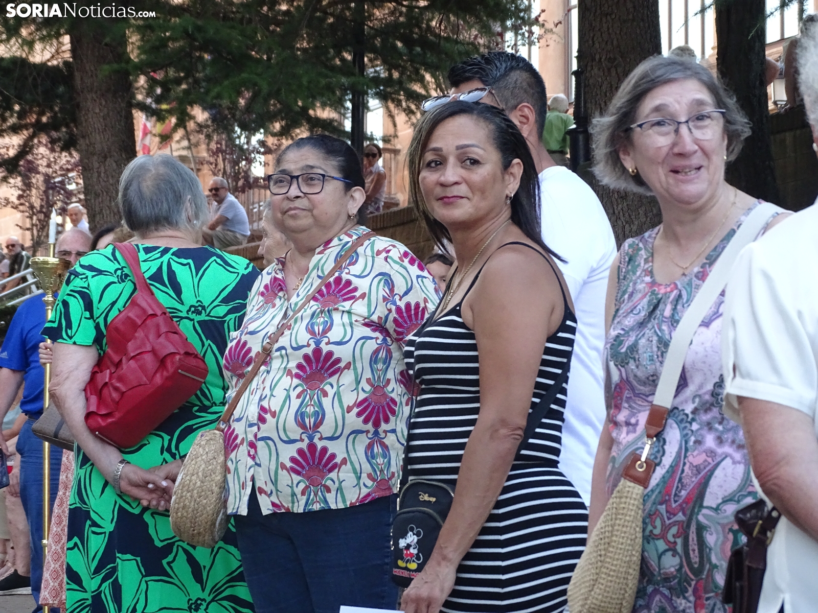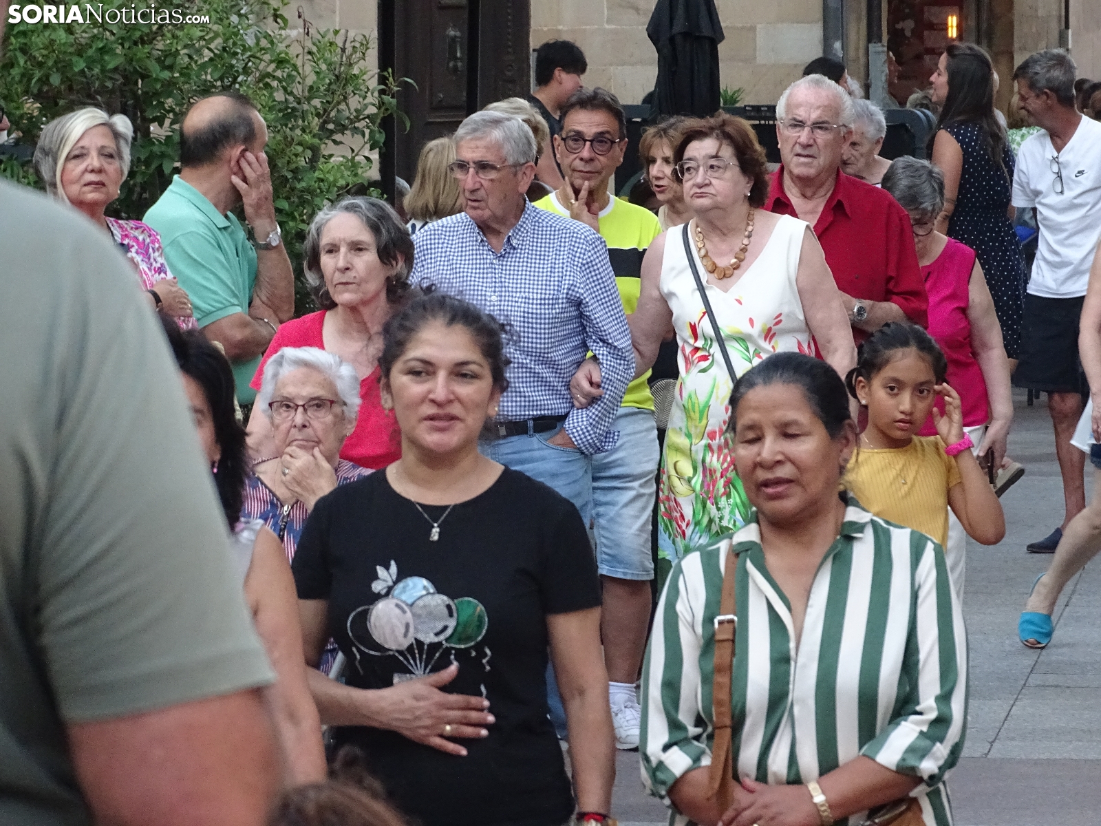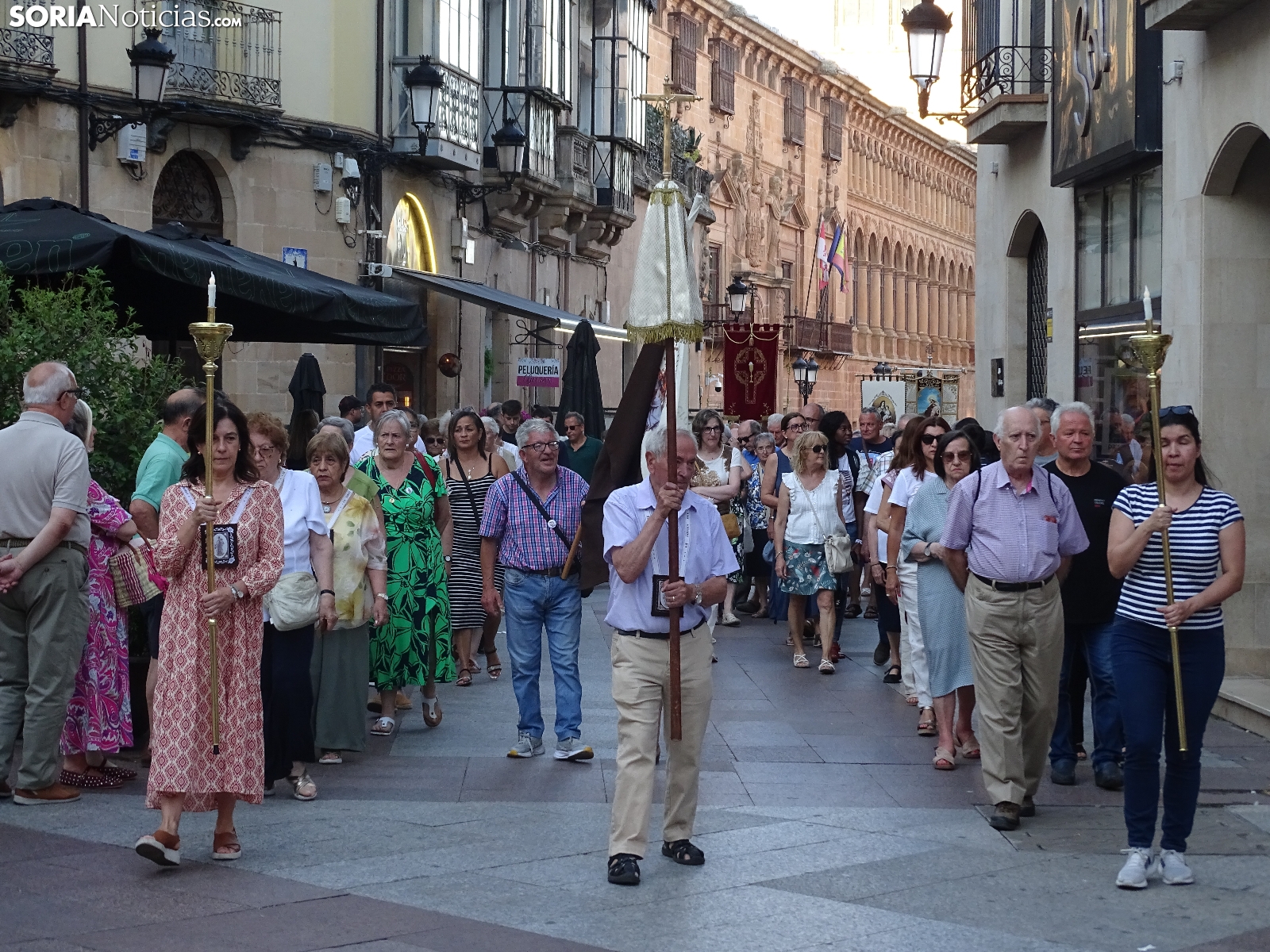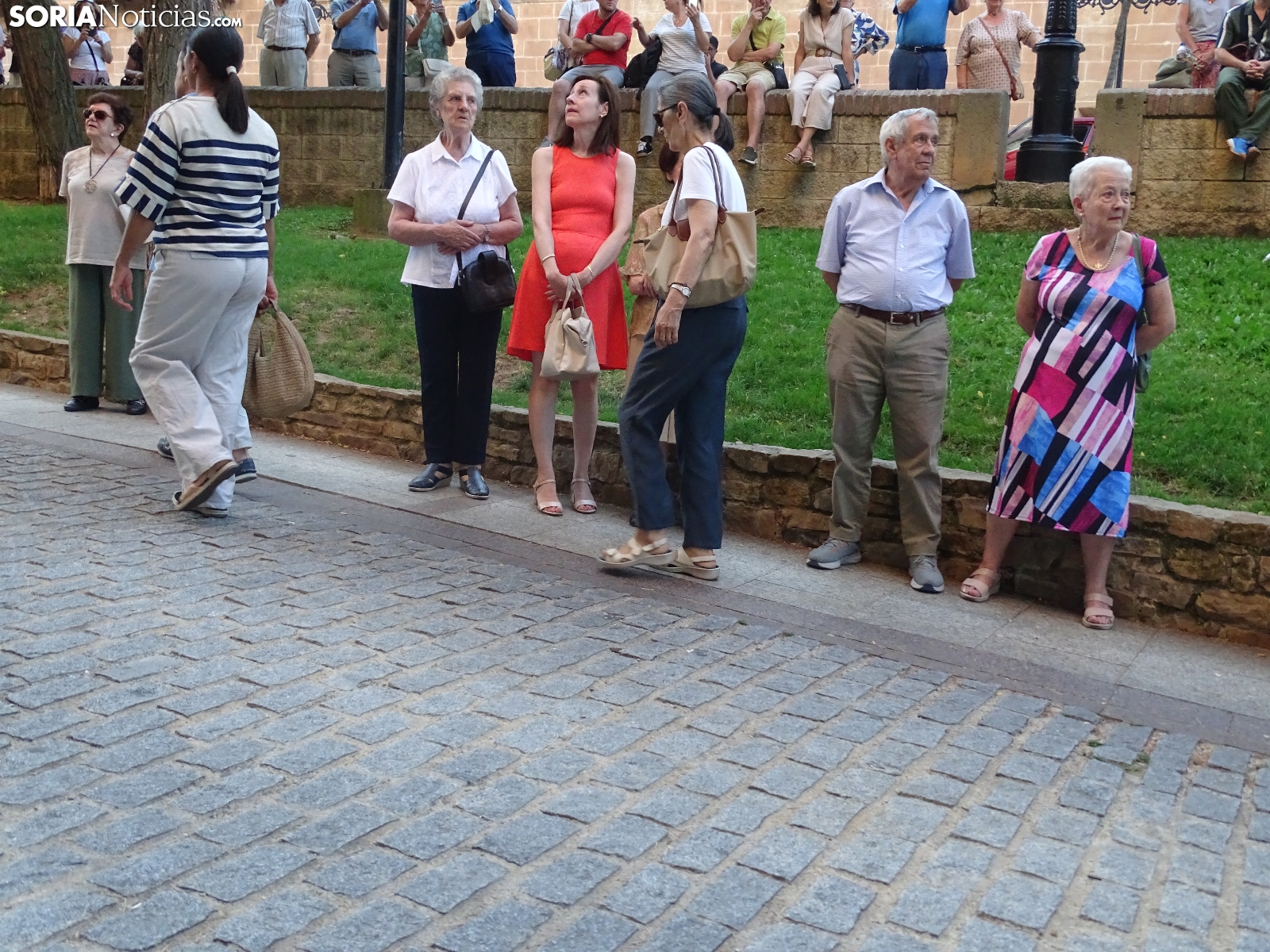 Después de la eucaristía vespertina de este miércoles, era iniciada la procesión en honor a la Virgen del Carmen en Soria, con la acostumbrada afluencia de fieles, quienes han mostrado su devoción hacia esta advocación mariana, por el centro de la ciudad. La imagen ha salido del templo de Los Carmelitas en torno a las 20:30 y durante el recorrido han sido entonadas alabanzas y oraciones hacia la Madre de Dios. Devoción para una tradición que se repite cada 16 de julio en la ciudad, que ya era celebrada por la mañana durante el Rosario de la Aurora, dejando constancia del respeto y del cariño de los sorianos a este acto de manifestación de fe, hoy celebrado en una tarde calurosa.