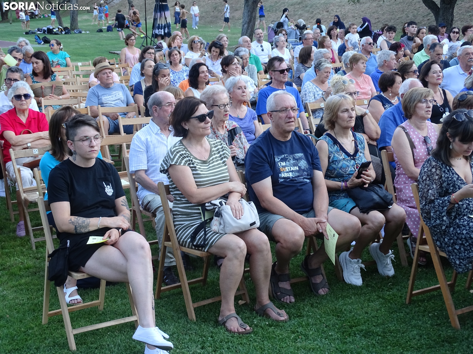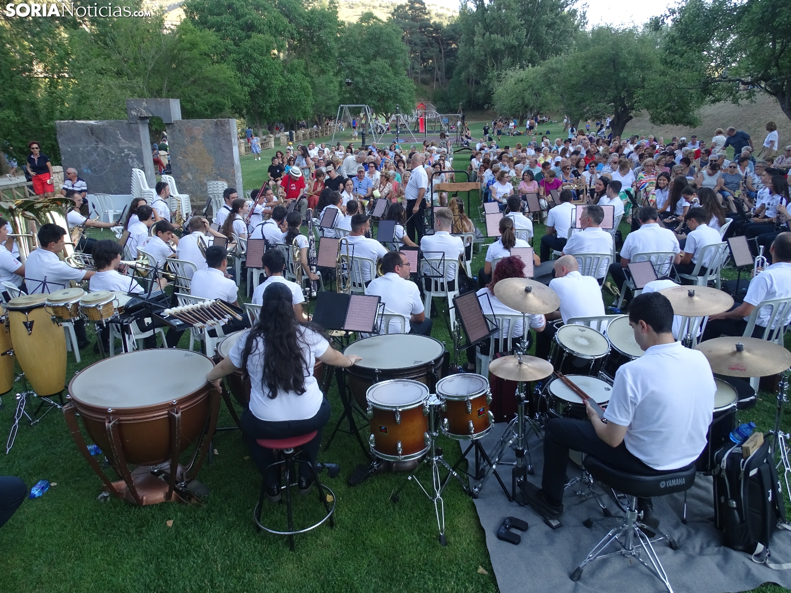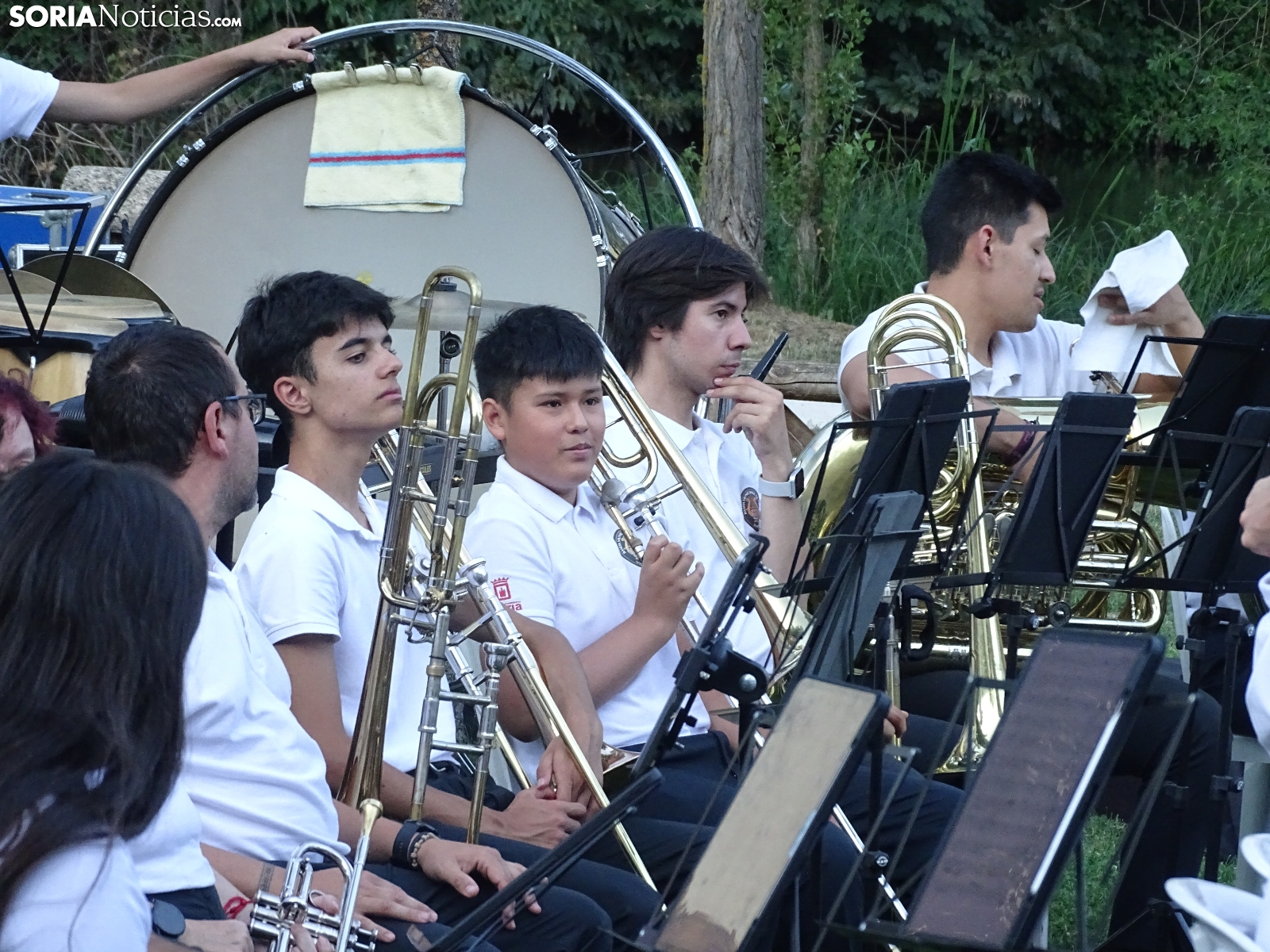 Este miércoles arrancaba el ciclo de conciertos de verano que la Banda Municipal de Música ofrecerá cada siete días por distintos puntos de la capital soriana y también en su barrio de Oteruelos (el 2 de agosto). La agrupación que dirige José Manuel Aceña se hacía presente en el paseo de San Prudencio, junto al Duero para brindar la primera de sus ocho actuaciones hasta el 10 de septiembre. Tarde calurosa, pese a la frescura que ofrecen las orillas del río, sin que ello haya sido obstáculo para una nutrida audiencia en este estreno estival que ha brindado un repertorio variado, con temas de autores nacionales y foráneos. Así, han sido interpretadas composiciones de pasodobles como 'Paco Molero', de Carmelo Alonso; zarzuela con la pieza 'La Dolorosa' (José Serrano); y otras más actuales de los autores Viz Mizzy y Chris Morgan. Cerraba la actuación el tema 'Vivir así es morir de amor', para nostálgicos, de Camilo Sesto.