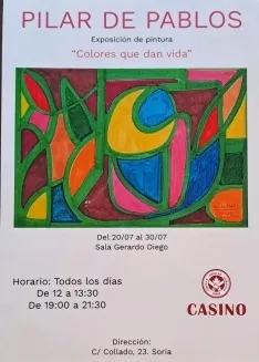 La artista Pilar de Pablos presenta su exposición de pintura 'Colores que dan vida' en el salón Gerardo Diego del Círculo Amistad Numancia. La muestra podrá visitarse en Soria desde este domingo, 20 de julio, hasta el próximo día 30 del mismo mes, en horario de mañana y tarde.
