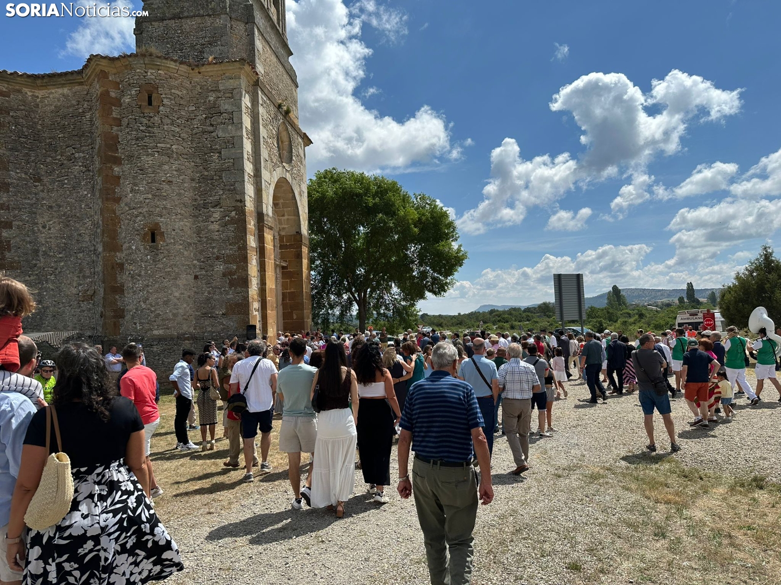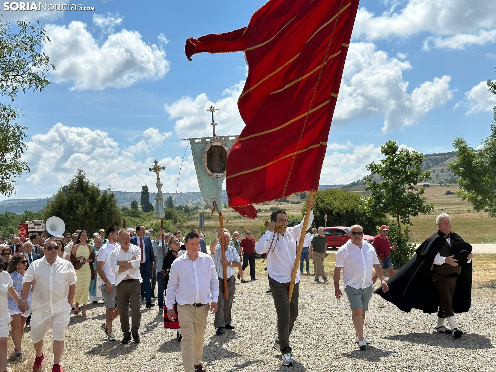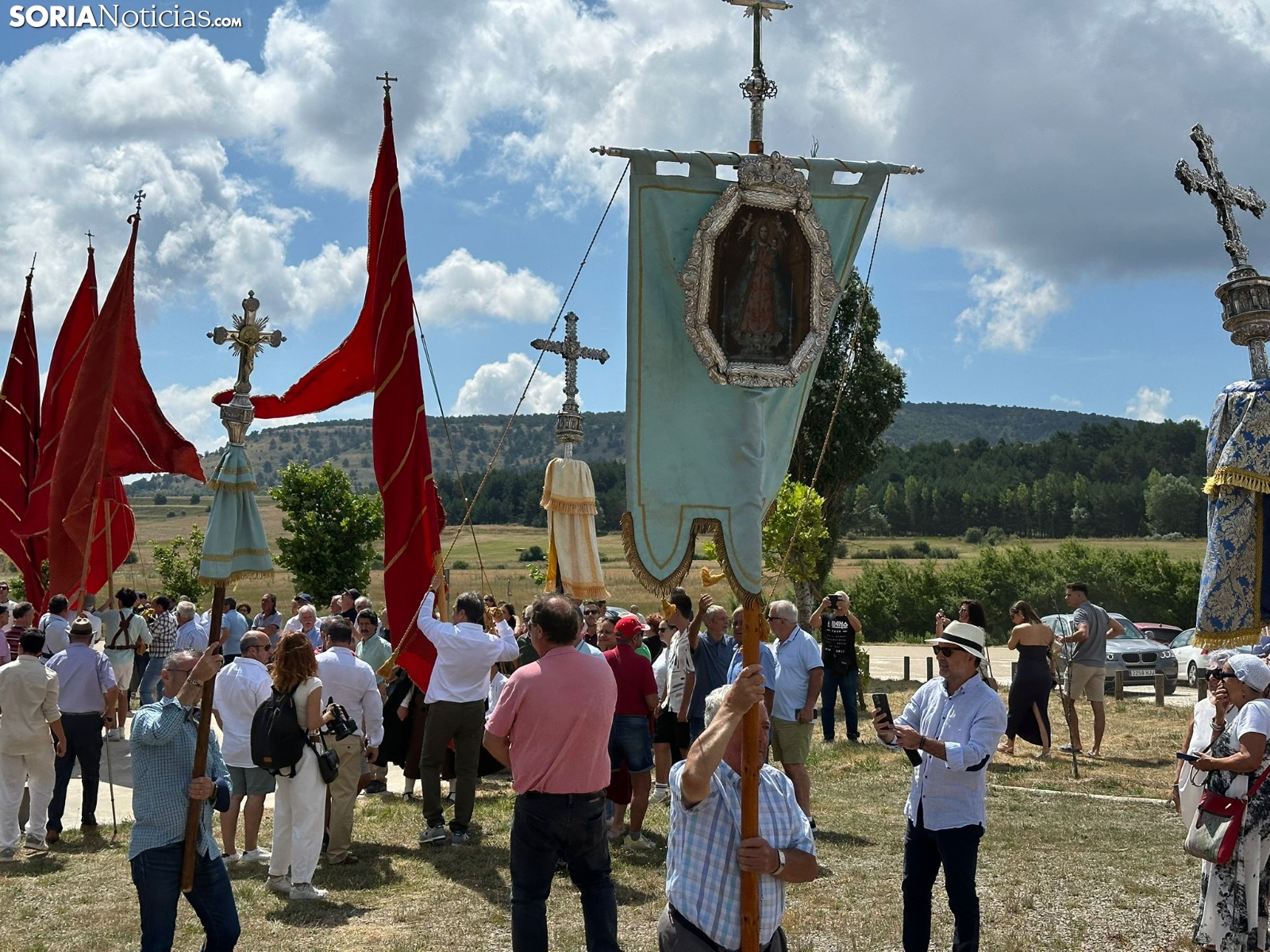 Posteriormente, ha tenido lugar la procesión alrededor del templo, un momento cargado de emoción y singularidad. La imagen de la Virgen ha sido portada a hombros por las mujeres que se adjudicaron este honor en las tradicionales subastas de los banzos. La celebración culminó con una ofrenda floral y una comida de hermandad en las campas, consolidando una de las romerías con más arraigo y significado de la provincia de Soria.