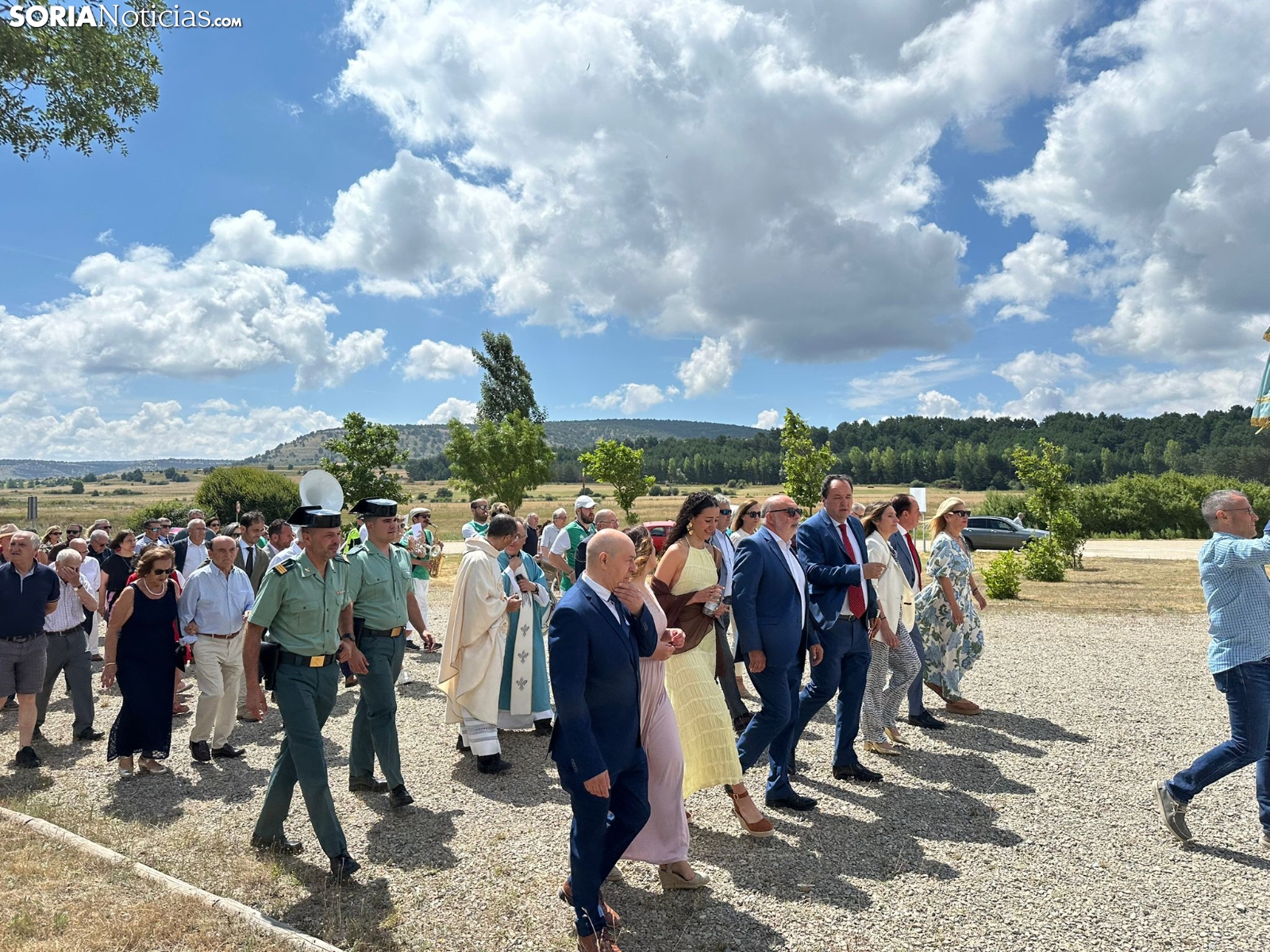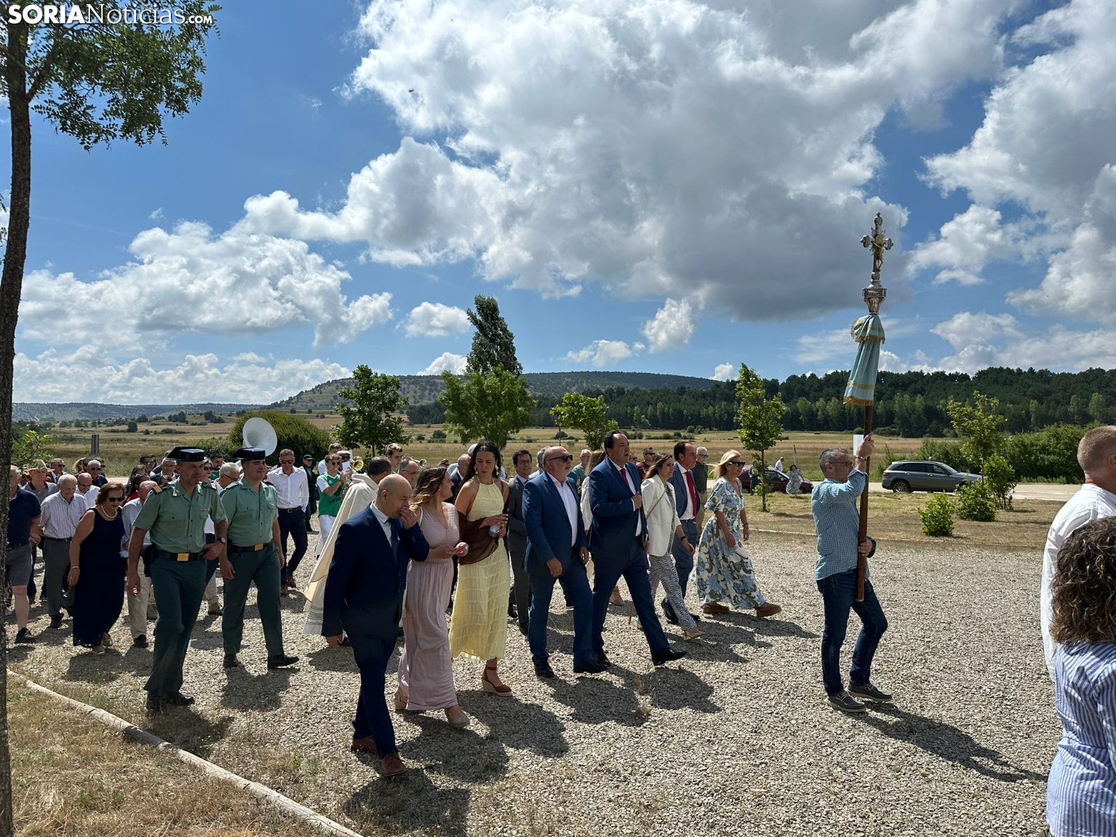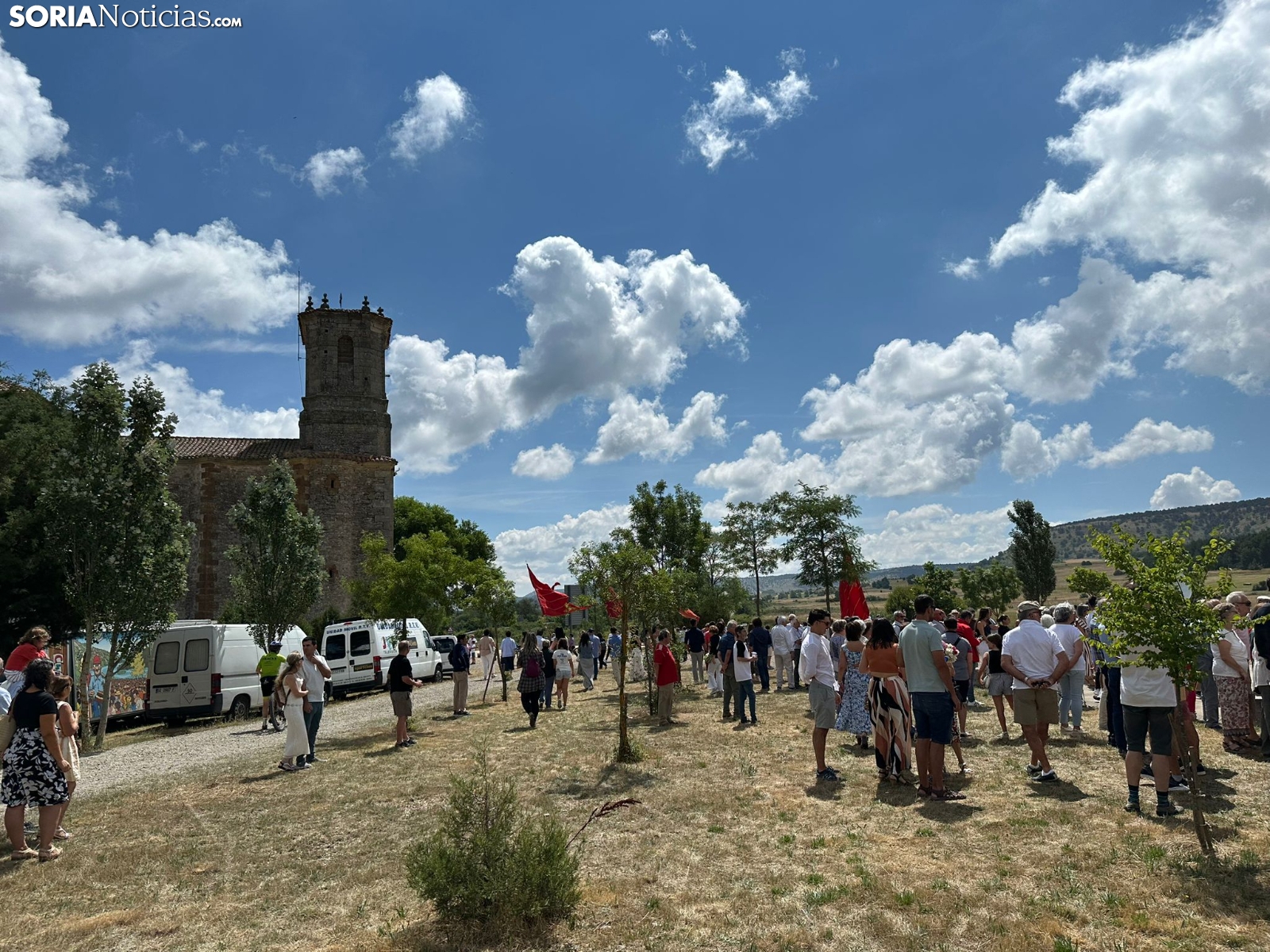 Posteriormente, ha tenido lugar la procesión alrededor del templo, un momento cargado de emoción y singularidad. La imagen de la Virgen ha sido portada a hombros por las mujeres que se adjudicaron este honor en las tradicionales subastas de los banzos. La celebración culminó con una ofrenda floral y una comida de hermandad en las campas, consolidando una de las romerías con más arraigo y significado de la provincia de Soria.
