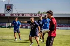 El director deportivo del Numancia también ha estado presente en la Ciudad Deportiva. Tras una breve conversación con el entrenador al comienzo del entrenamiento, el abejaruco no ha parado de hablar por teléfono. Después de cerrar siete fichajes, trabaja en firmar a otros ocho futbolistas para completar una plantilla que pueda aspirar al primer puesto del grupo para subir de forma directa a Primera RFEF.