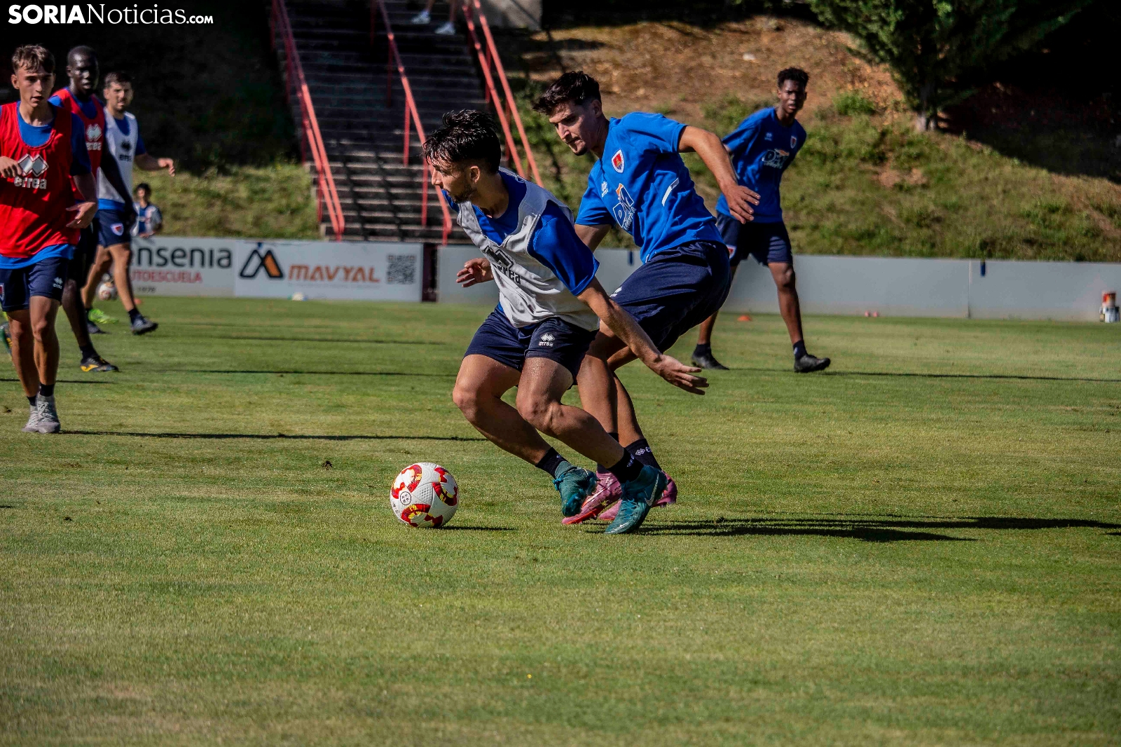 Abel Segovia ha dirigido esta mañana su primera sesión al frente del Numancia. Con 23 jugadores (cinco del filial, uno del juvenil y uno de la academia), ha comenzado una pretemporada en la que los rojillos intentarán ponerse a punto para llegar en óptimas condiciones a una liga en la que el único objetivo es el ascenso. La intensidad y el físico han sido las claves de una sesión en la que ha estado presente el director deportivo, Álex Huerta.