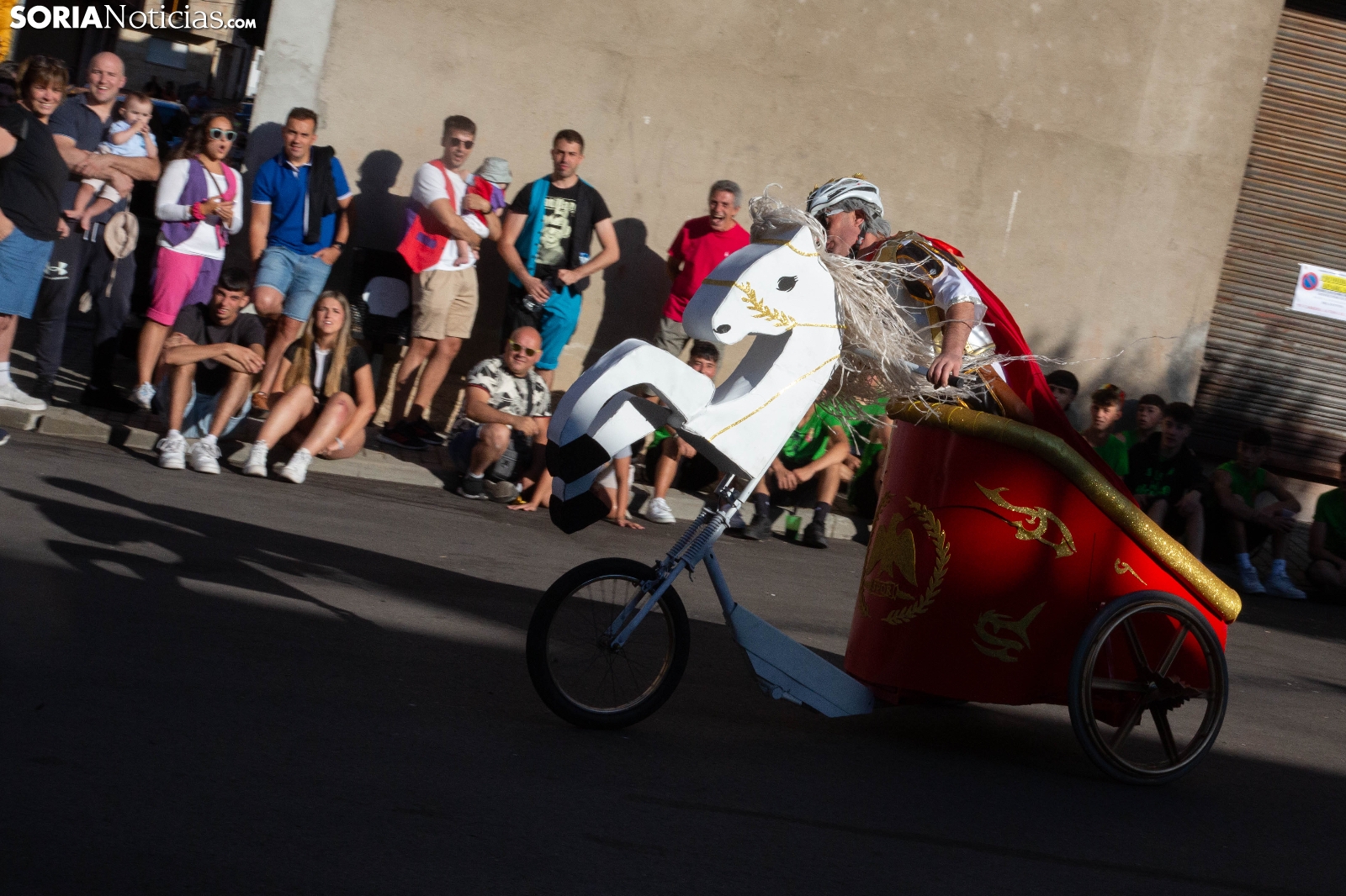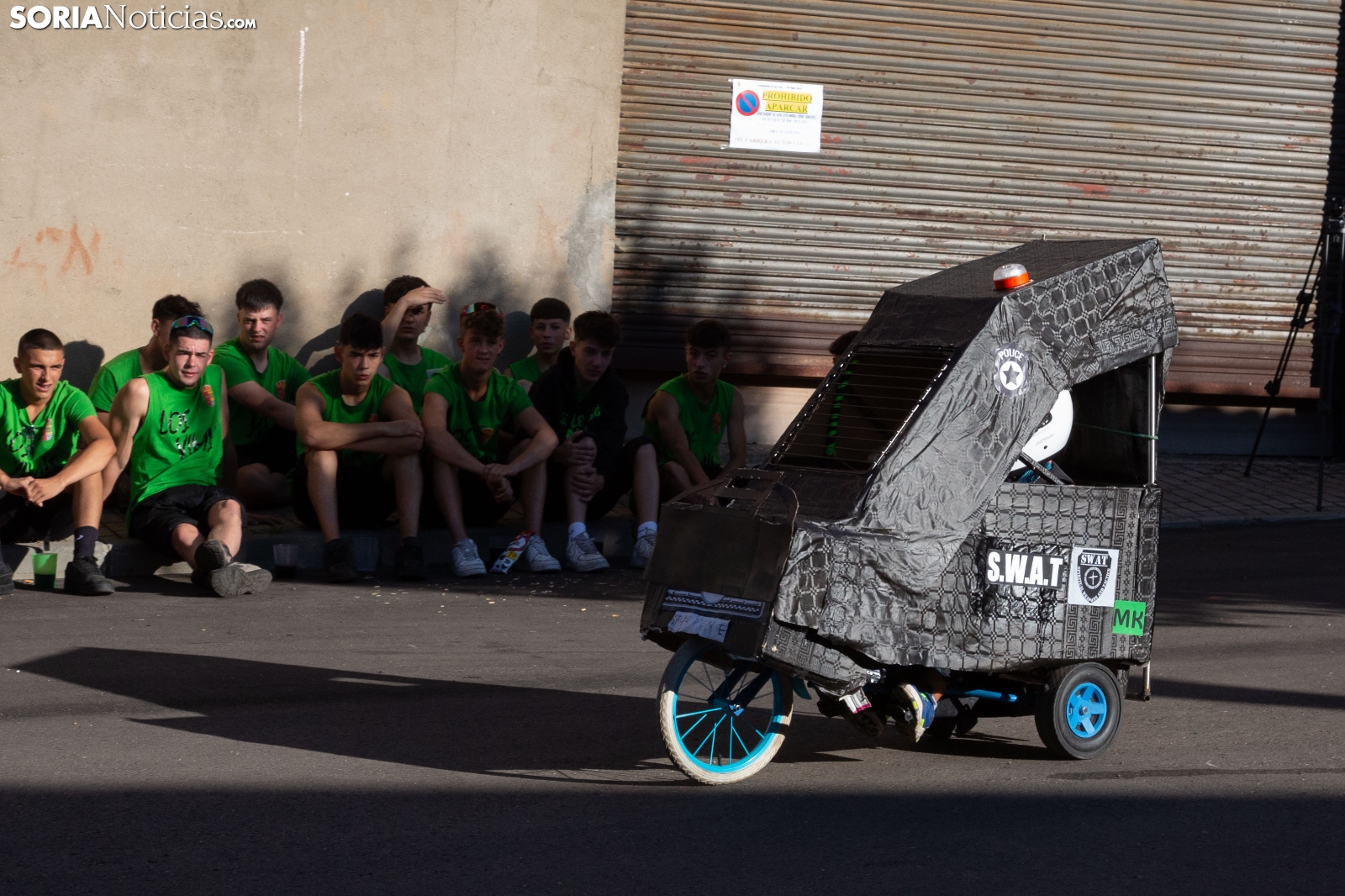 La III Carrera de Autos Locos de San Leonardo de Yagüe, celebrada hoy jueves 23 de julio durante las fiestas de Santa María Magdalena, ha sido un éxito de participación y público. El evento, organizado por el Ayuntamiento, ha resaltado la originalidad y el ingenio de los vehículos caseros y sin motor. Para participar se exigían requisitos claros de seguridad, como el uso obligatorio de casco, y se ha incluido una categoría especial para prototipos de velocidad que no competían por los premios generales. Una cita de humor con el desenfado, la imaginación y el espíritu de aventura.