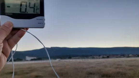 En su mensaje remitía esta mañana la imagen de su termómetro digital que mostraba la nunca mejor dicha friolera cifra de -0,4 ºC, más propia del invierno que de estos días.