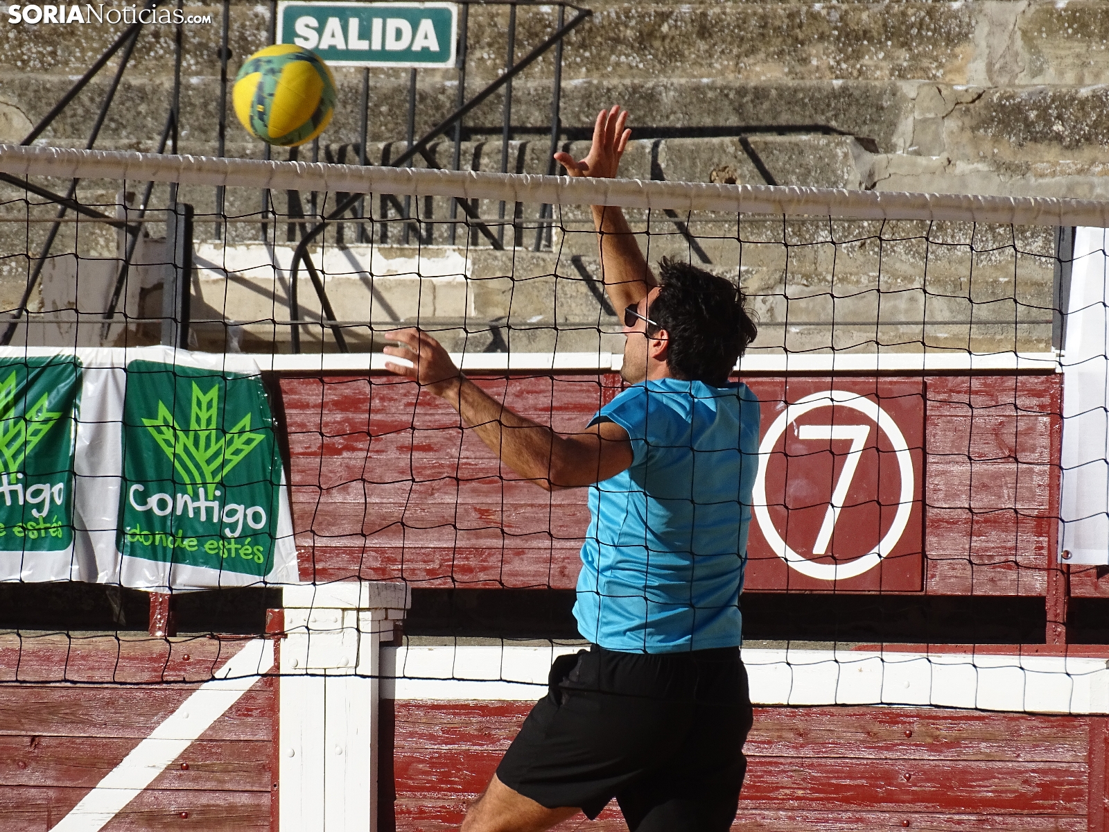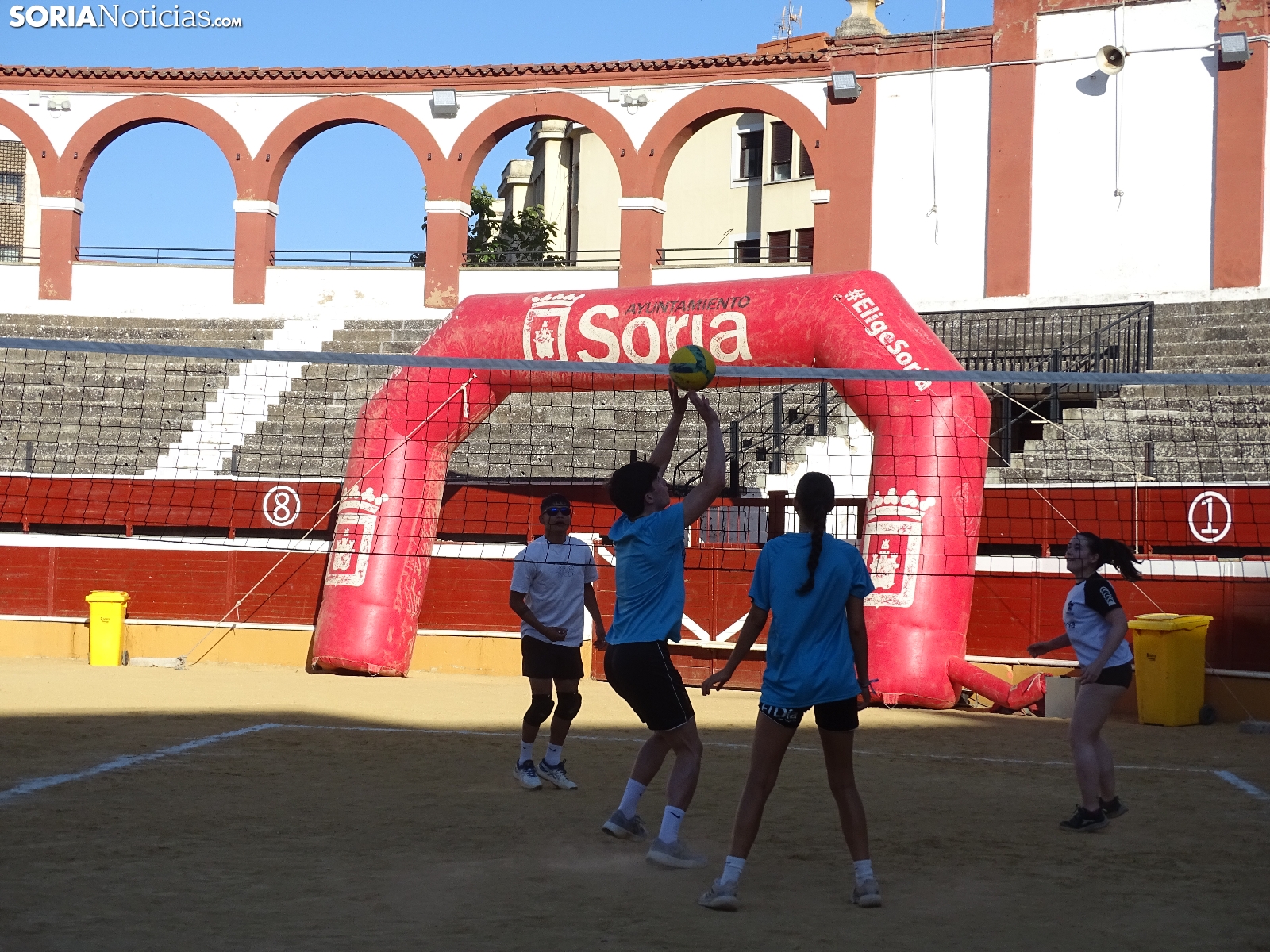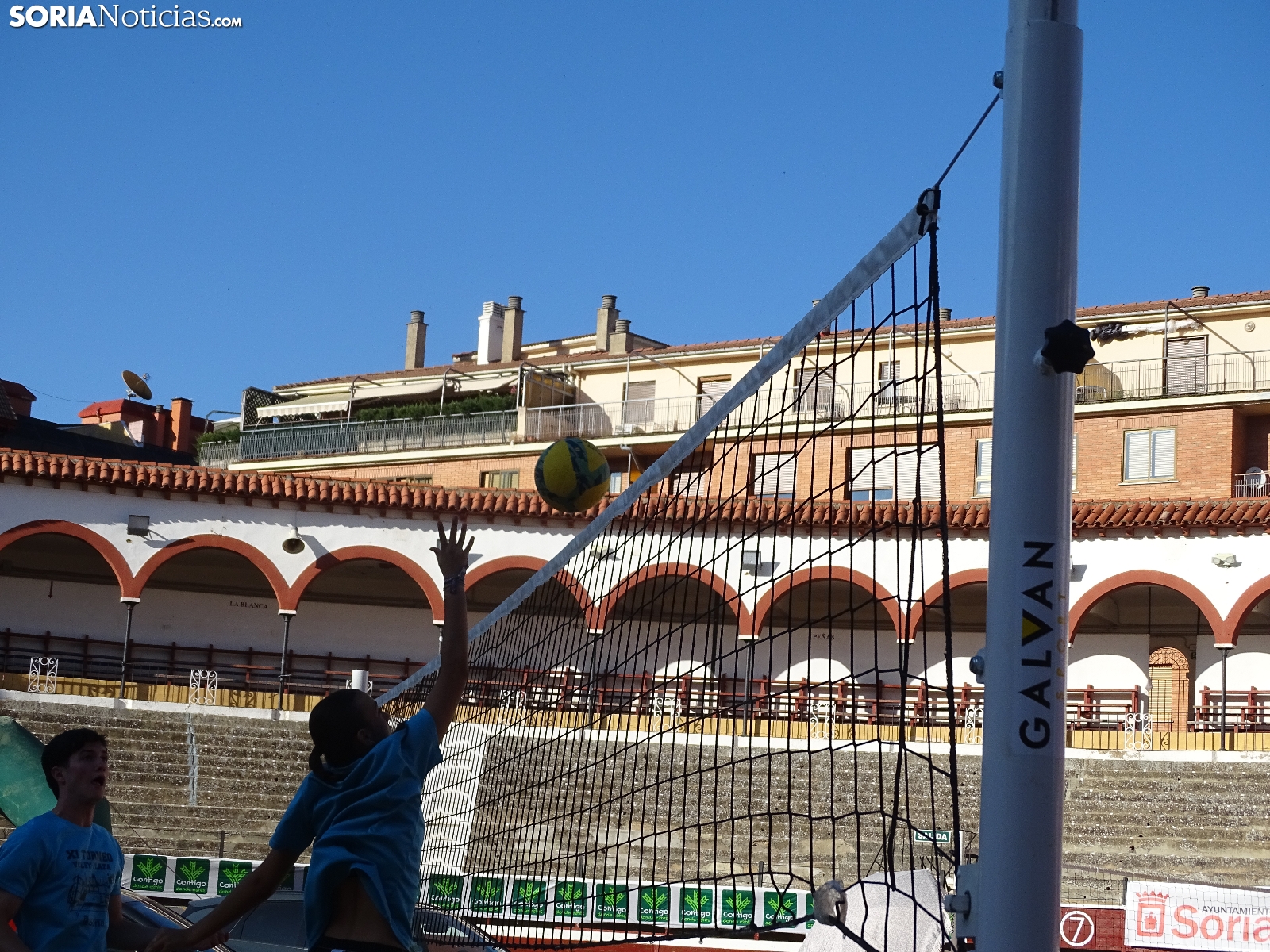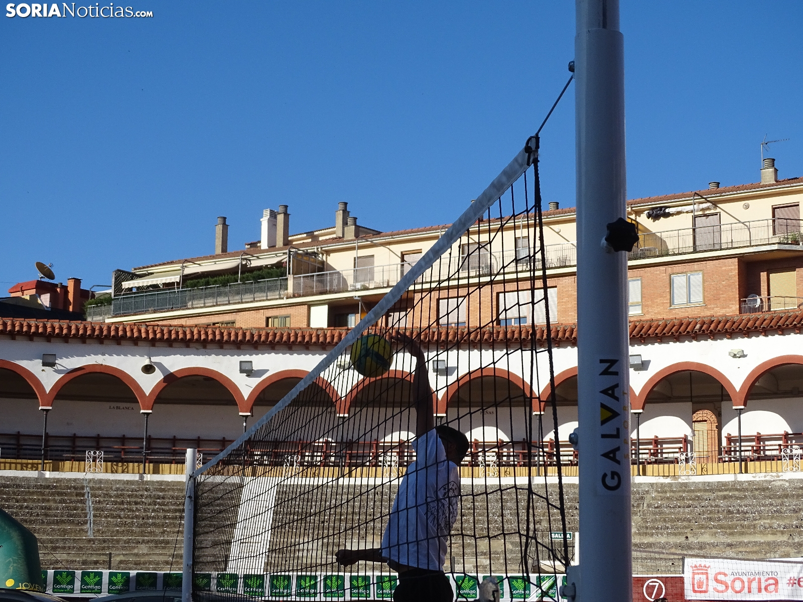 Este fin de semana ha arrancado una nueva edición, la undécima del torneo Voley Plaza en la capital. Durante la tarde de ayer sábado fue disputado uno de los partidos para que este domingo, también por la tarde, se juegue la primera tanda en las tres pistas habilitadas en el albero de la plaza de toros. Hasta el 3 de agosto la competición será disputada en horario de mañana, tarde y noche con diferentes variantes, ya que, más allá de lo competitivo, han sido establecidos partidos mixtos y también por edades.
