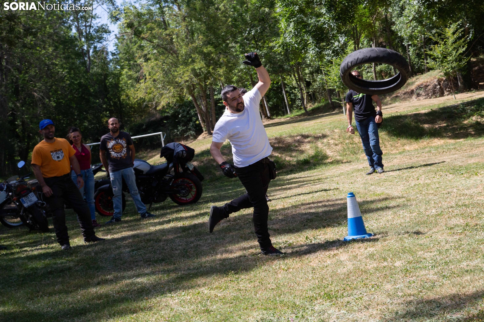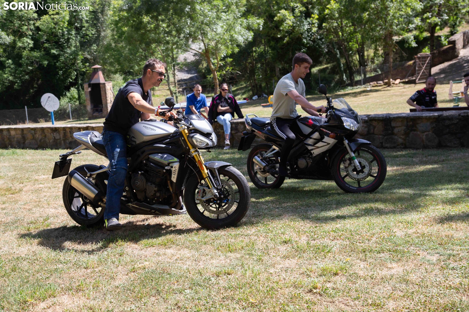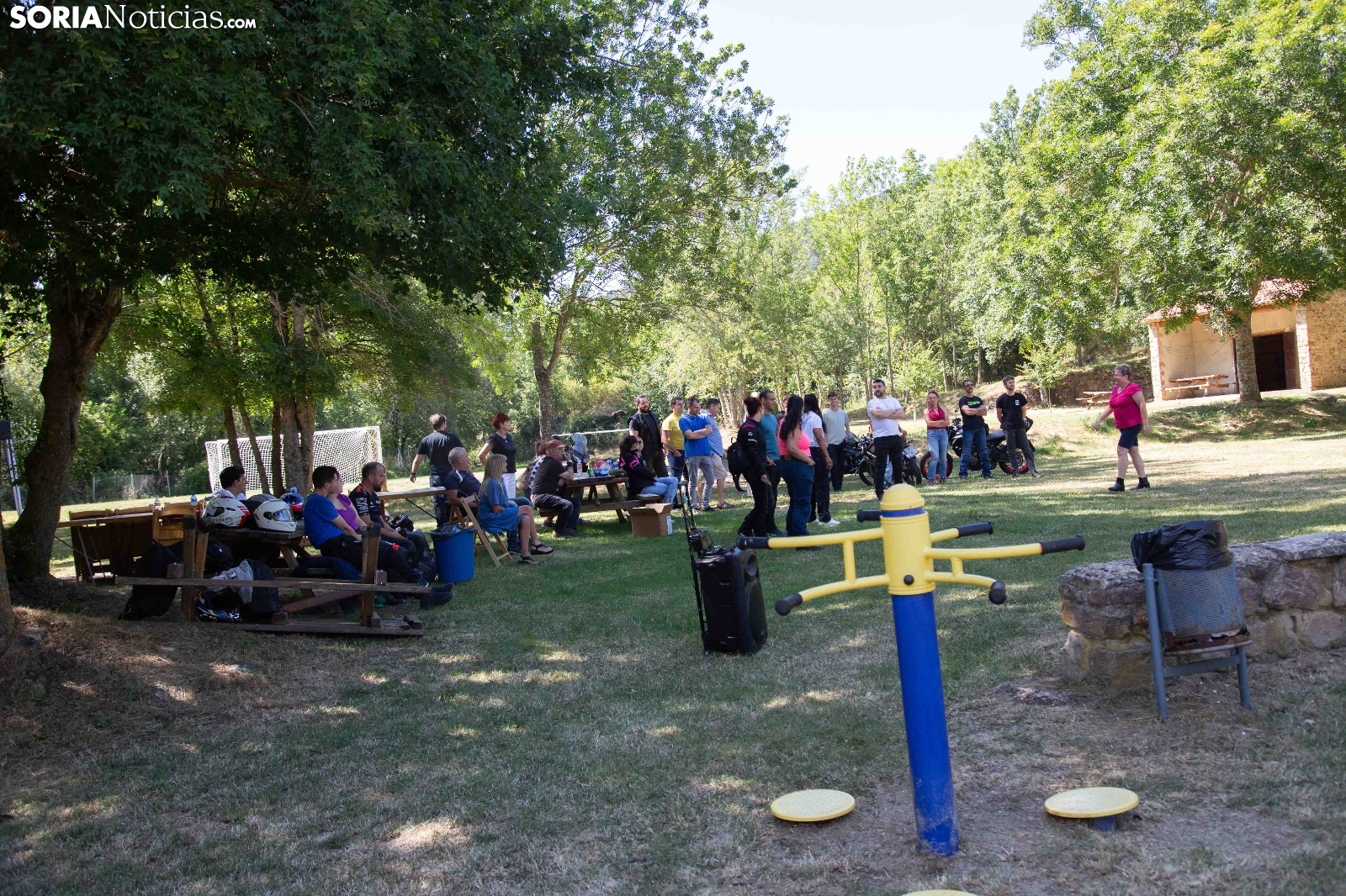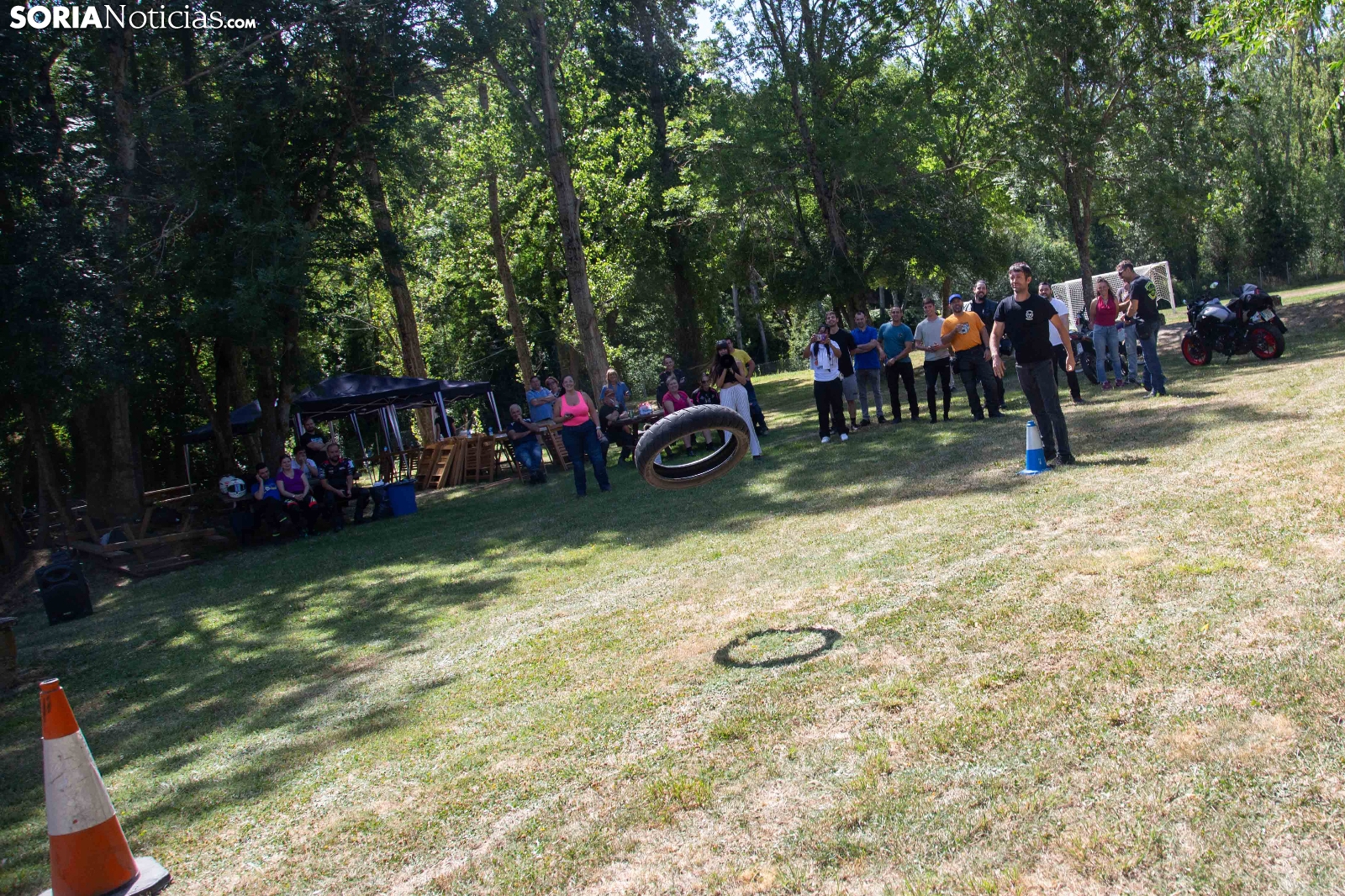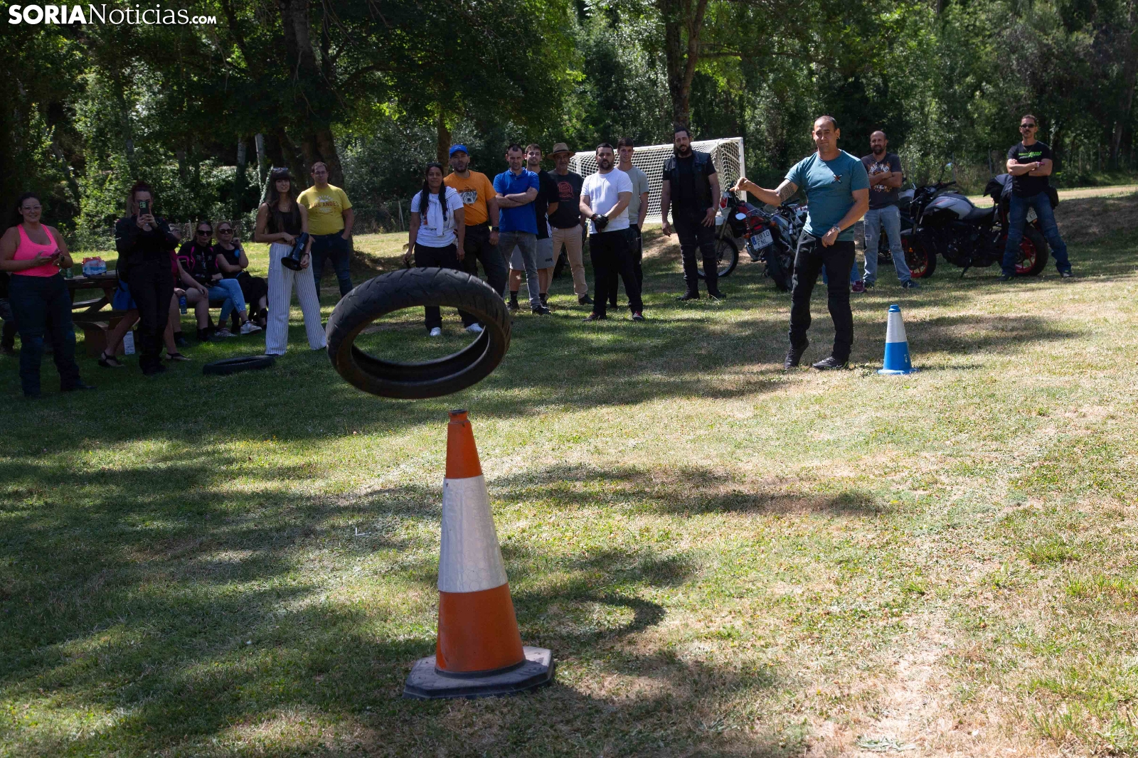 Santa Cruz de Yanguas acogía hoy, domingo 27 de julio, un encuentro motociclista en el que han tomado parte decenas de participantes. La jornada se iniciaba en la localidad riojana de Villamediana para después encarar el trayecto hacia Tierras Altas, en la provincia de Soria, pasando por Enciso. Santa Cruz de Yanguas ha sido la localidad de destino, donde los viajeros han disfrutado de una comida para después celebrar diversos juegos sobre las motocicletas y a pie, donde la diversión y la pericia han hecho las delicias de los participantes y de los vecinos de la localidad.
