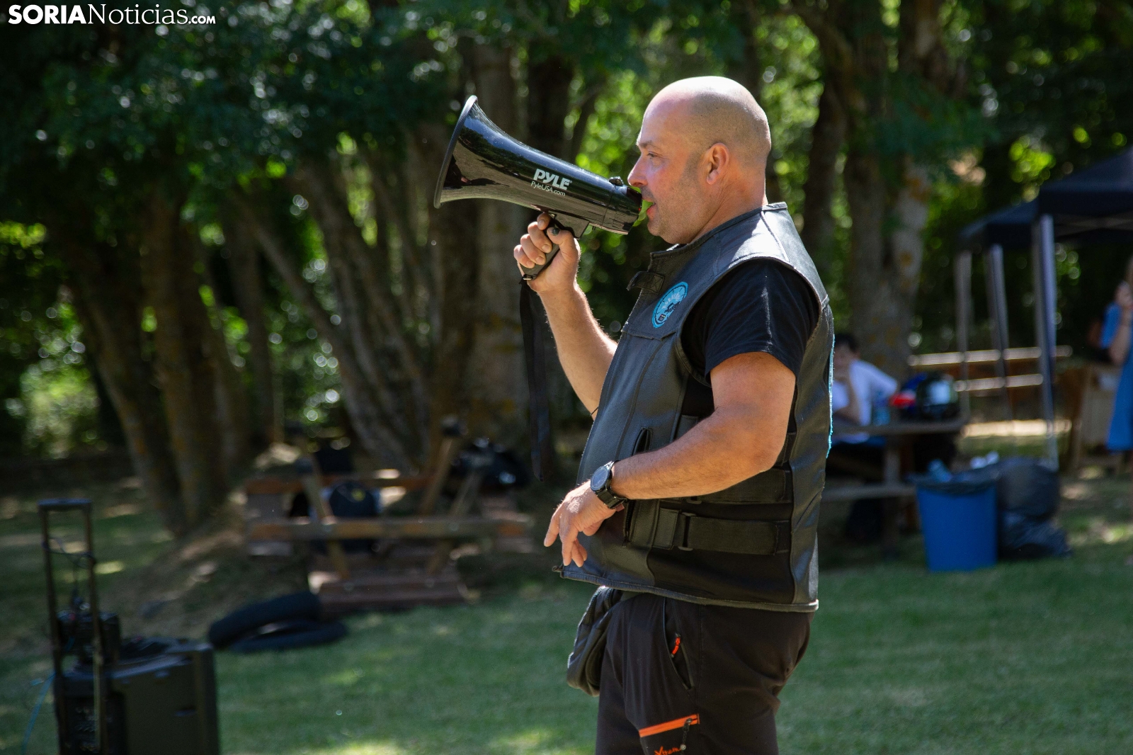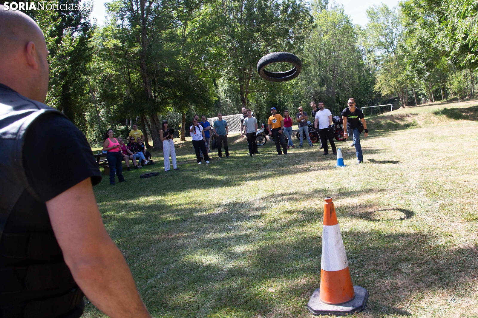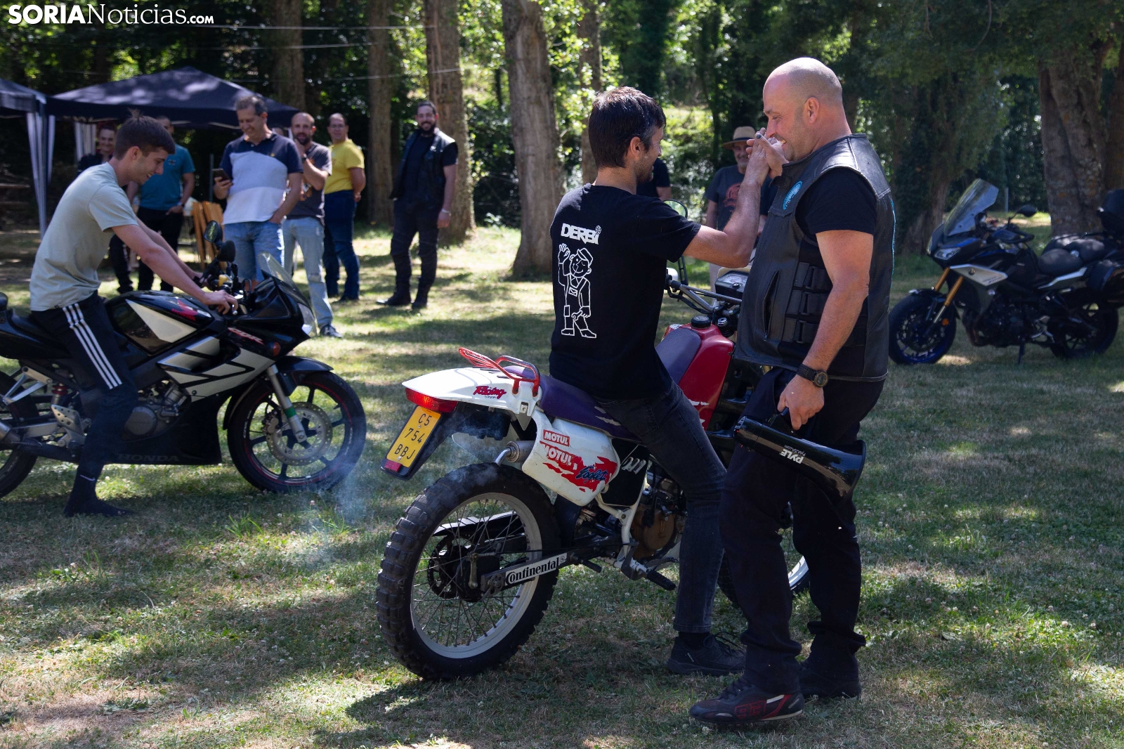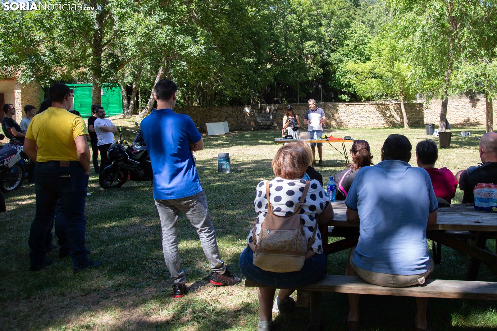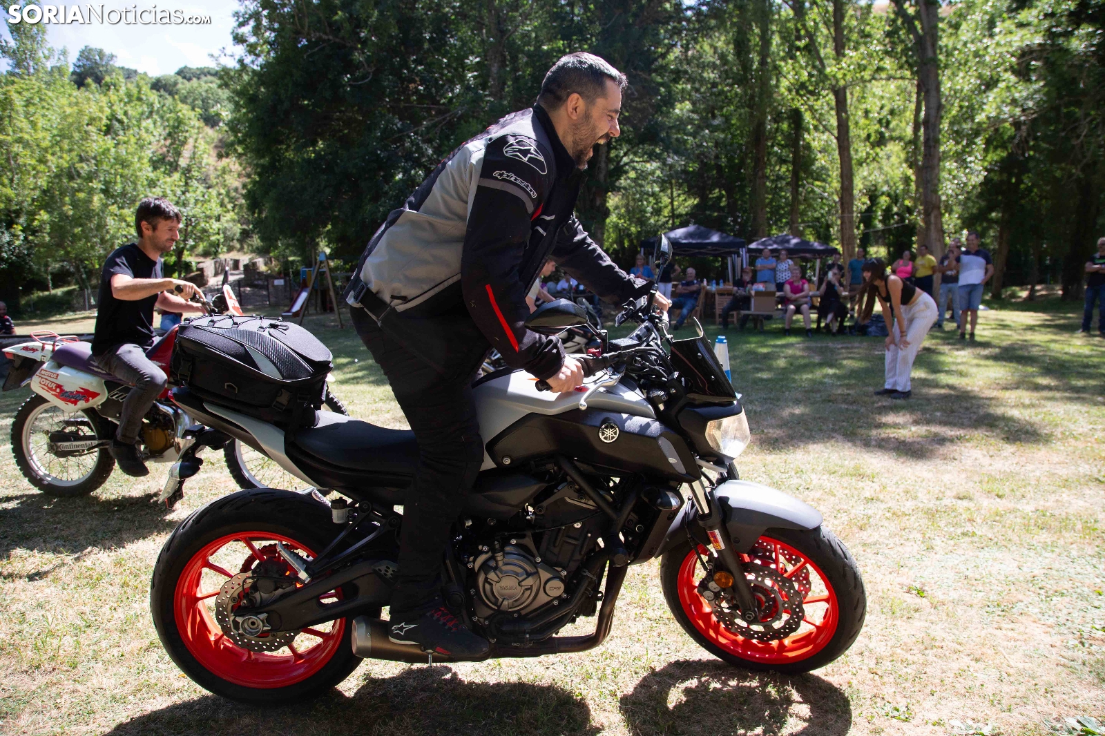 Santa Cruz de Yanguas acogía hoy, domingo 27 de julio, un encuentro motociclista en el que han tomado parte decenas de participantes. La jornada se iniciaba en la localidad riojana de Villamediana para después encarar el trayecto hacia Tierras Altas, en la provincia de Soria, pasando por Enciso. Santa Cruz de Yanguas ha sido la localidad de destino, donde los viajeros han disfrutado de una comida para después celebrar diversos juegos sobre las motocicletas y a pie, donde la diversión y la pericia han hecho las delicias de los participantes y de los vecinos de la localidad.