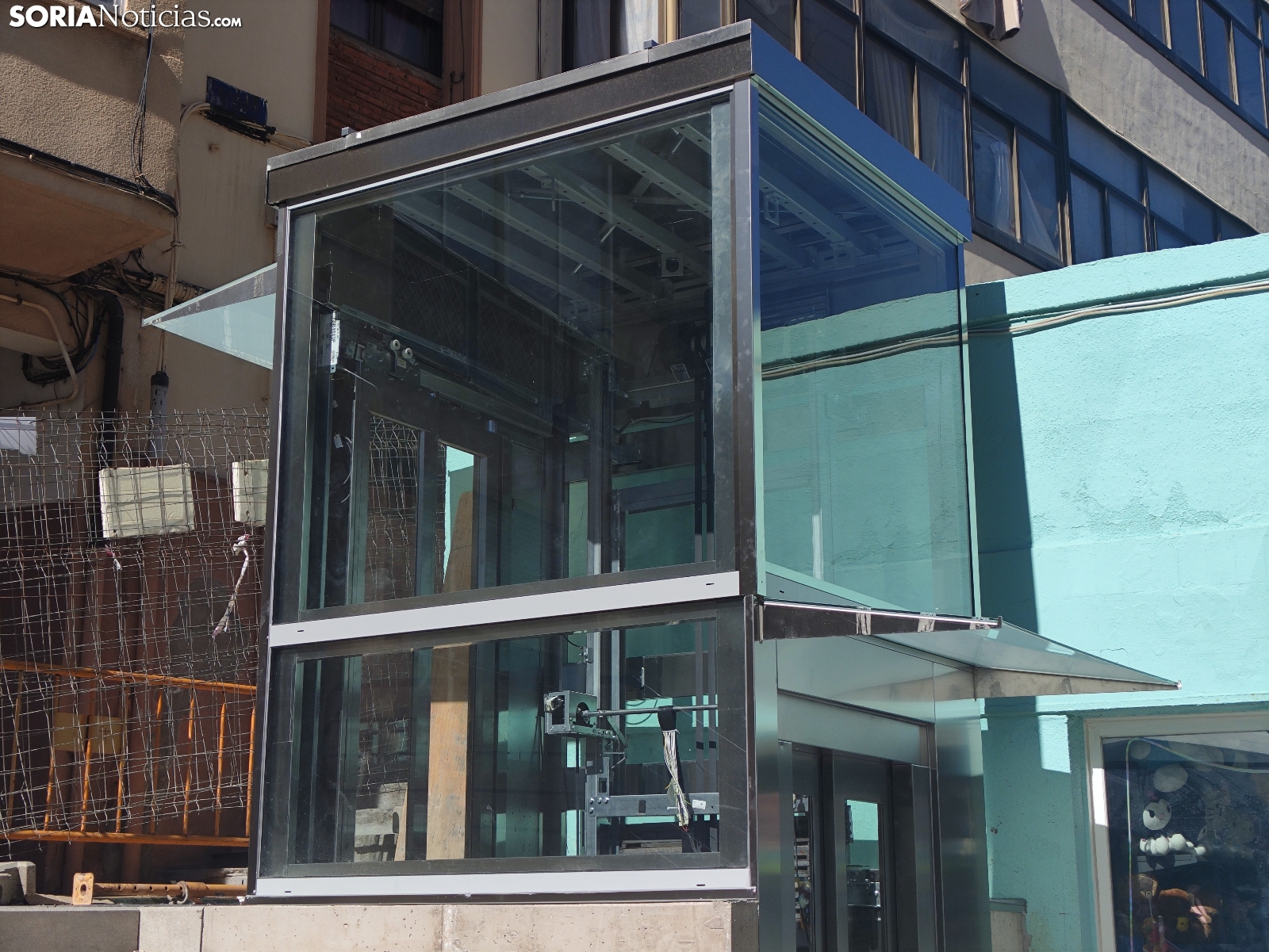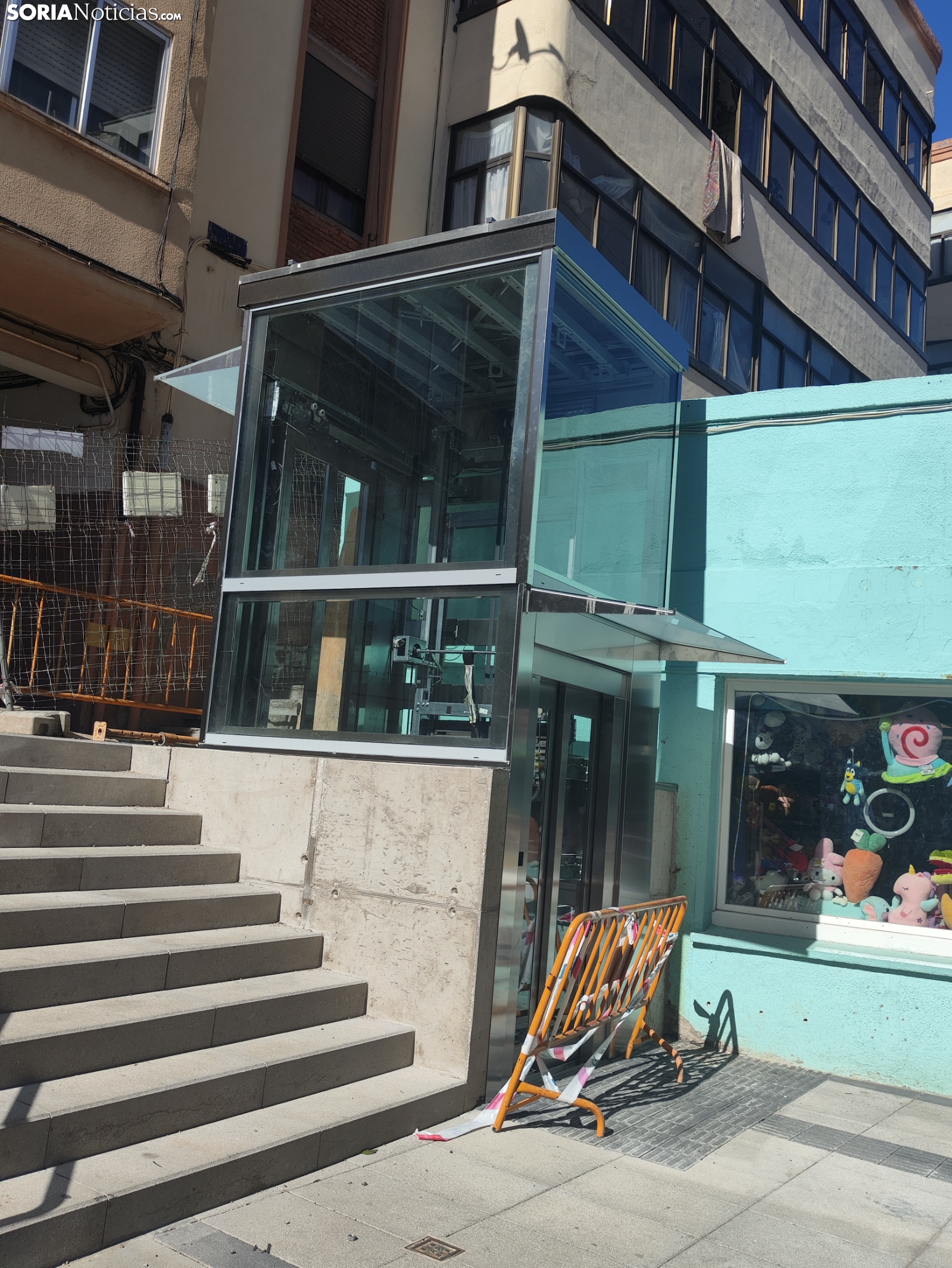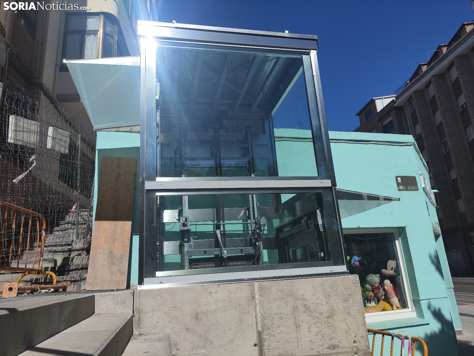 Soria pondrá en funcionamiento en las próximas semanas su primer ascensor en la calle. Será en el comienzo de la calle Diego Acebes, junto a su conexión con la calle San Benito, cerca de la rotonda del alto del Espolón. El elevador supera un desnivel cercano a los dos metros y permite superar un total de nueve escalones.