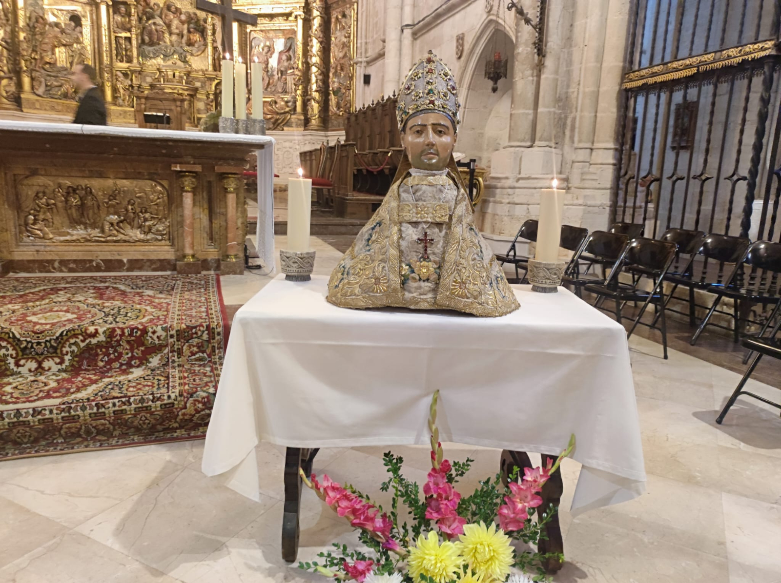 La fiesta ha comenzado con una procesión con la imagen del santo por las calles aledañas a la catedral y ha finalizado con la adoración a la reliquia ofrecida a los fieles por el presidente del cabildo catedralicio, Jesús Lapeña. El orfeón Hilarión Eslava se ha ocupado de la parcela musical como acostumbra a hacer en las celebraciones catedralicias con David Igualador y Jesús Alonso al frente.