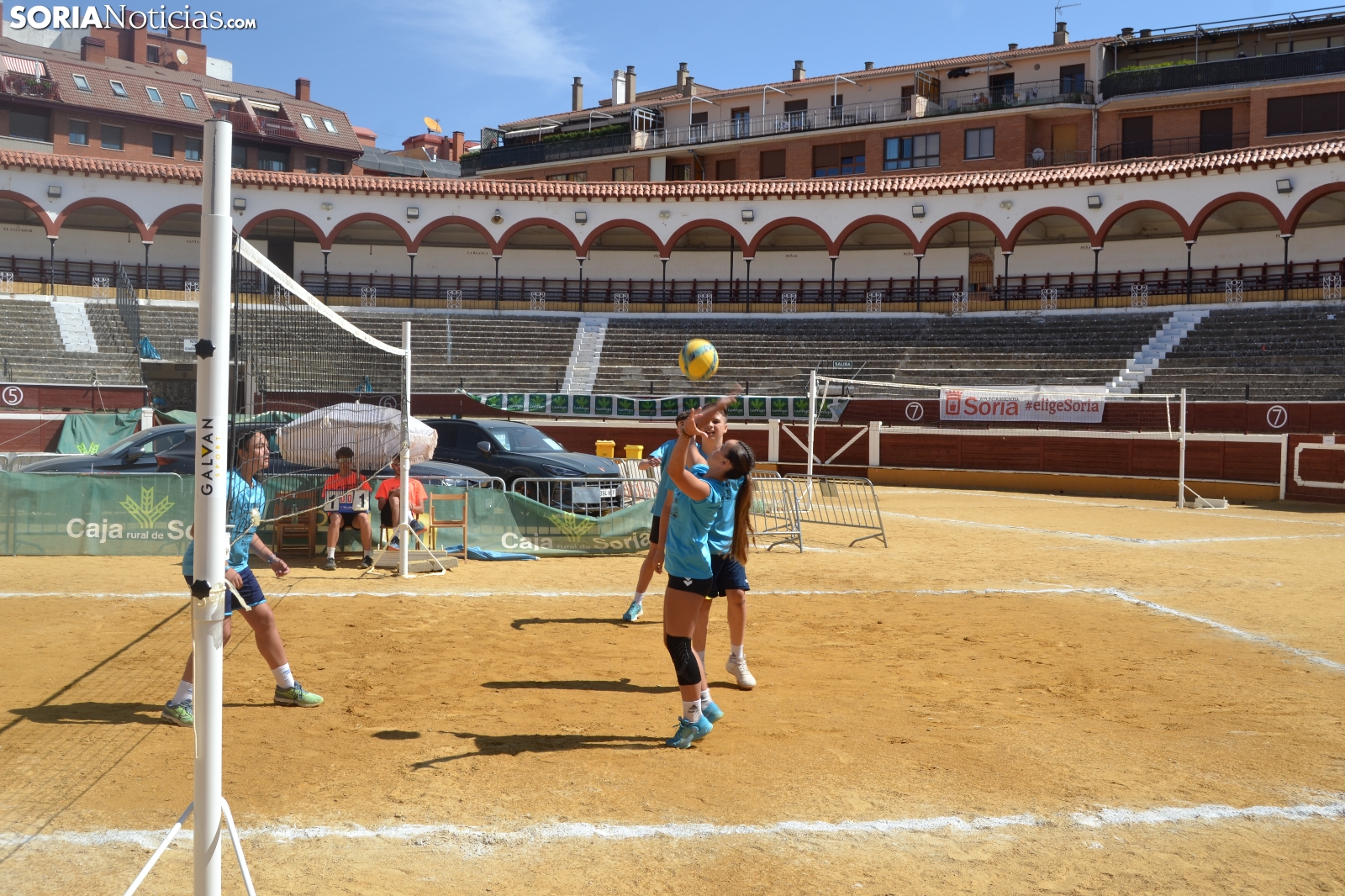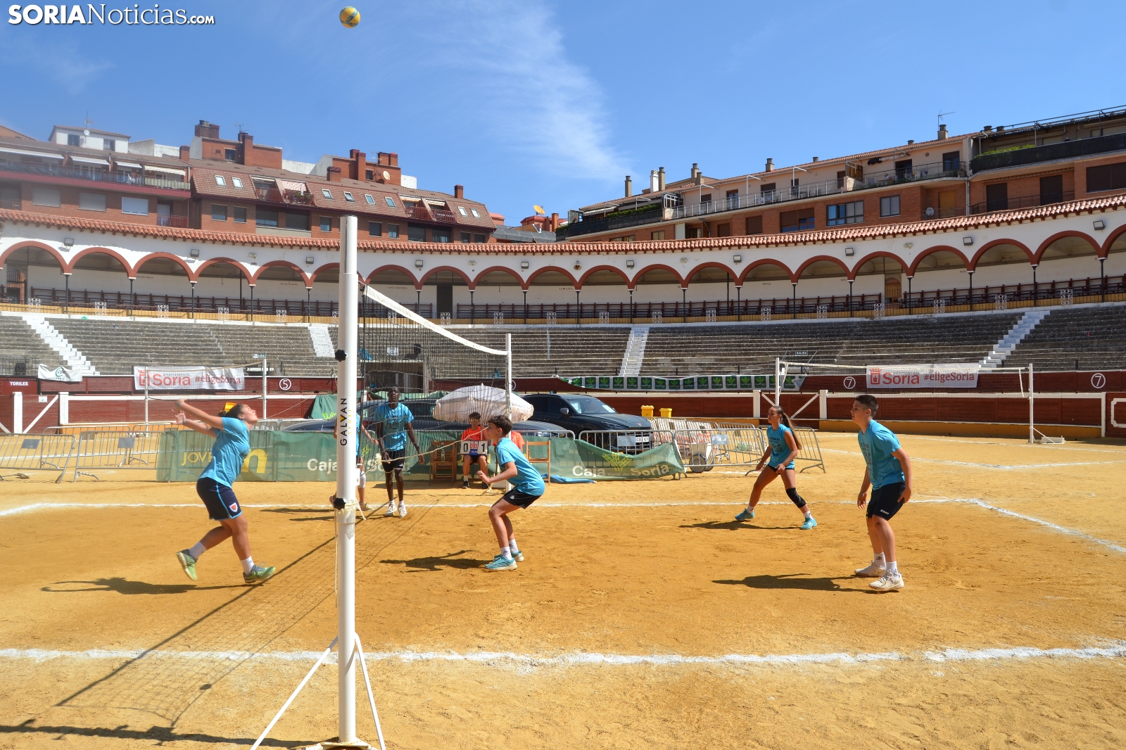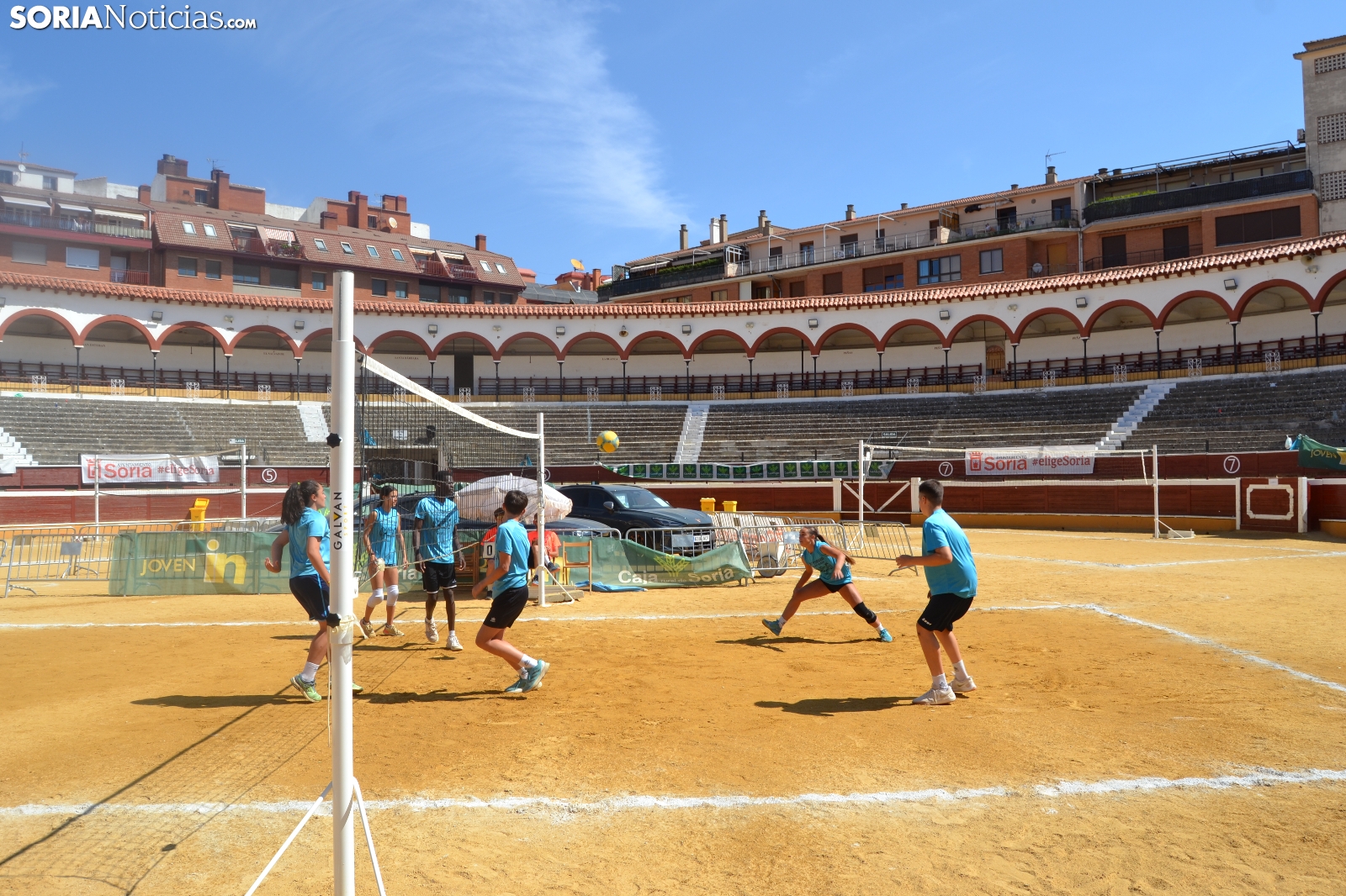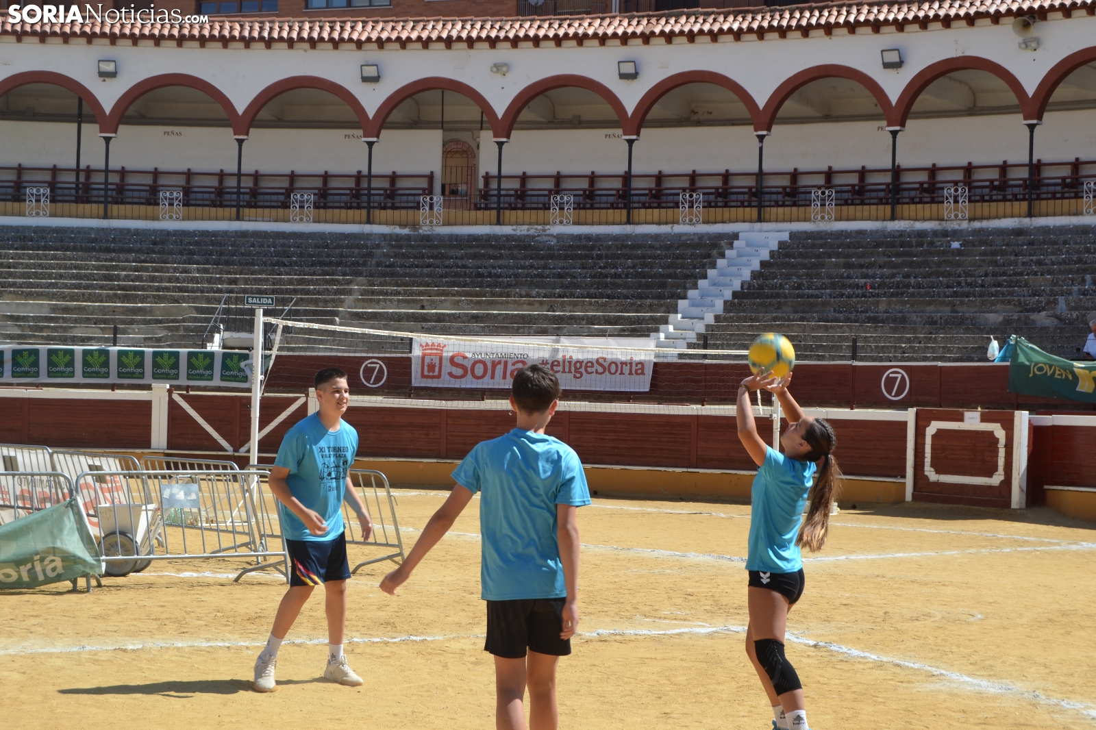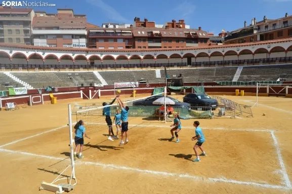 El Vóley Plaza llega a su fin después de ocho días de partidos. Las finales han comenzado esta mañana con los encuentros de los más jóvenes. Las promesas del voleibol soriano se han dado cita en una Plaza de Toros que está tarde albergará los duelos de las categorías adultas.