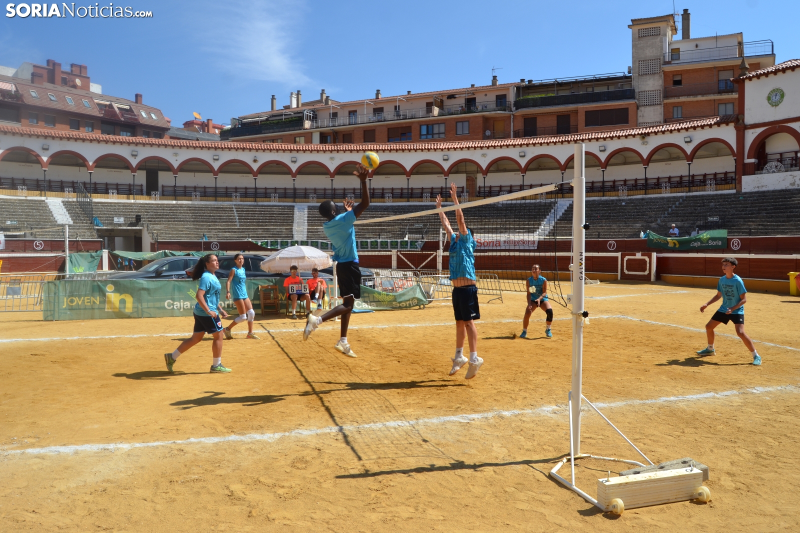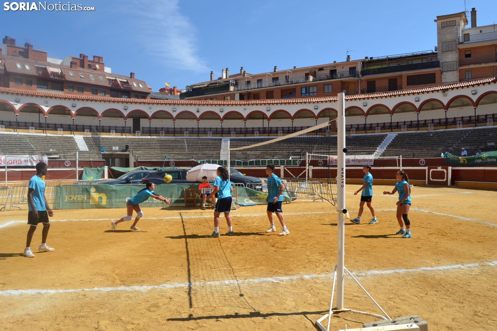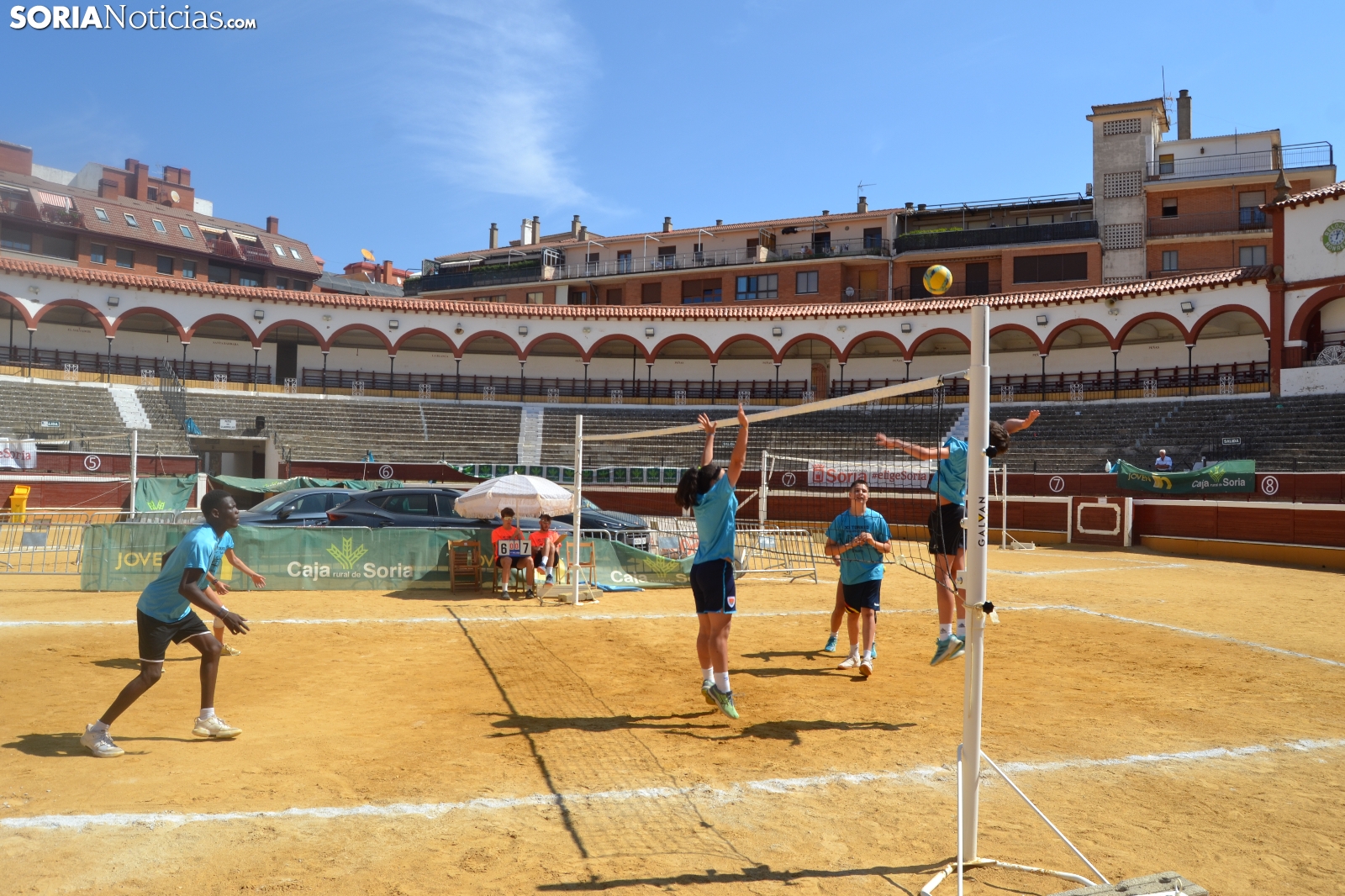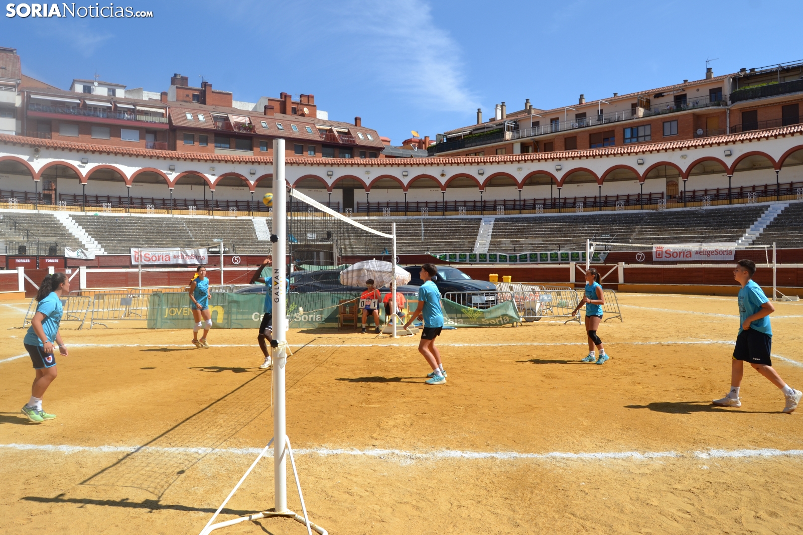 El Vóley Plaza llega a su fin después de ocho días de partidos. Las finales han comenzado esta mañana con los encuentros de los más jóvenes. Las promesas del voleibol soriano se han dado cita en una Plaza de Toros que está tarde albergará los duelos de las categorías adultas.