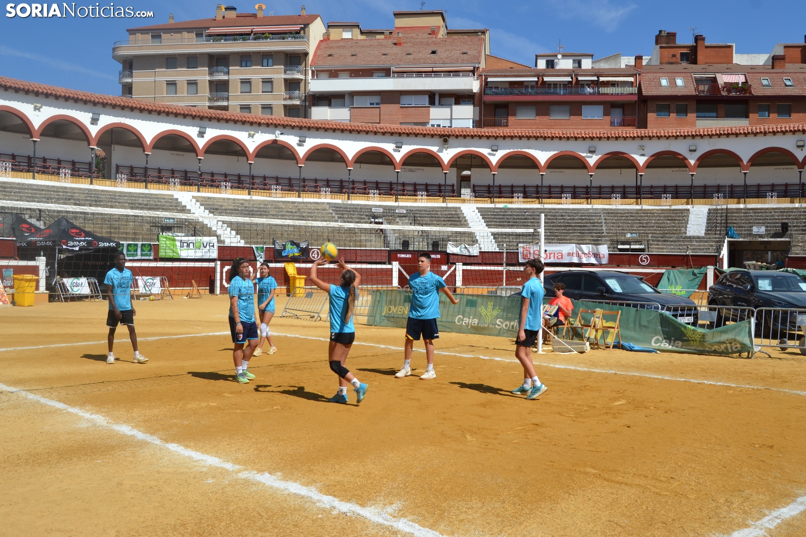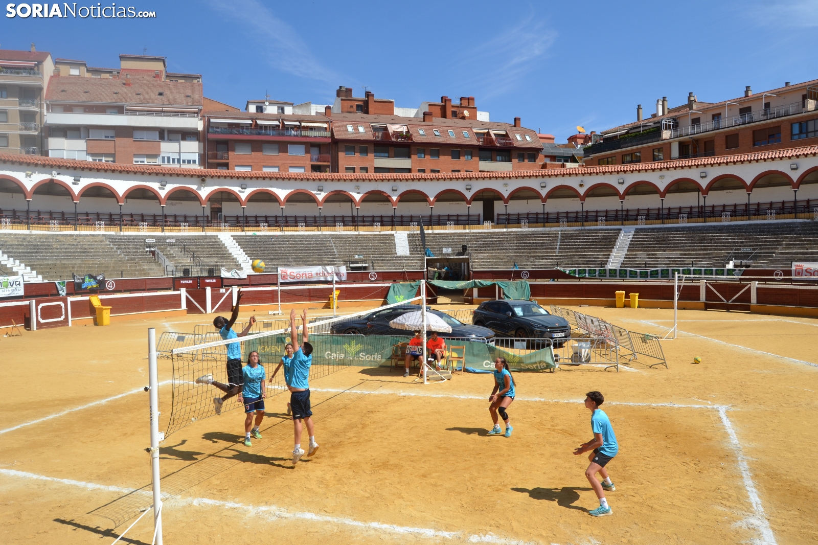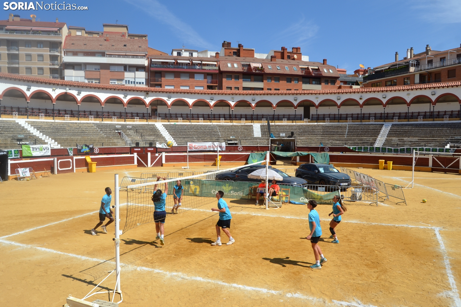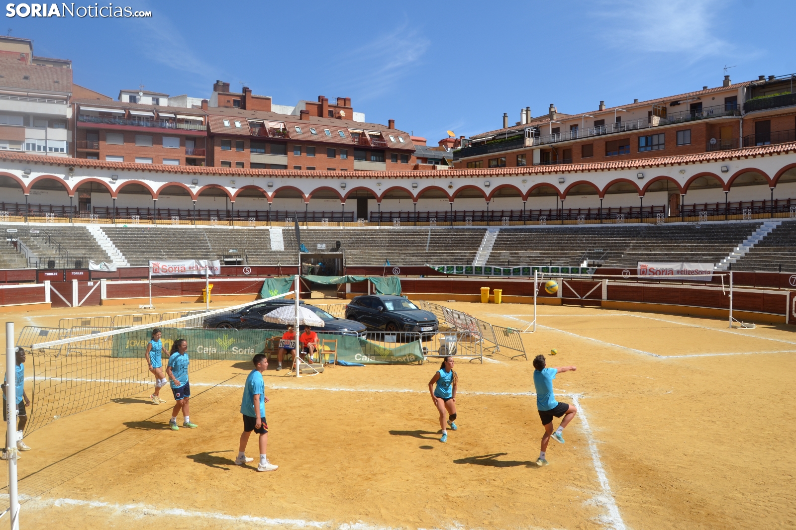 El Vóley Plaza llega a su fin después de ocho días de partidos. Las finales han comenzado esta mañana con los encuentros de los más jóvenes. Las promesas del voleibol soriano se han dado cita en una Plaza de Toros que está tarde albergará los duelos de las categorías adultas.