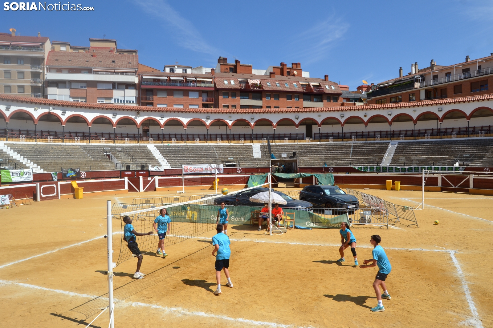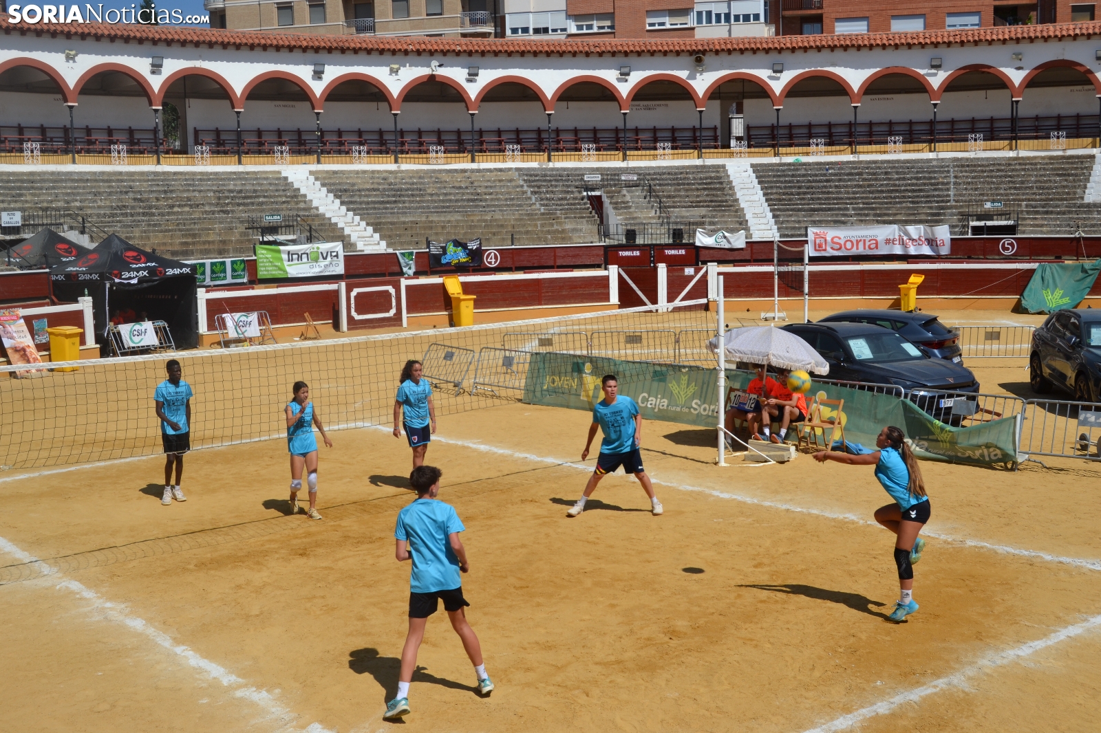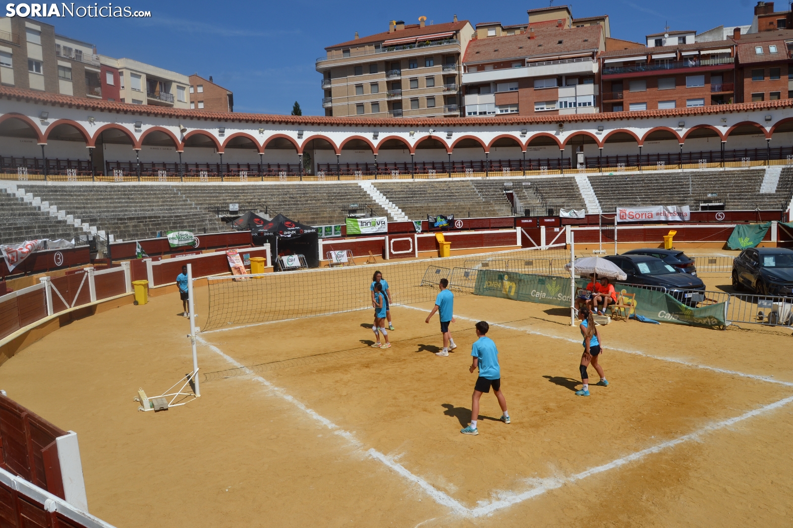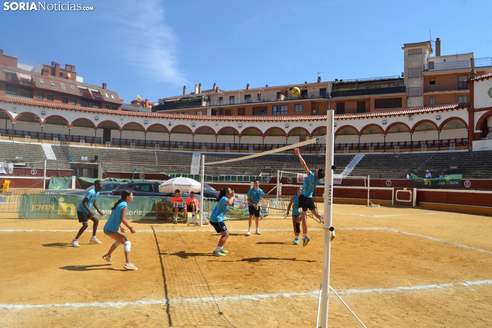 El Vóley Plaza llega a su fin después de ocho días de partidos. Las finales han comenzado esta mañana con los encuentros de los más jóvenes. Las promesas del voleibol soriano se han dado cita en una Plaza de Toros que está tarde albergará los duelos de las categorías adultas.