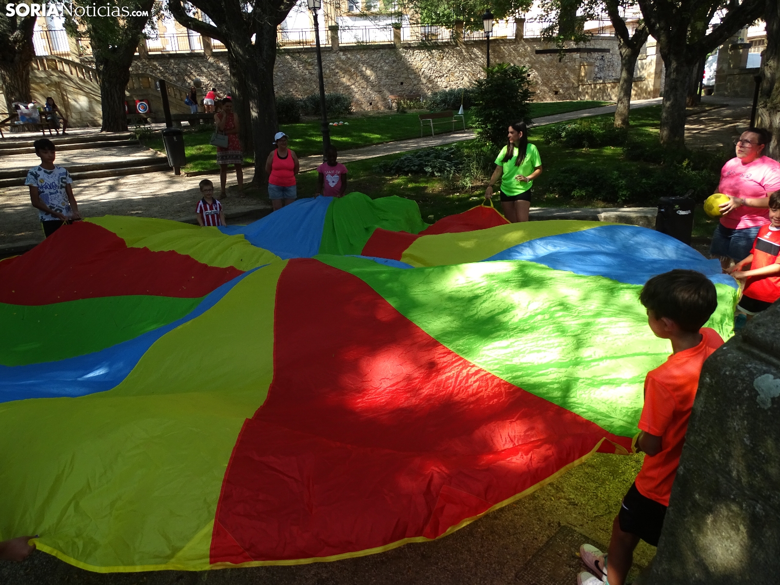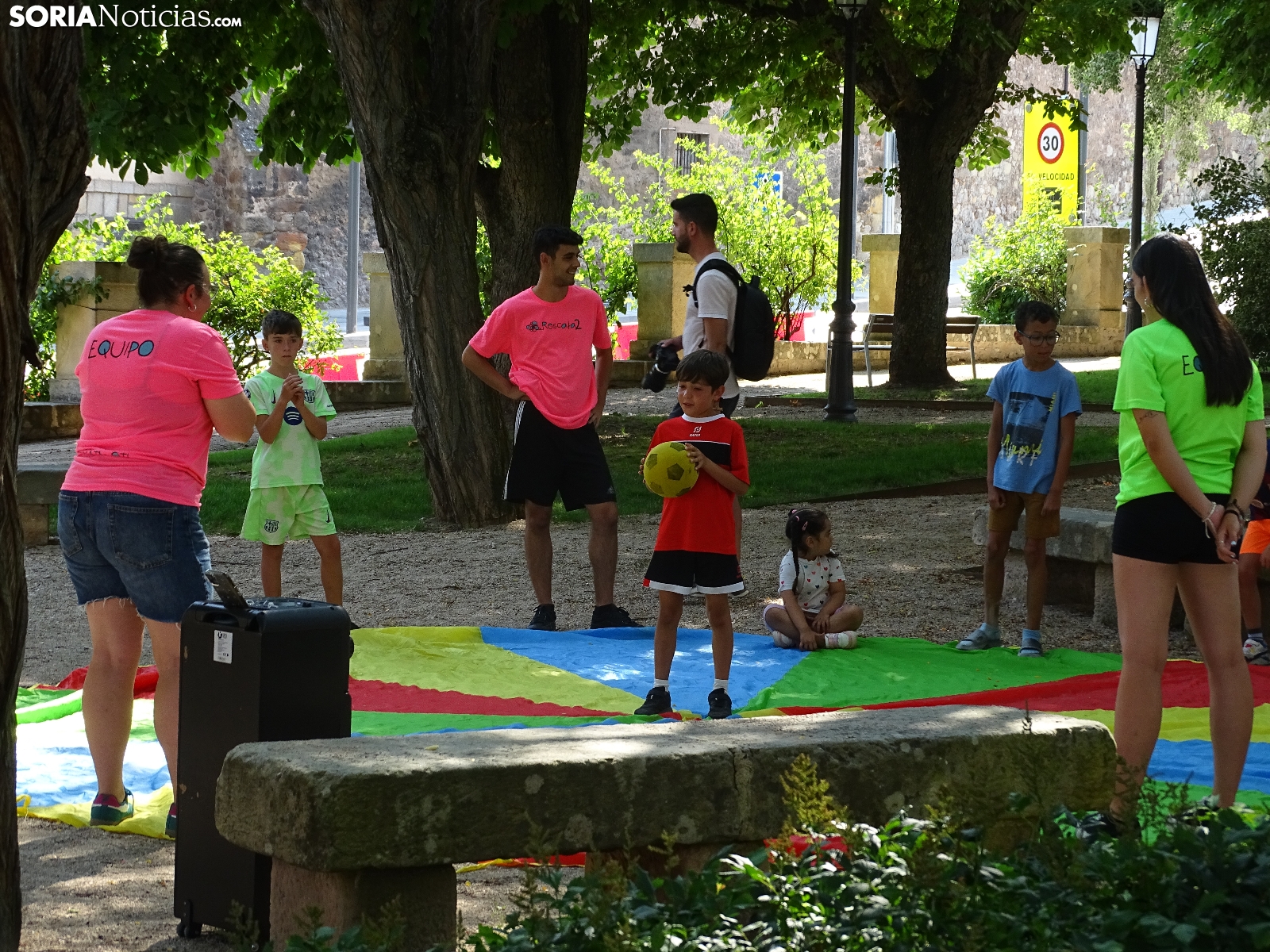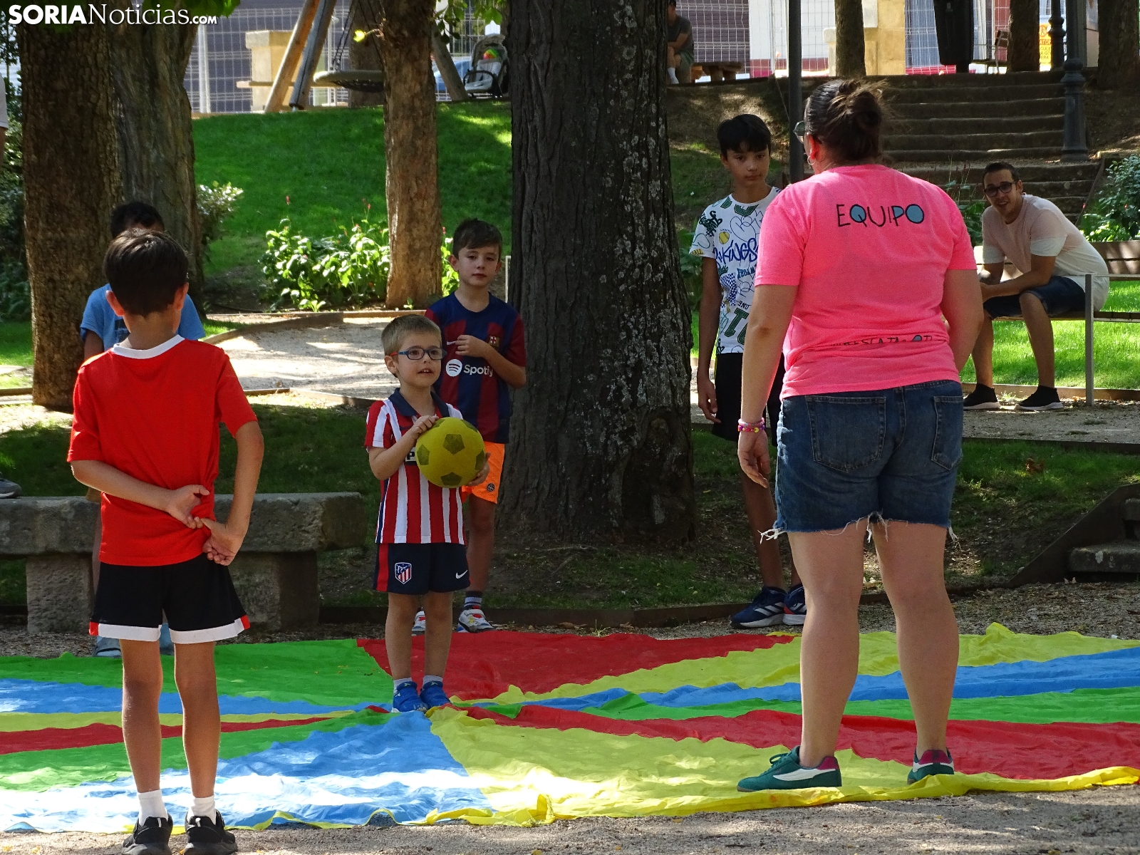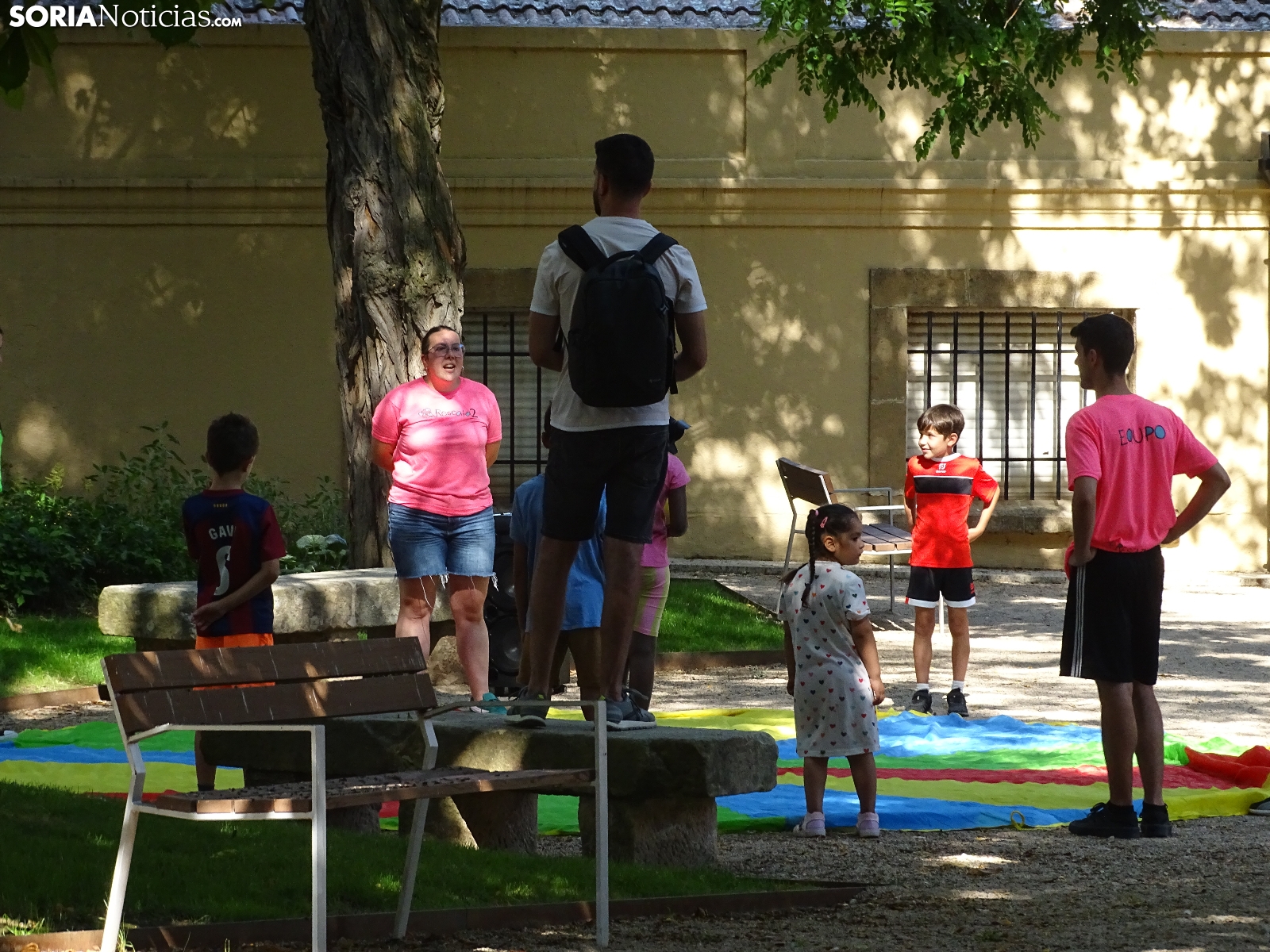 El parque de La Arboleda ha acogido una tarde con sello infantil, con juegos y diversas atracciones en común, dentro de las fiestas que esta semana acoge el barrio de San Pedro, en la capital soriana. Hoy martes los pequeños se hacían presentes para disfrutar de juegos en común, algunos con disparatadas preguntas que han llevado a la sana participación de un nutrido grupo de entusiastas y jóvenes asistentes. Lo lúdico se ha hecho presente en este pequeño rincón verde de la ciudad a la espera de otras citas previstas hasta el domingo, cuando una hoguera pondrá punto y final a estos días.