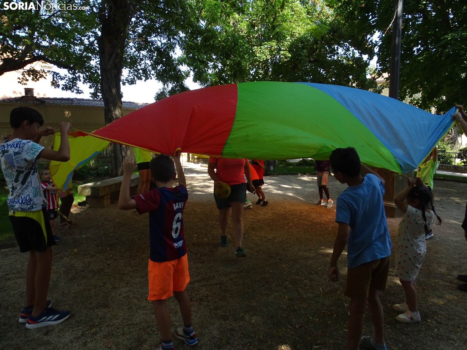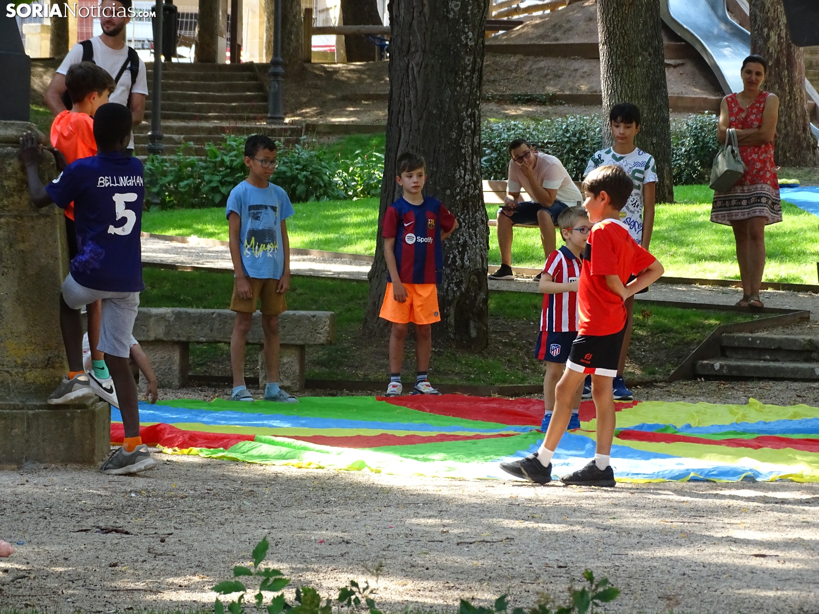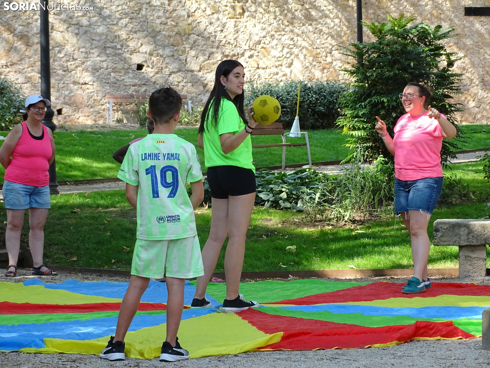 El parque de La Arboleda ha acogido una tarde con sello infantil, con juegos y diversas atracciones en común, dentro de las fiestas que esta semana acoge el barrio de San Pedro, en la capital soriana. Hoy martes los pequeños se hacían presentes para disfrutar de juegos en común, algunos con disparatadas preguntas que han llevado a la sana participación de un nutrido grupo de entusiastas y jóvenes asistentes. Lo lúdico se ha hecho presente en este pequeño rincón verde de la ciudad a la espera de otras citas previstas hasta el domingo, cuando una hoguera pondrá punto y final a estos días.