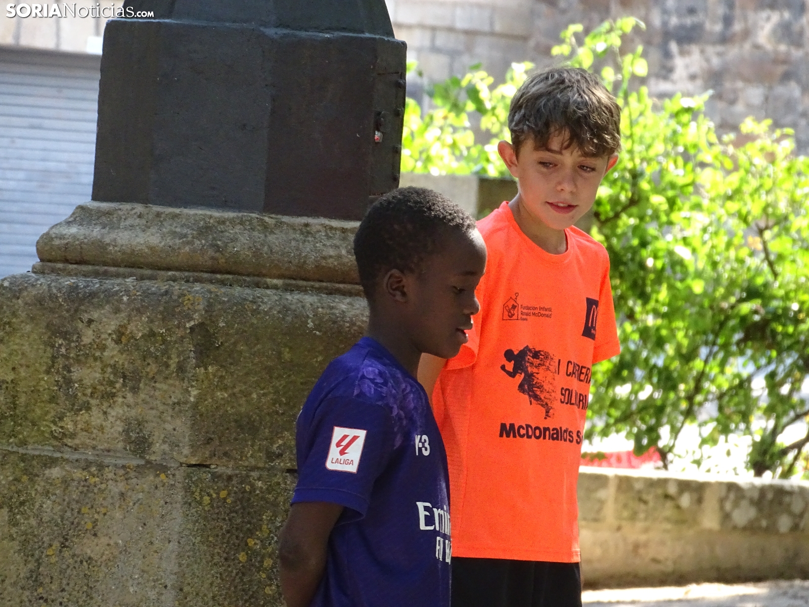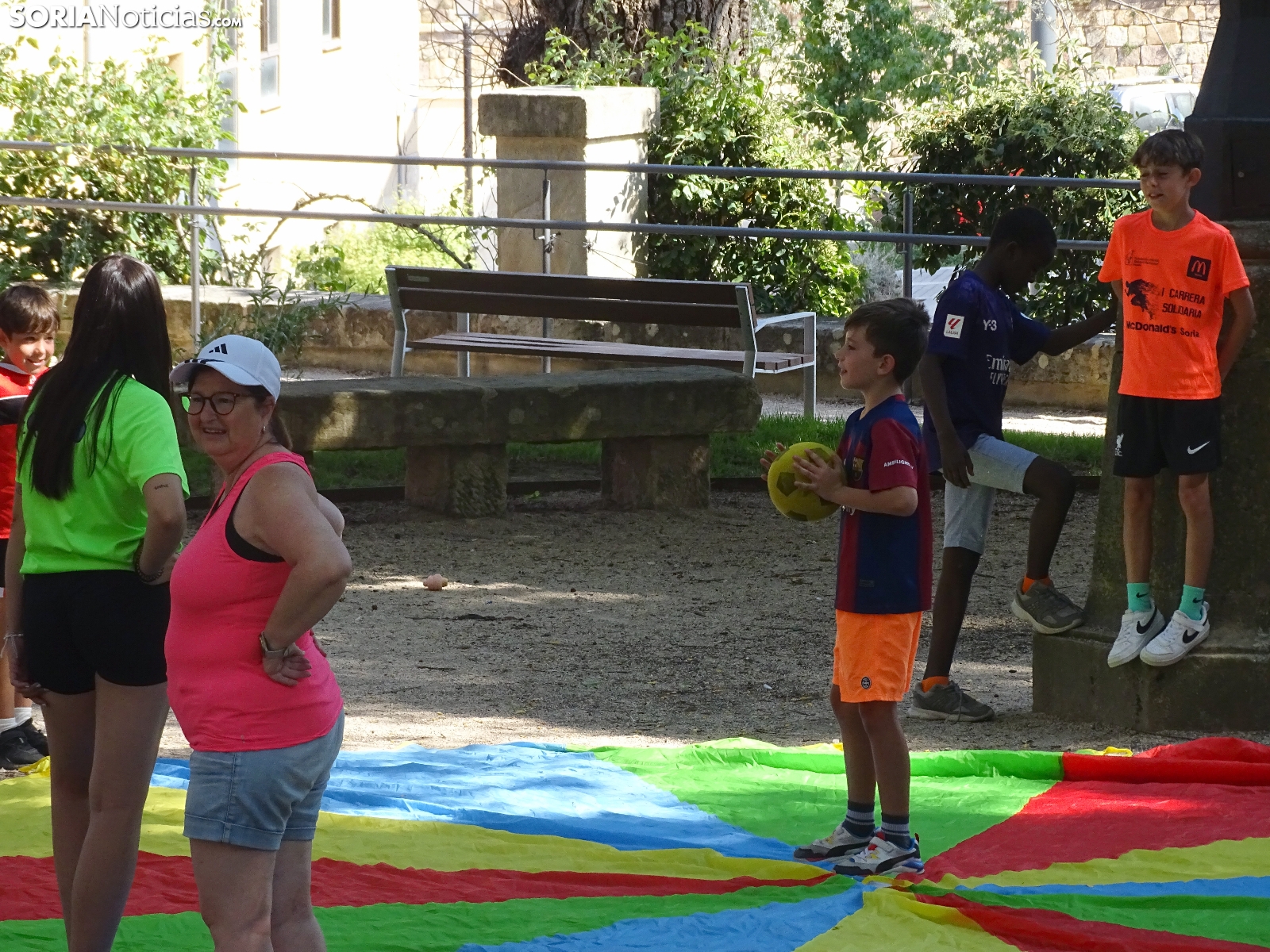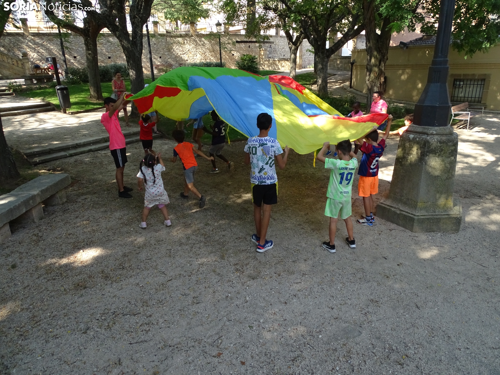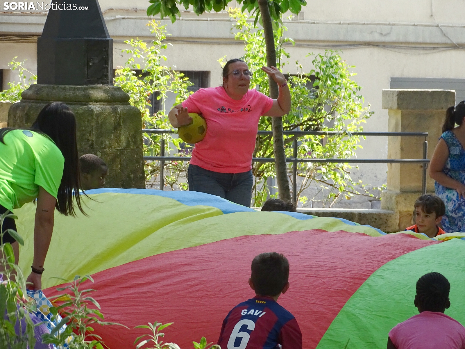 El parque de La Arboleda ha acogido una tarde con sello infantil, con juegos y diversas atracciones en común, dentro de las fiestas que esta semana acoge el barrio de San Pedro, en la capital soriana. Hoy martes los pequeños se hacían presentes para disfrutar de juegos en común, algunos con disparatadas preguntas que han llevado a la sana participación de un nutrido grupo de entusiastas y jóvenes asistentes. Lo lúdico se ha hecho presente en este pequeño rincón verde de la ciudad a la espera de otras citas previstas hasta el domingo, cuando una hoguera pondrá punto y final a estos días.