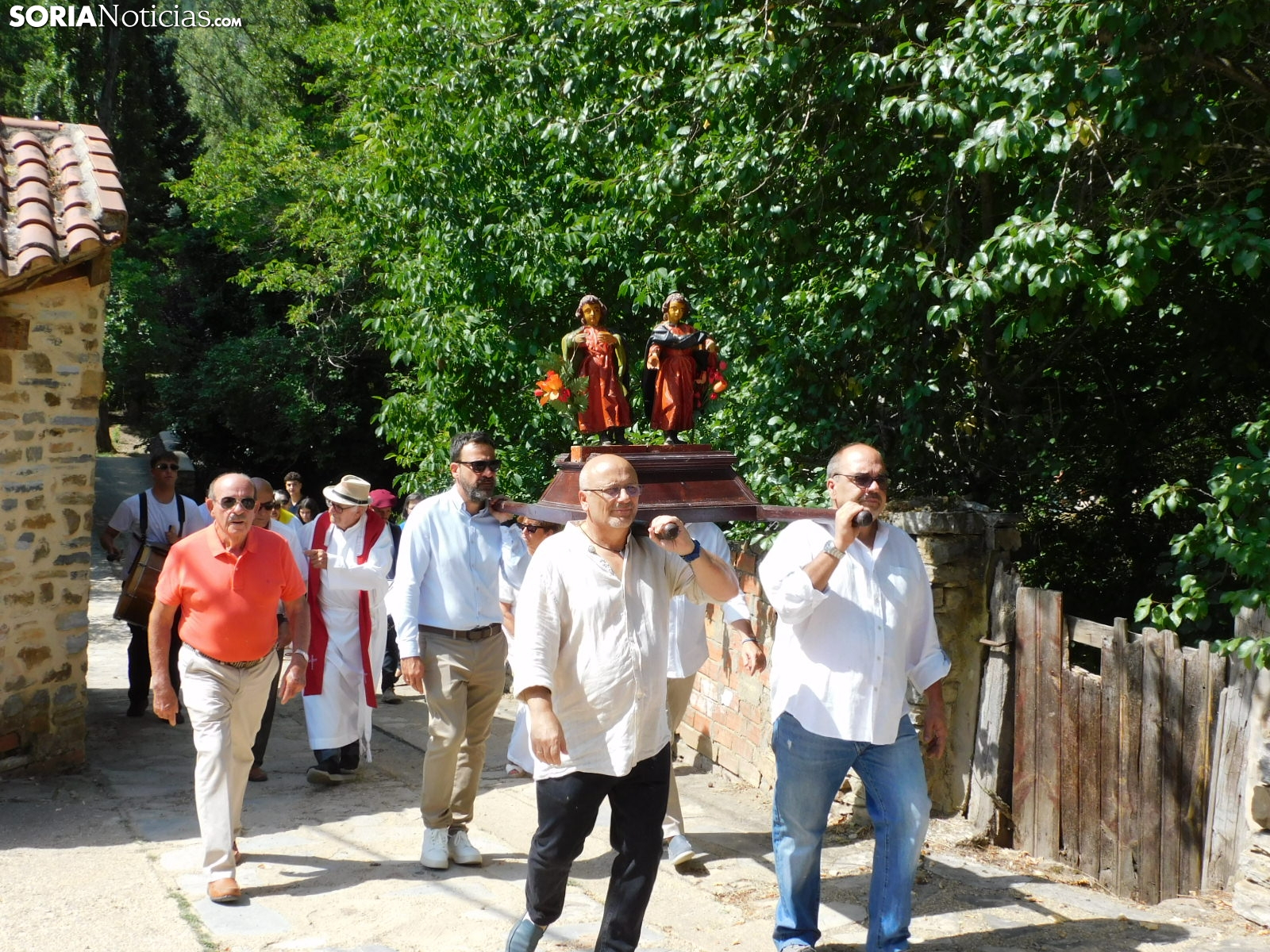 La localidad de Diustes, pedanía de Villar del Río, ha vivido una mañana repleta de tradición y emoción para celebrar sus fiestas patronales. El día comenzaba al alba con el toque de campanas y el tradicional 'Vestir el ramo', seguido de las rondas con gaiteros que han animado las calles antes de la solemne procesión en honor a los santos Justo y Pastor. Tras la misa, vecinos y visitantes han compartido un animado vermut popular y la tradicional 'Ronda de Aleluyas', en la que los gaiteros han visitado todas las casas del pueblo. La fiesta continúa por la tarde con actividades para todos los públicos: juegos infantiles, concurso de flanes, juegos populares como los bolos y la calva, y la esperada corrida del rosco, en la que mozos y mozas reviven una costumbre llena de simbolismo. La entrega de premios, un animado bingo popular y la discomóvil Guateque, que pondrá ritmo hasta bien entrada la madrugada, cerrarán una jornada inolvidable en este pequeño enclave de Tierras Altas.