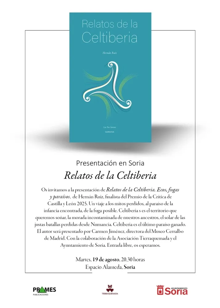 El Espacio Alameda de Soria acoge este martes, 19 de agosto, la presentación del libro 'Relatos de la Celtiberia', del autor soriano Hernán Ruiz. El evento, enmarcado dentro de la programación de la Vulcanalia 2025, permitirá al público conocer de primera mano una obra que ha cosechado un notable éxito tanto de crítica como de lectores, alcanzando ya su segunda edición.