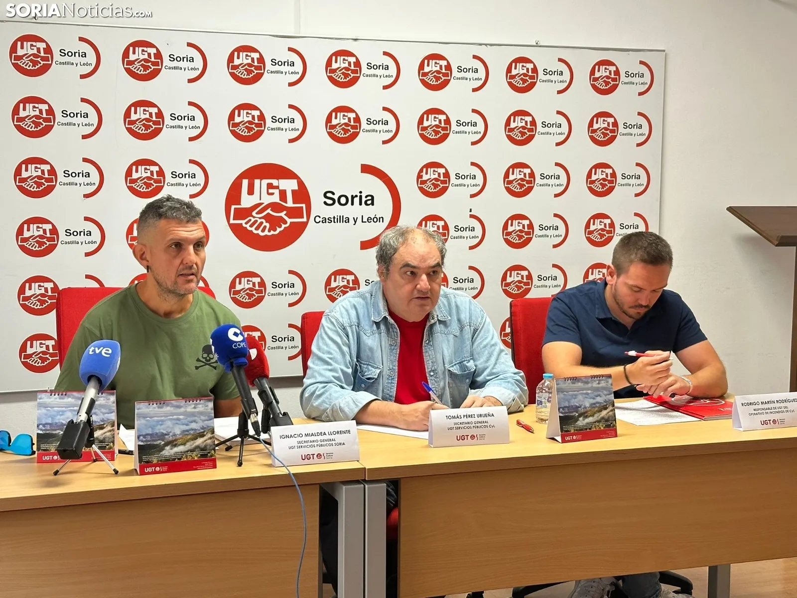 Los responsables de UGT han desgranado los problemas estructurales que afectan al operativo de incendios en Castilla y León. Ignacio Maldea Llorente, secretario general de UGT Servicios Públicos Soria; Rodrigo Martín Rodríguez, responsable autonómico del operativo de incendios, y Tomás Pérez Ureña, secretario general de UGT Servicios Públicos de Castilla y León, han coincidido en señalar a la Junta como "principal responsable" de una gestión que califican de “desgastante” e "ineficaz ante la nueva realidad de los incendios".