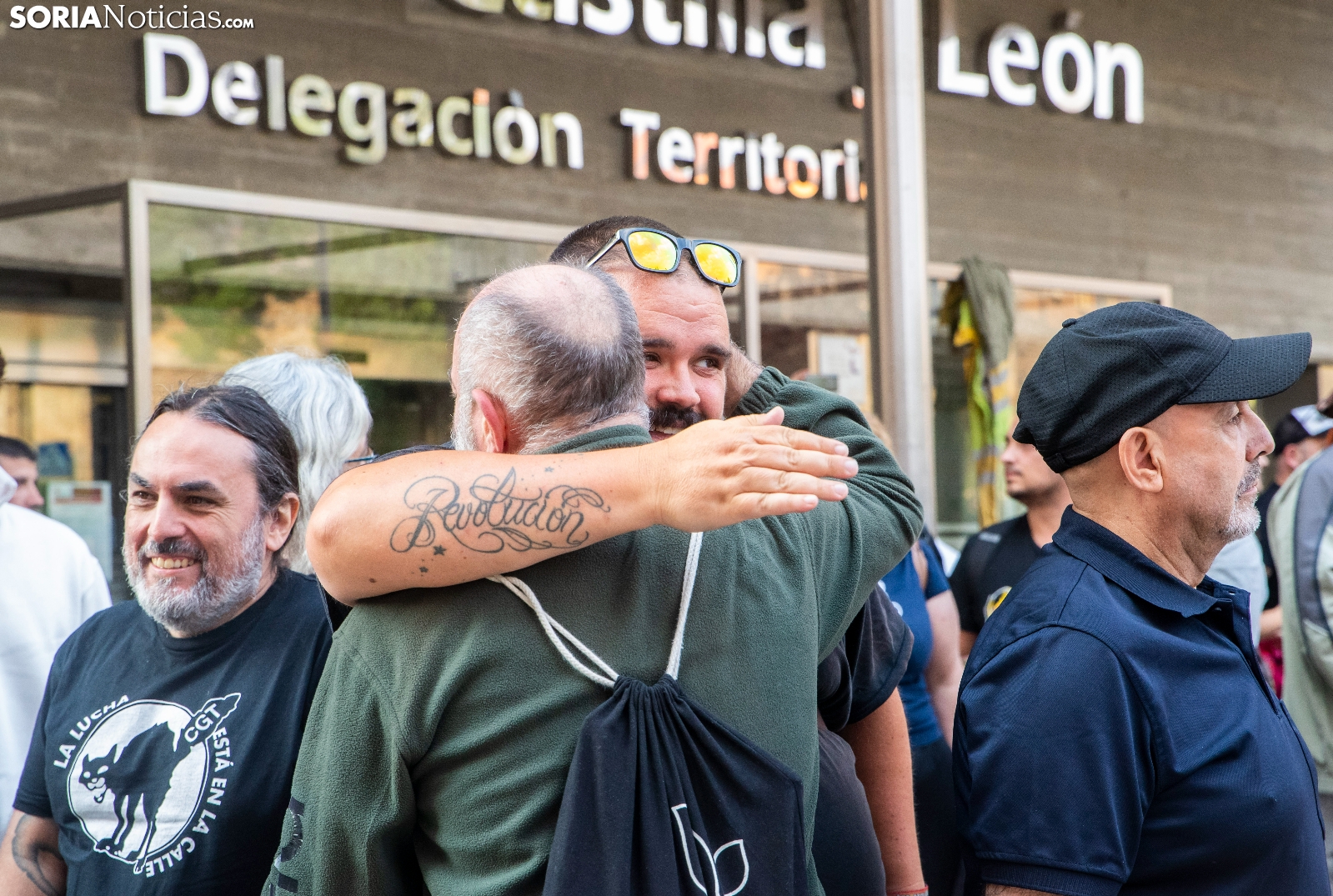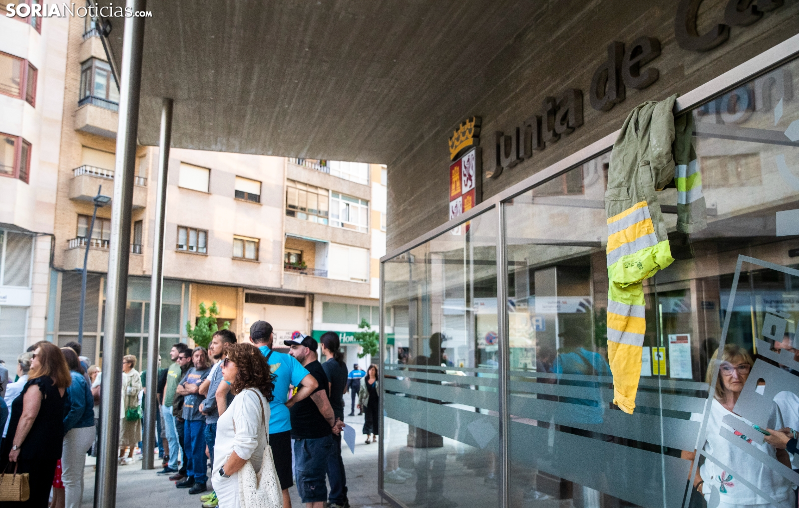 Tristes, a punto de llorar y con rabia en el cuerpo. Así se ha concentrado un centenar de personas frente a las puertas de la Delegación de la Junta de Castilla y León para ser escuchados ante la falta de medios que sufren las brigadas de extinción de incendios. El detonante para llevarla a cabo ha sido la muerte de Nacho, un “compañero de una brigadaque participó en la extinción de los fuegos que se ocasionaron en la provincia de León”. El motivo del fallecimiento fue que el vehículo autobomba que estaba utilizando volcó cuando se retiraba para descansar tras una intensa jornada. Además,como consecuencia del siniestro, el peón que le acompañaba, también de Soria, resultó herido leve, aunque este recibió el alta hospitalaria al día siguiente tras ingresar en el hospital de El Bierzo.