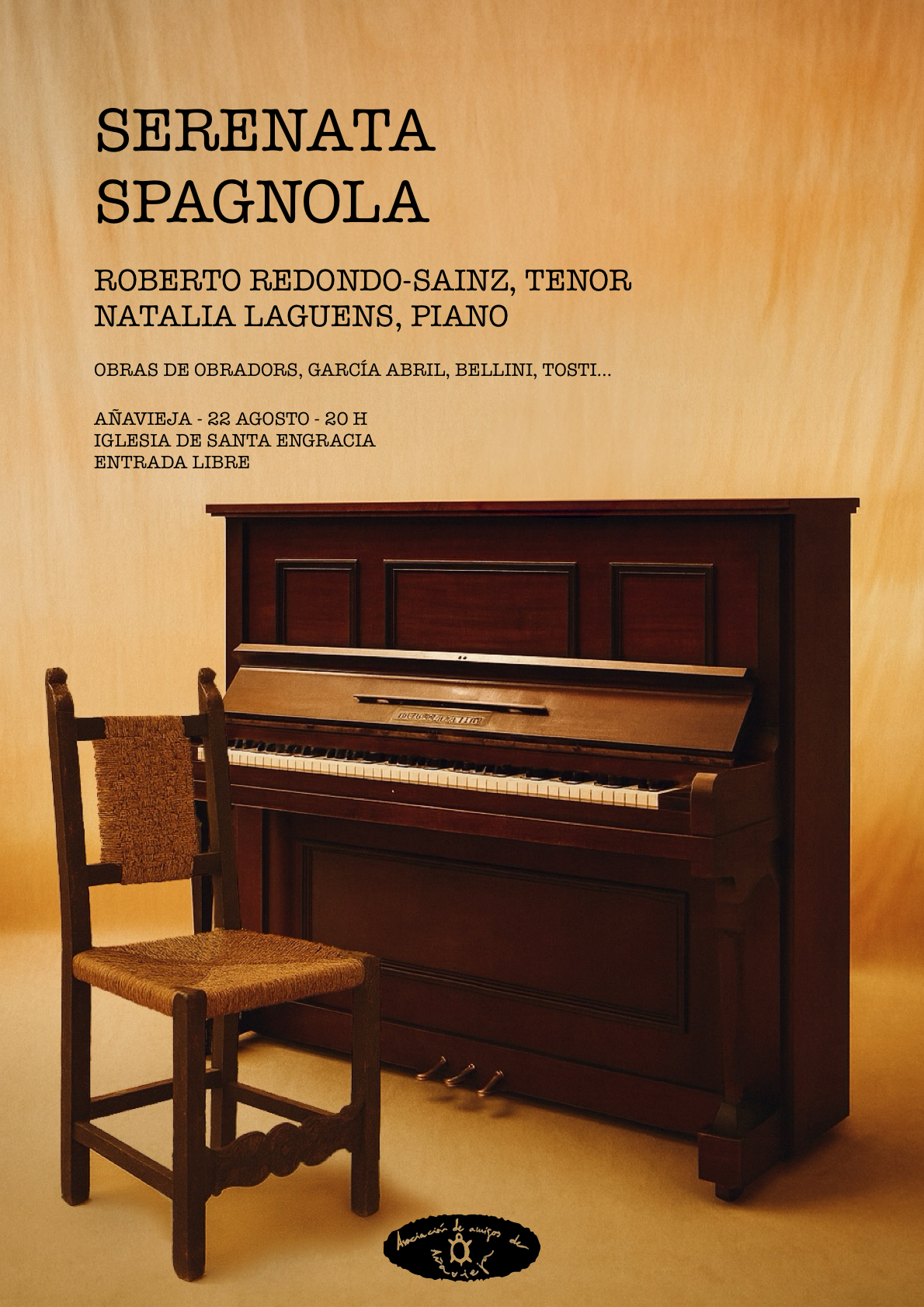 La localidad soriana de Añavieja acoge este viernes, 22 de agosto, una destacada cita cultural con el concierto 'Serenata Spagnola'. El evento estará protagonizado por el tenor soriano Roberto Redondo-Sainz y la pianista Natalia Laguens, quienes ofrecerán una actuación en la Iglesia de Santa Engracia con entrada libre para todos los asistentes.