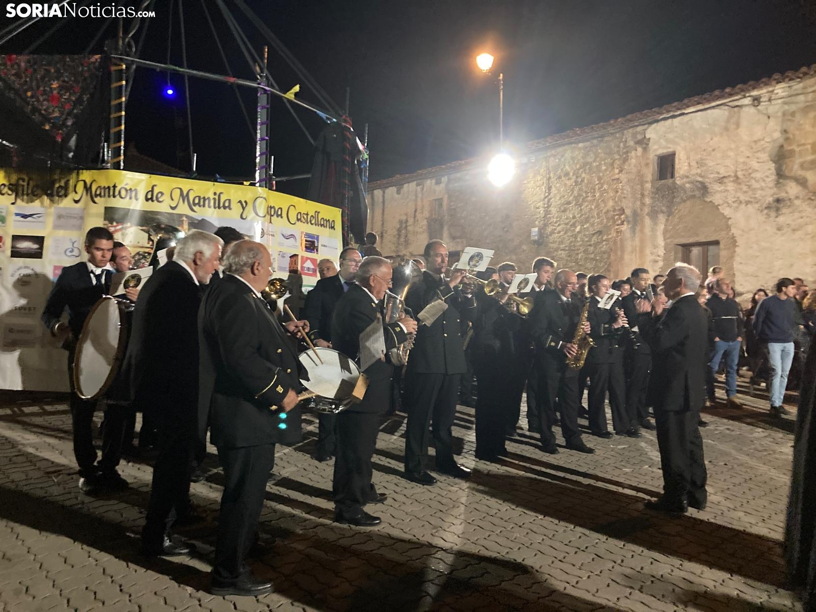 El preludio de la gran noche tuvo lugar a las once en punto en el salón del Ayuntamiento. La Banda de Covaleda, una presencia familiar y querida en esta celebración, fue la encargada de poner el ambiente con un concierto que sirvió de punto de encuentro. El salón, completamente lleno, vibraba con la música y la expectación de lo que estaba por venir. Este primer acto no solo ofreció un repertorio de calidad, sino que también funcionó como catalizador social, reuniendo a los participantes y al público en un espacio compartido antes de que la fiesta se trasladara al exterior.