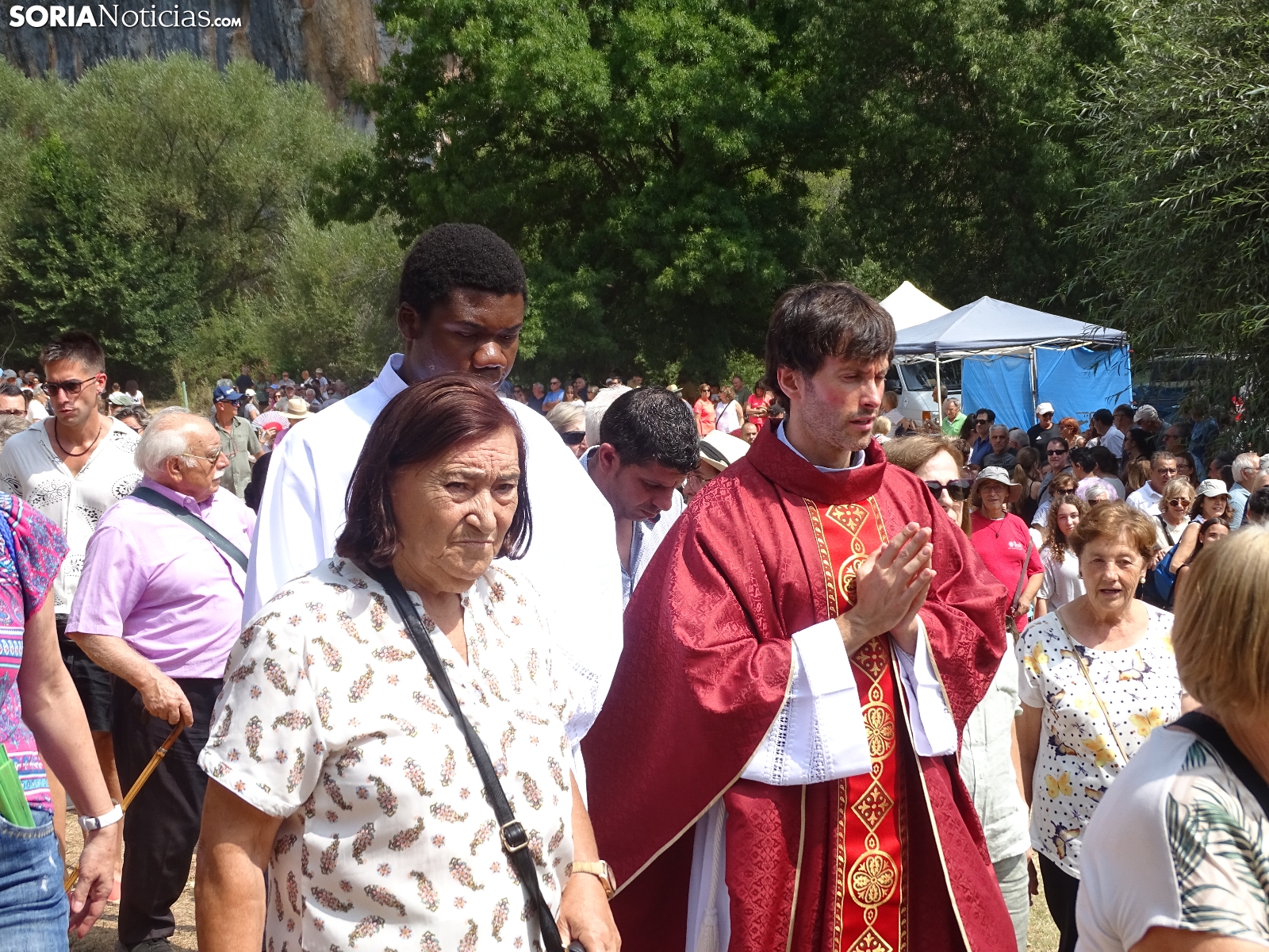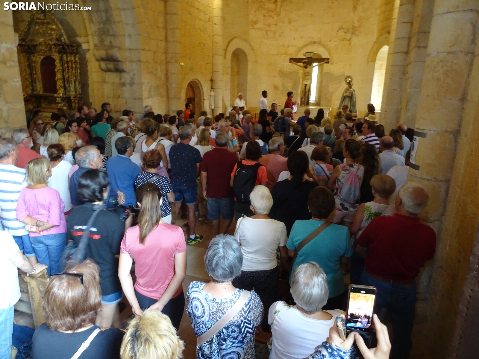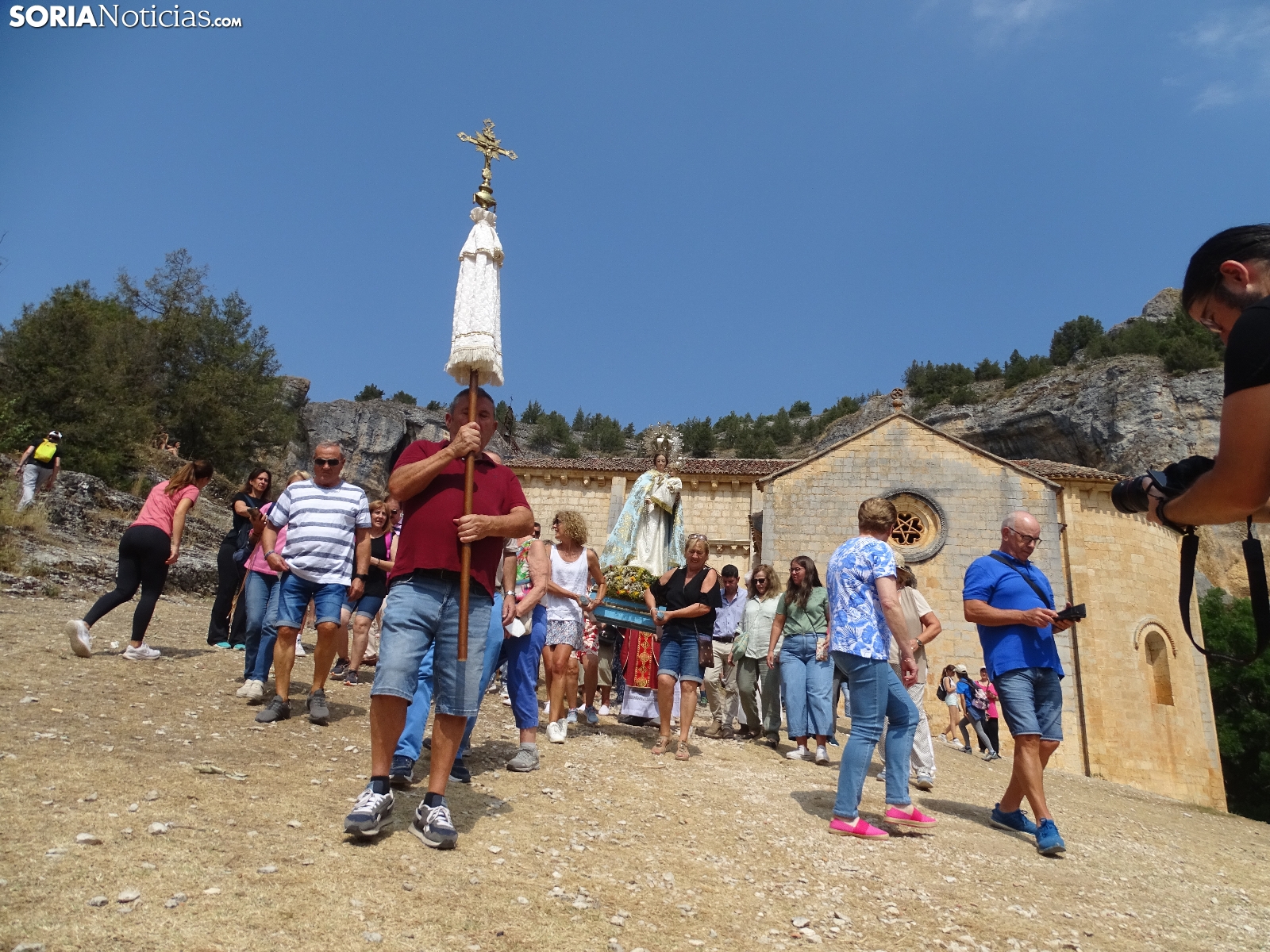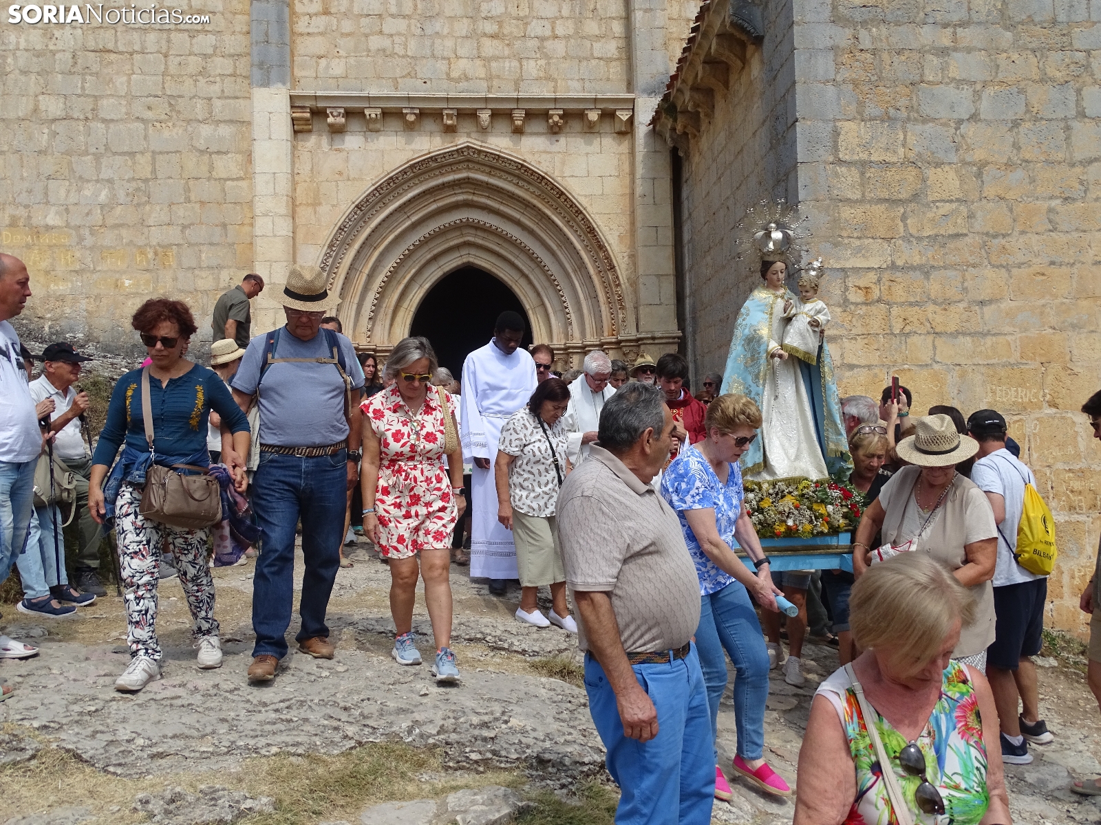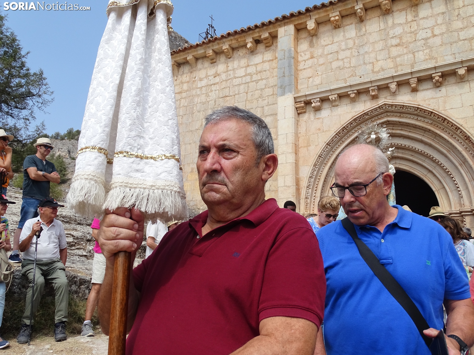 En el día del santo, la ermita de San Bartolomé, en el cañón del río Lobos ha vuelto a albergar la romería que tiene lugar en este bello paraje natural soriano. Este domingo, cientos de peregrinos se han dado cita para asistir a las dos eucaristías, la primera a las 10 de la mañana y la segunda a las 12 del mediodía, para dar continuidad a una tradición devocional, como se hace cada 24 de agosto. Como es costumbre, al término de la segunda ceremonia ha dado comienzo la procesión con la imagen de la Virgen de la Salud. Una jornada campestre radiante a la que han acudido devotos de localidades cercanas, sobre todo de Herrera de Soria, Nafría de Ucero y Ucero, municipios regentes del denominado Comunero de San Bartolomé.