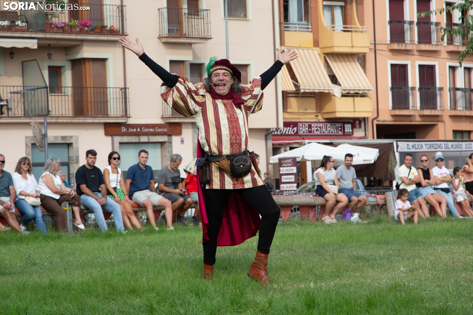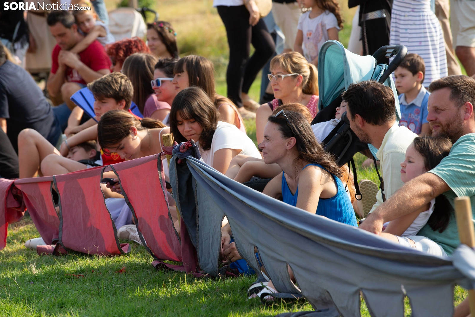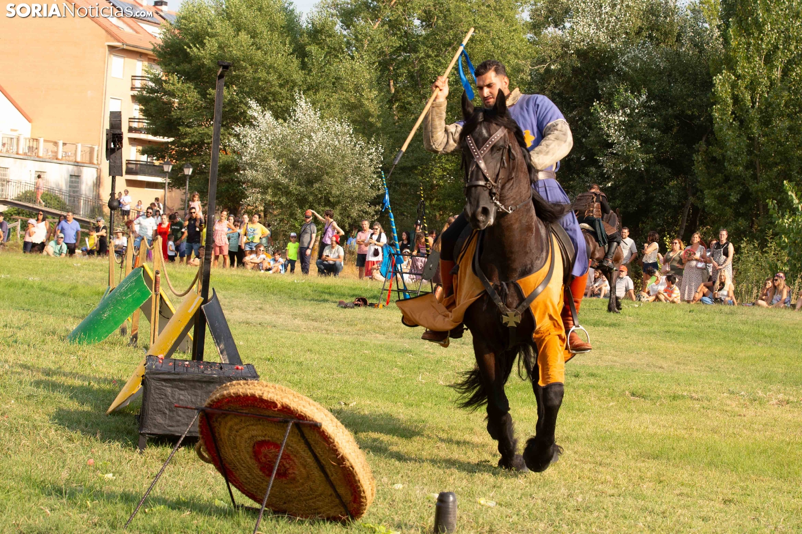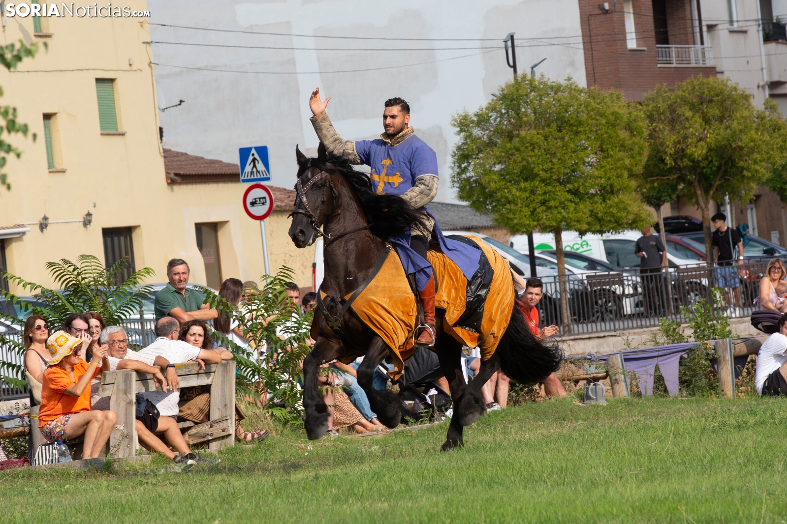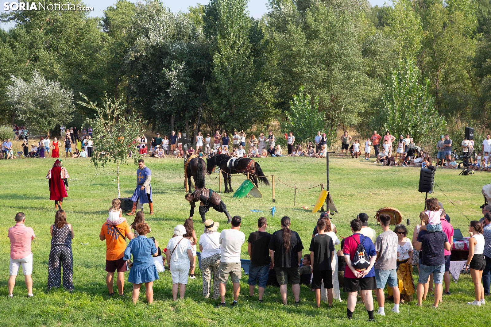 El paraje el Sotillo, a orillas del Duero, ha sido el escenario para la puesta en escena de las gestas del Cid, dentro del programa que contempla el mercado medieval de San Esteban de Gormaz. Durante este fin de semana, la localidad sanestebeña ha acogido esta particular feria donde el público ha podido disfrutar de un más que amplio periplo en el que se incluían conferencias, exhibiciones como la cetrería, entre otras, pasacalles, representaciones teatrales y puestos de venta con artículos artesanales y agroalimentarios. El evento, que ahora ha cumplido 25 años, es uno de los pioneros de este tipo en la provincia.