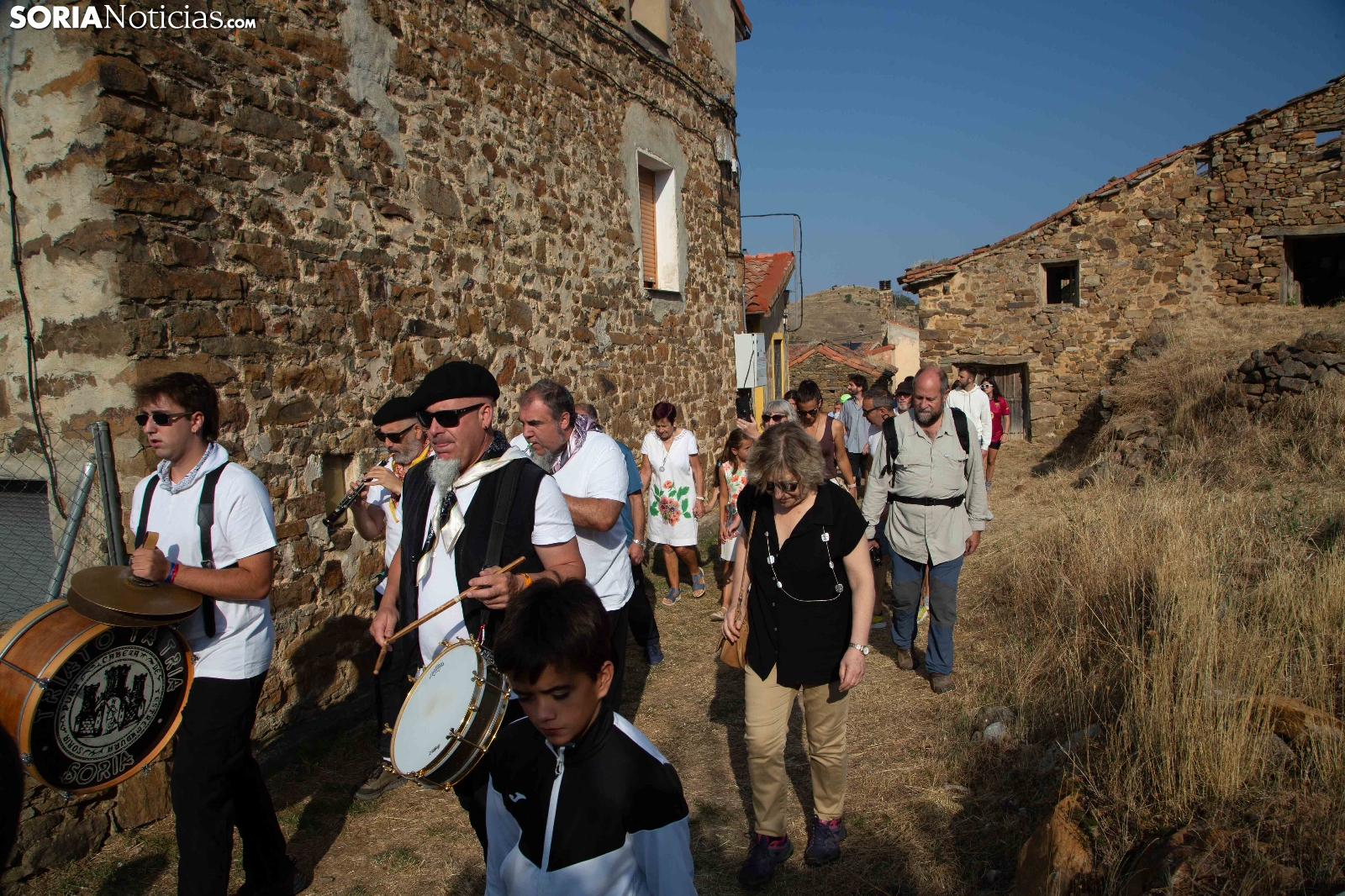 Sarnago ha vivido durante la mañana de este domingo, 24 de agosto, uno de los momentos más esperados de su calendario con la celebración de Las Móndidas. Las jóvenes Laura Tellería Olmedo, María Carrascosa Jiménez e Irune Lorete Alcalde han sido las encargadas de portar los emblemáticos cestos sobre sus cabezas, acompañadas por Imanol Artazcoz Calvo como mozo del ramo. Esta tradición, que pone el broche de oro a la semana cultural del pueblo, fue recuperada en 1982 gracias al impulso de la Asociación Amigos de Sarnago, convirtiéndose desde entonces en un símbolo de la identidad y la pervivencia de esta localidad perteneciente a San Pedro Manrique, en Tierras Altas.